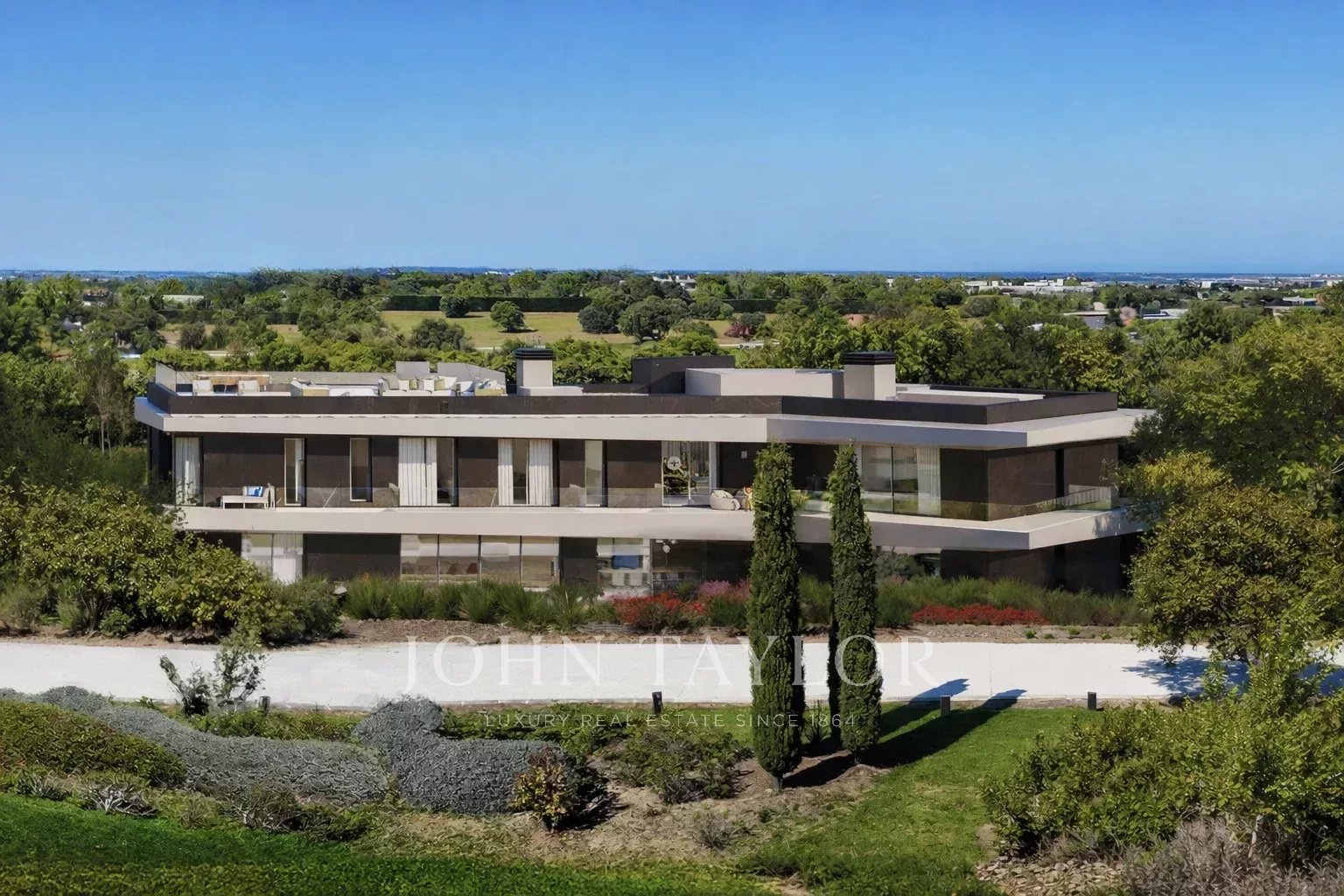 Au premier étage, le patio vitré et arboré sépare la suite parentale des trois autres chambres (possibilité de quatre chambres), toutes dotées d'une salle de bains privative, d'un grand dressing et d'une terrasse. La suite parentale donne accès à une grande terrasse, orientée au sud, et dispose d'une baignoire autoportante, de deux douches hydromassantes et de deux dressings indépendants.