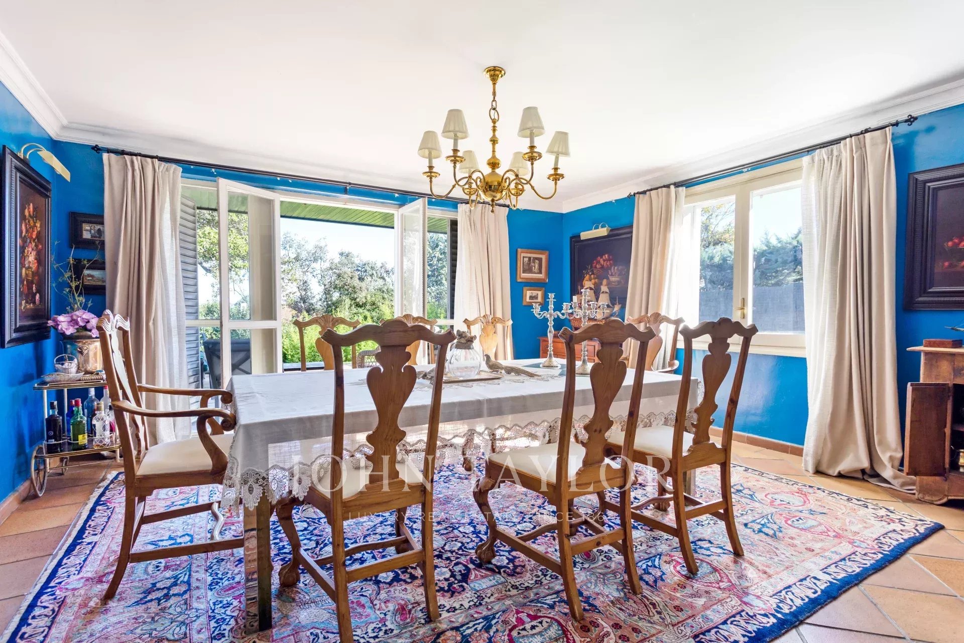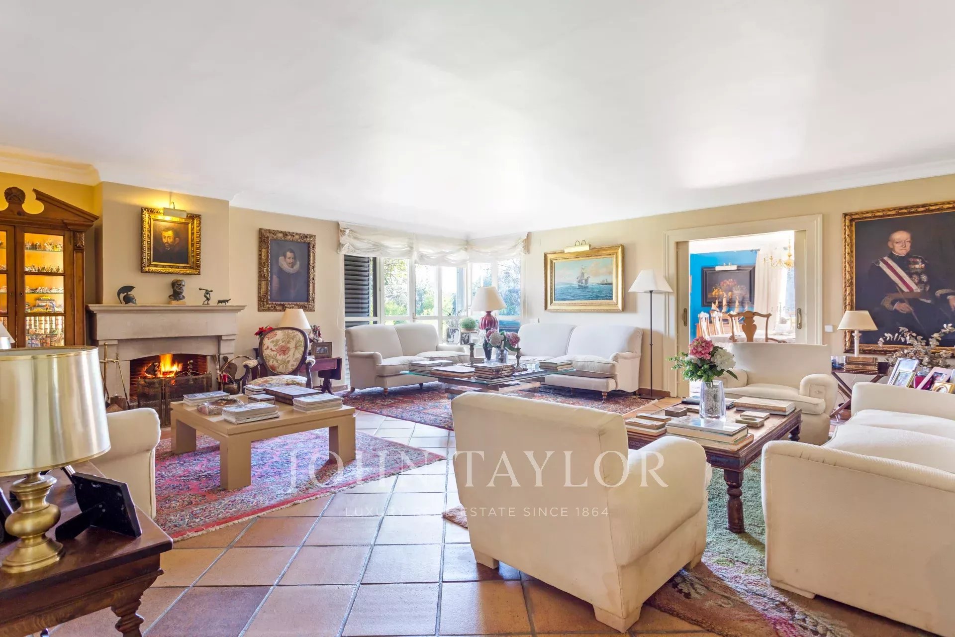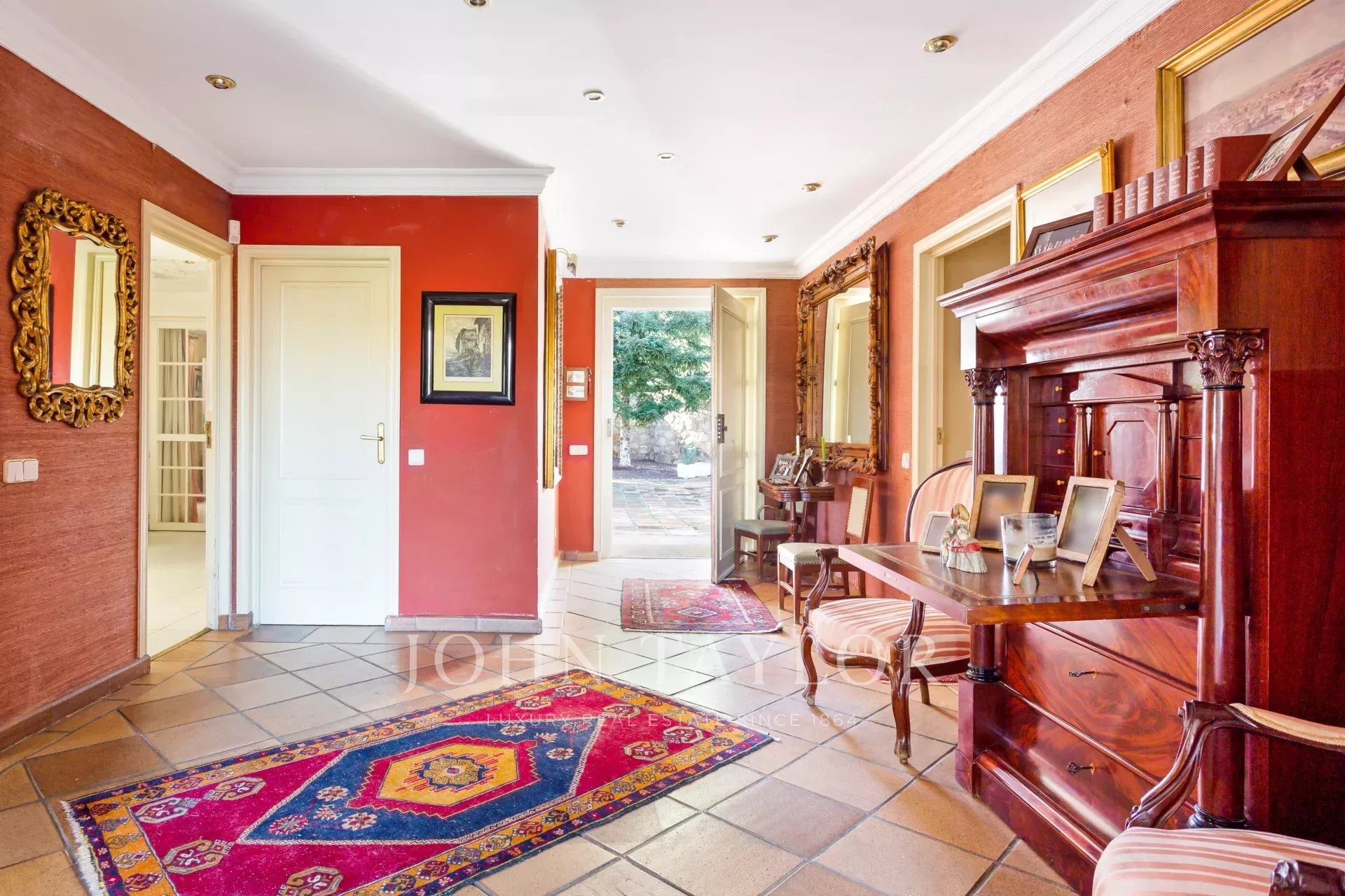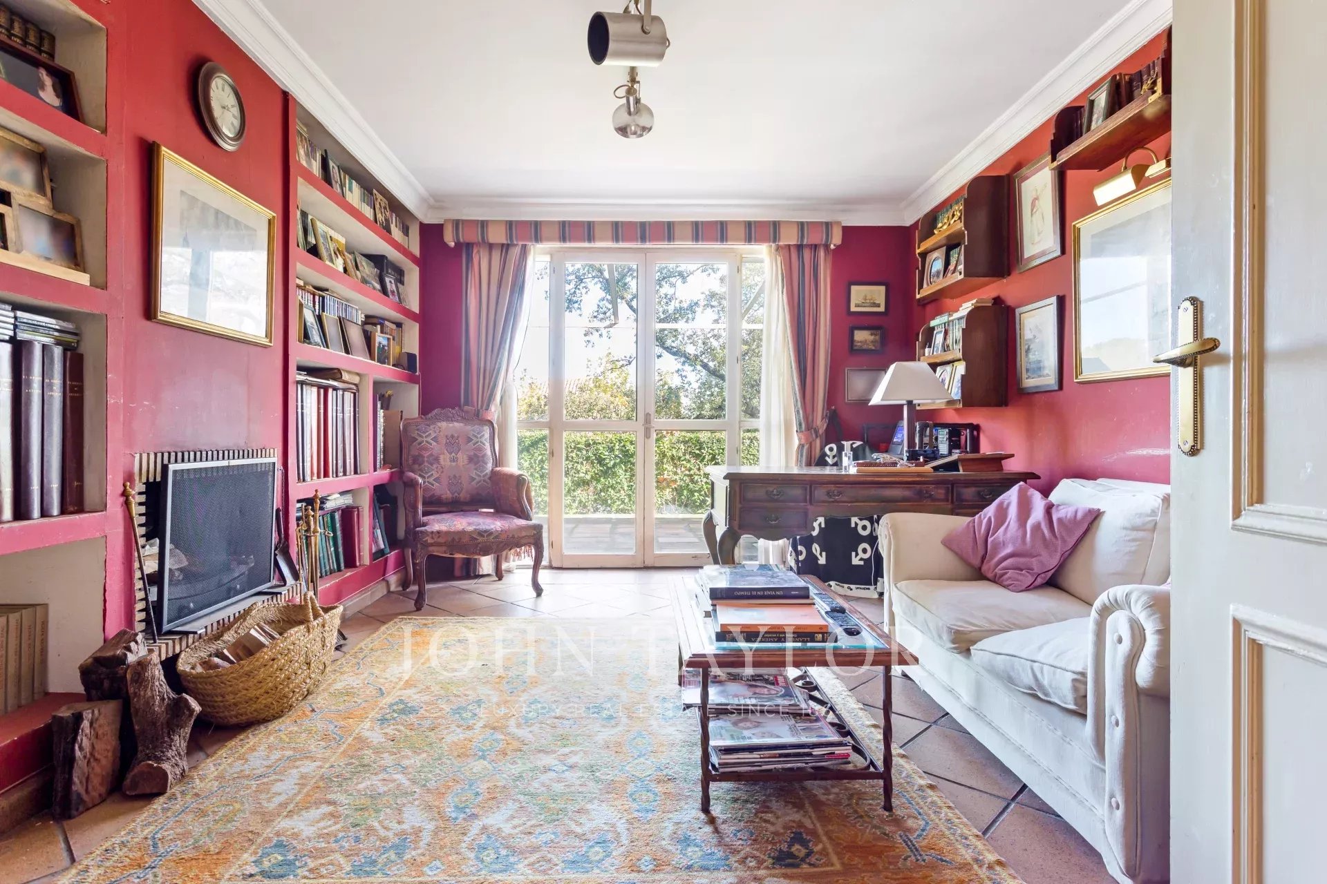 Le rez-de-chaussée se compose d'un grand hall d'entrée, d'un salon en trois pièces, d'une splendide salle à manger qui s'ouvre sur le grand porche et le jardin, ainsi que d'un bureau-bibliothèque et d'une salle de bains.
