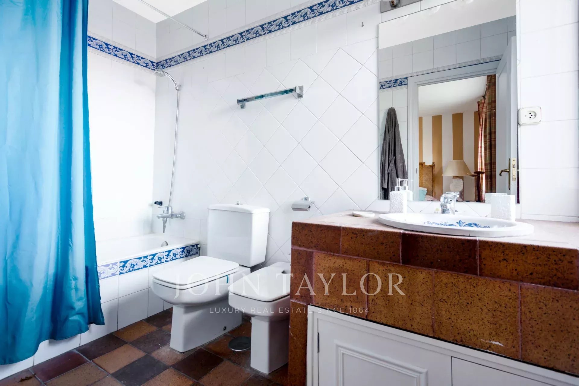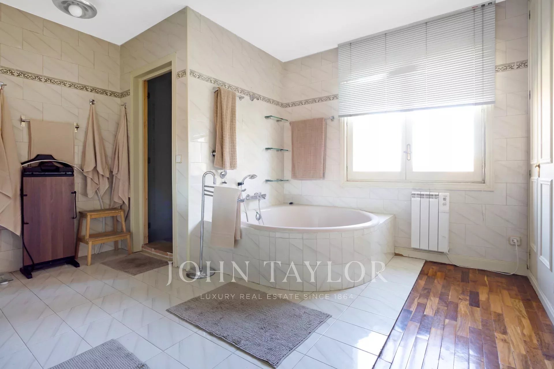 Au même étage se trouvent trois chambres à coucher, chacune avec une salle de bain attenante (la chambre principale est très grande). À côté de la cuisine se trouvent une grande buanderie, une chambre de bonne avec sa propre salle de bains et un bureau. De ce niveau, on accède à un appartement indépendant comprenant deux chambres, une grande cuisine et une salle de bains.