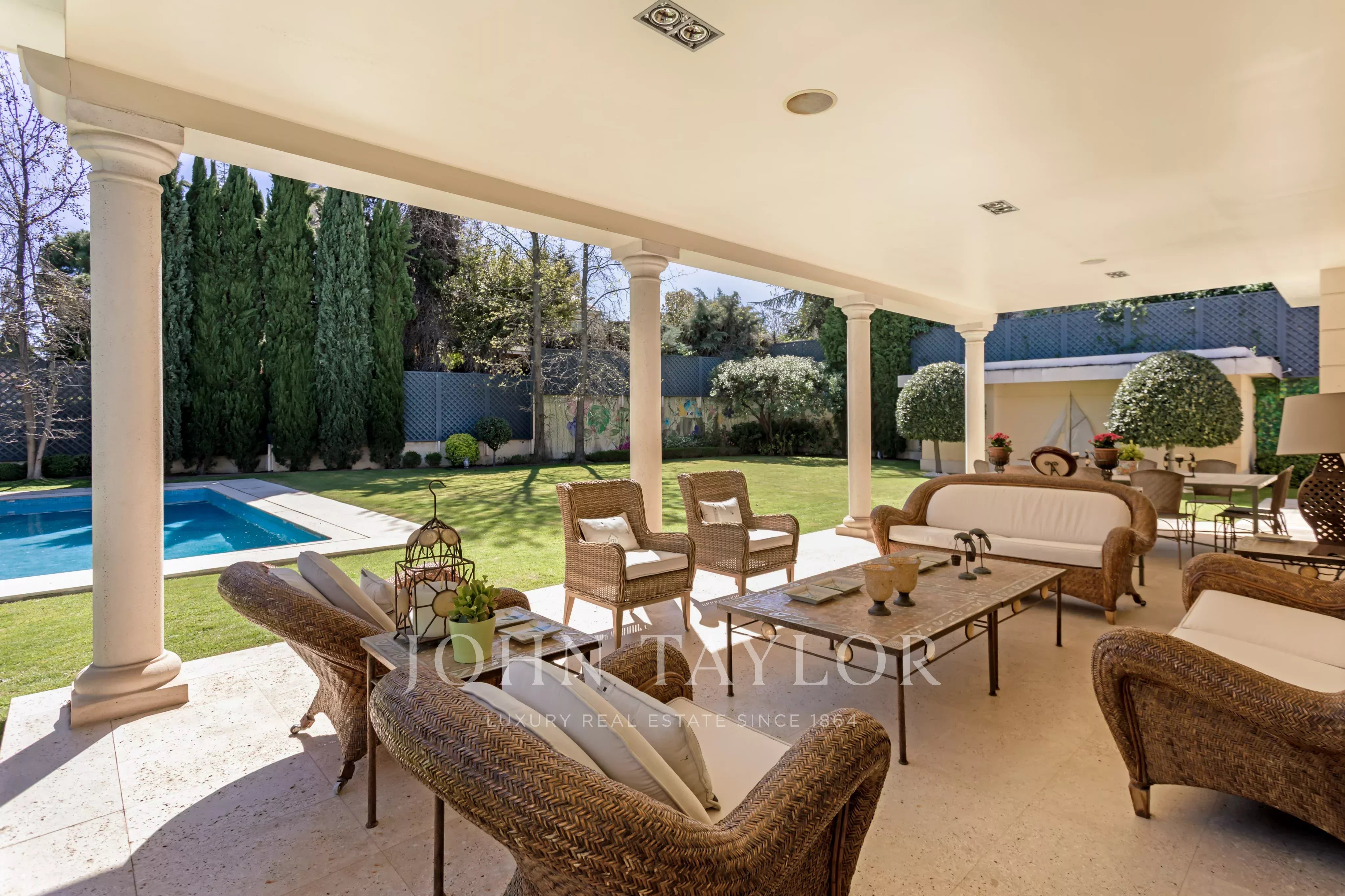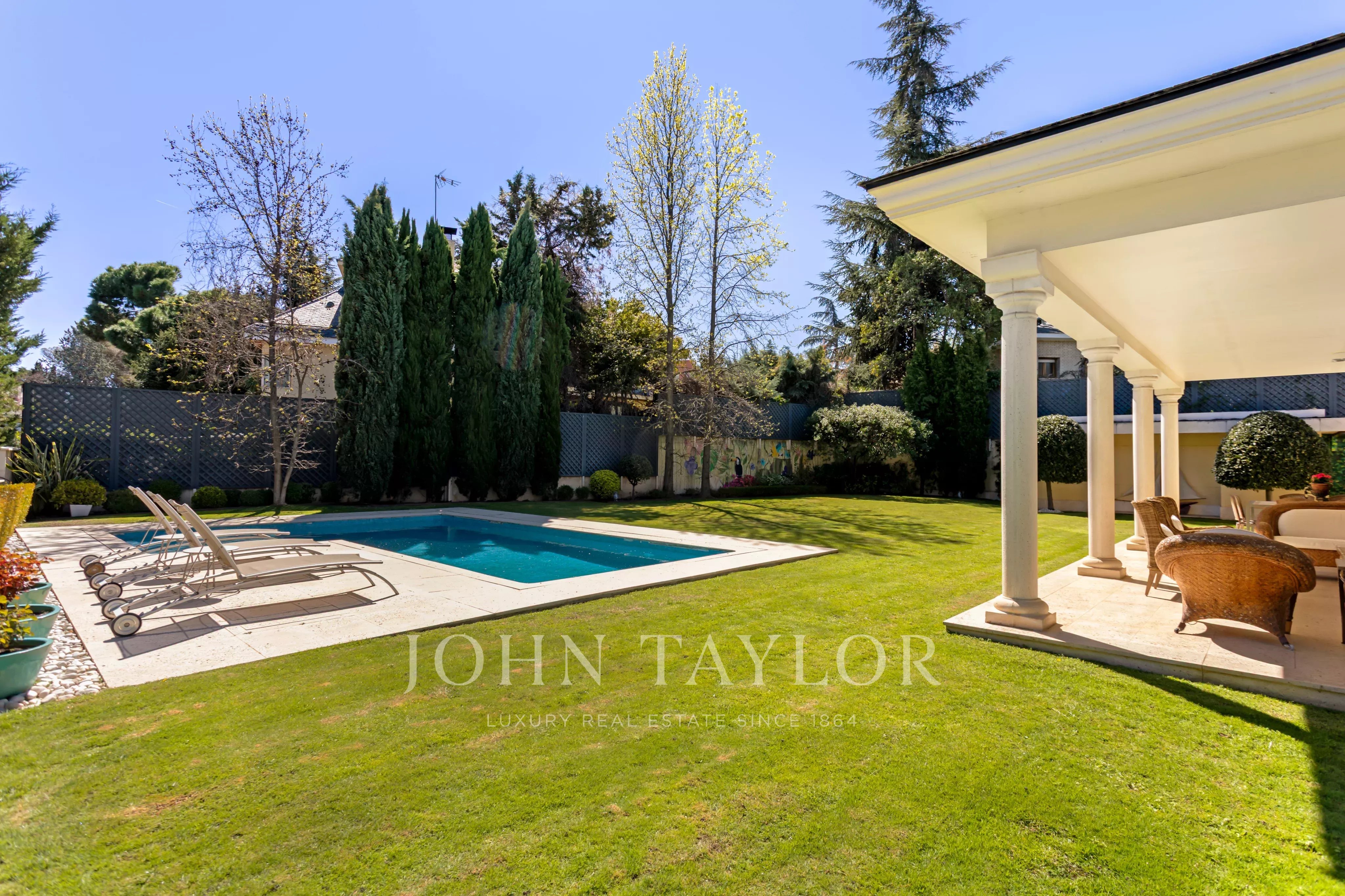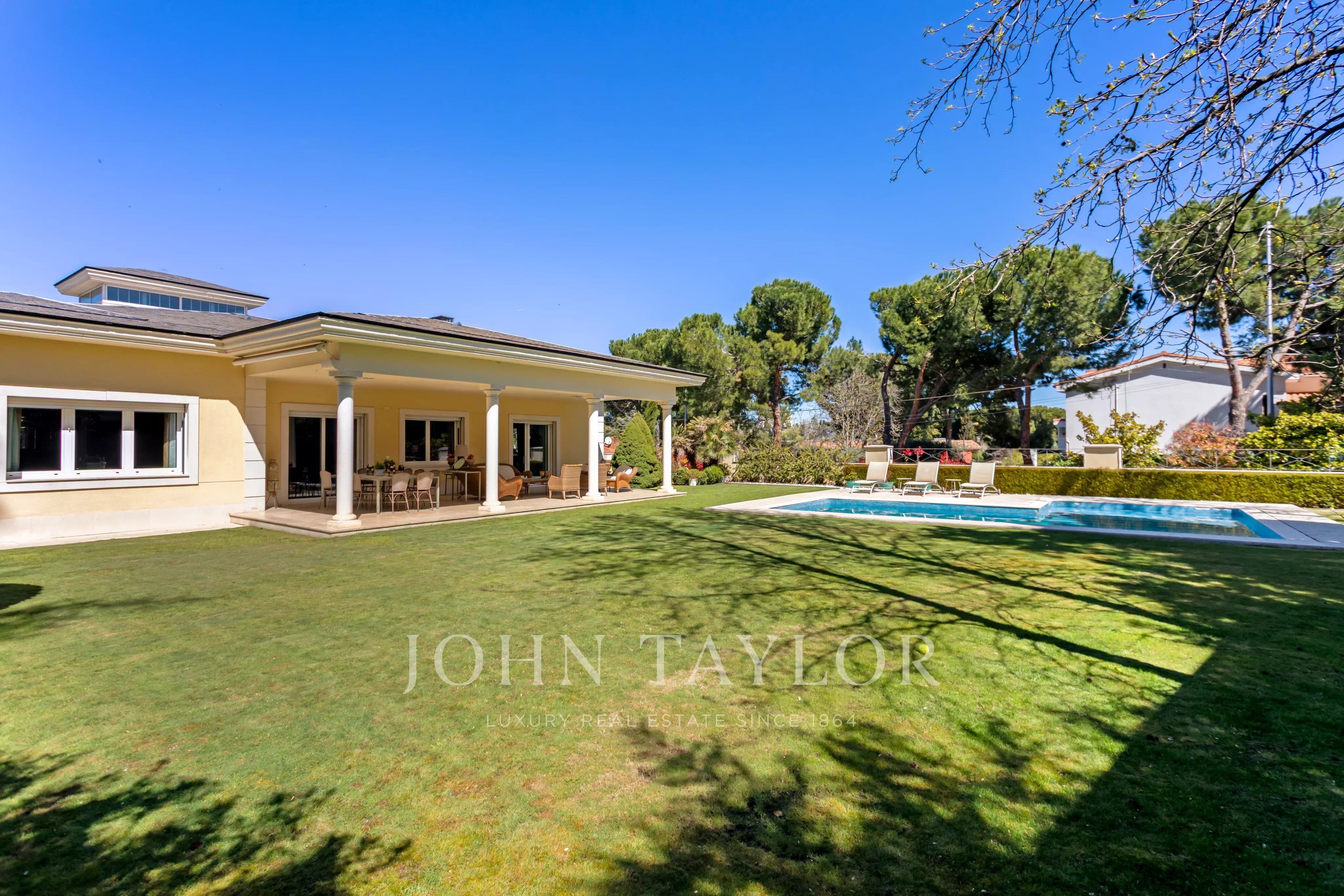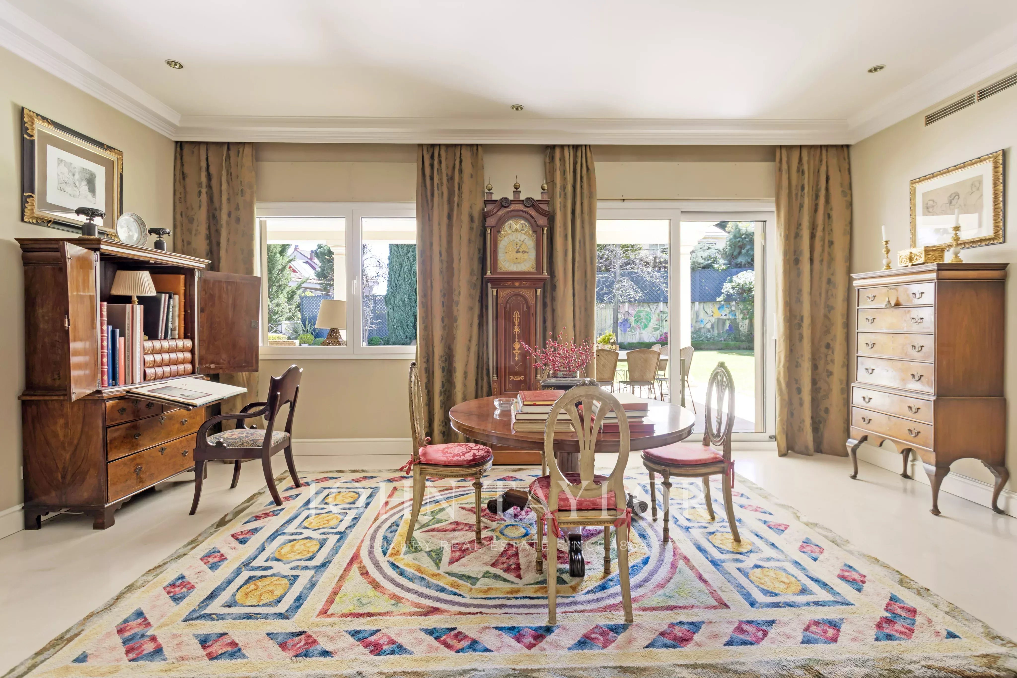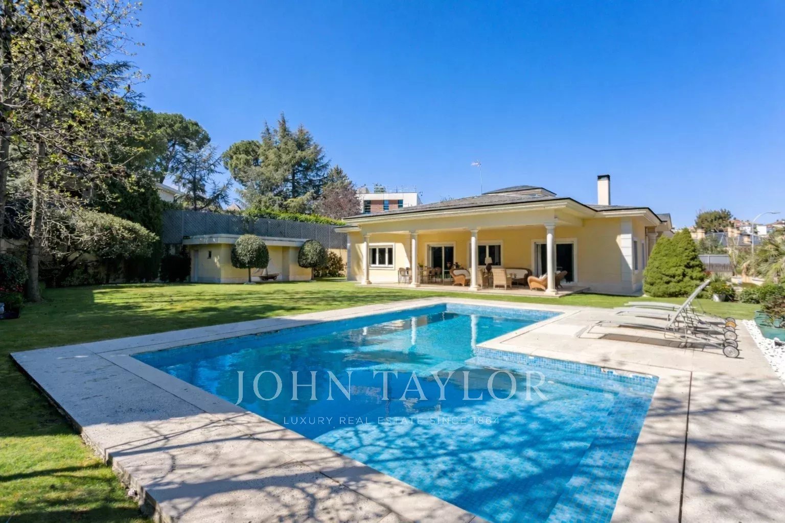 Située dans le prestigieux quartier de Hortaleza Conde Orgaz-Piovera à Madrid, cette somptueuse villa de 894 m² allie élégance et modernité. Elle dispose de cinq grandes chambres, d’un vaste salon lumineux avec cheminée, et de finitions haut de gamme telles que fenêtres en PVC, volets électriques, et double vitrage. Les espaces de vie s’ouvrent sur un magnifique jardin privé parfaitement entretenu avec une piscine invitante, idéale pour se détendre ou recevoir des convives.