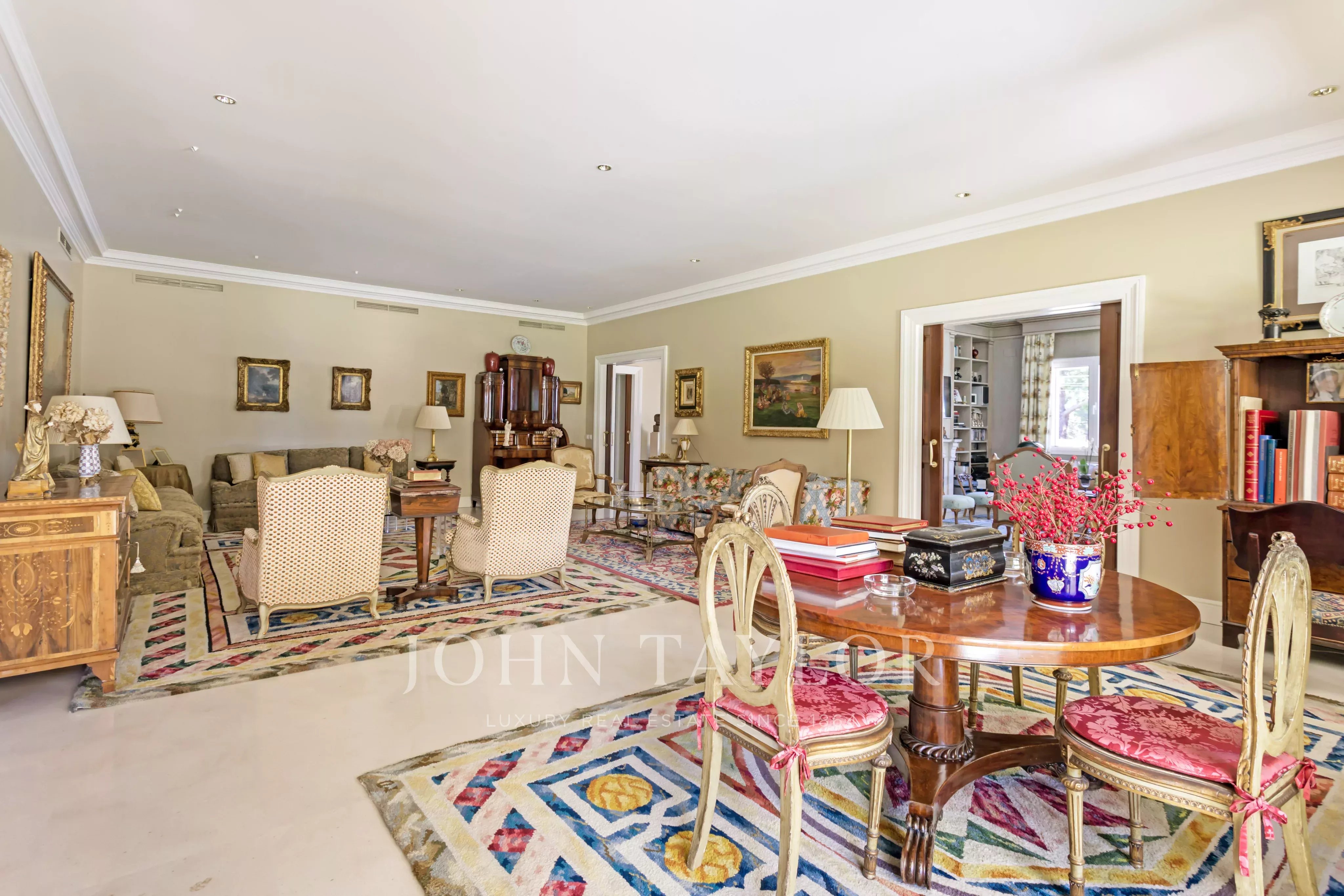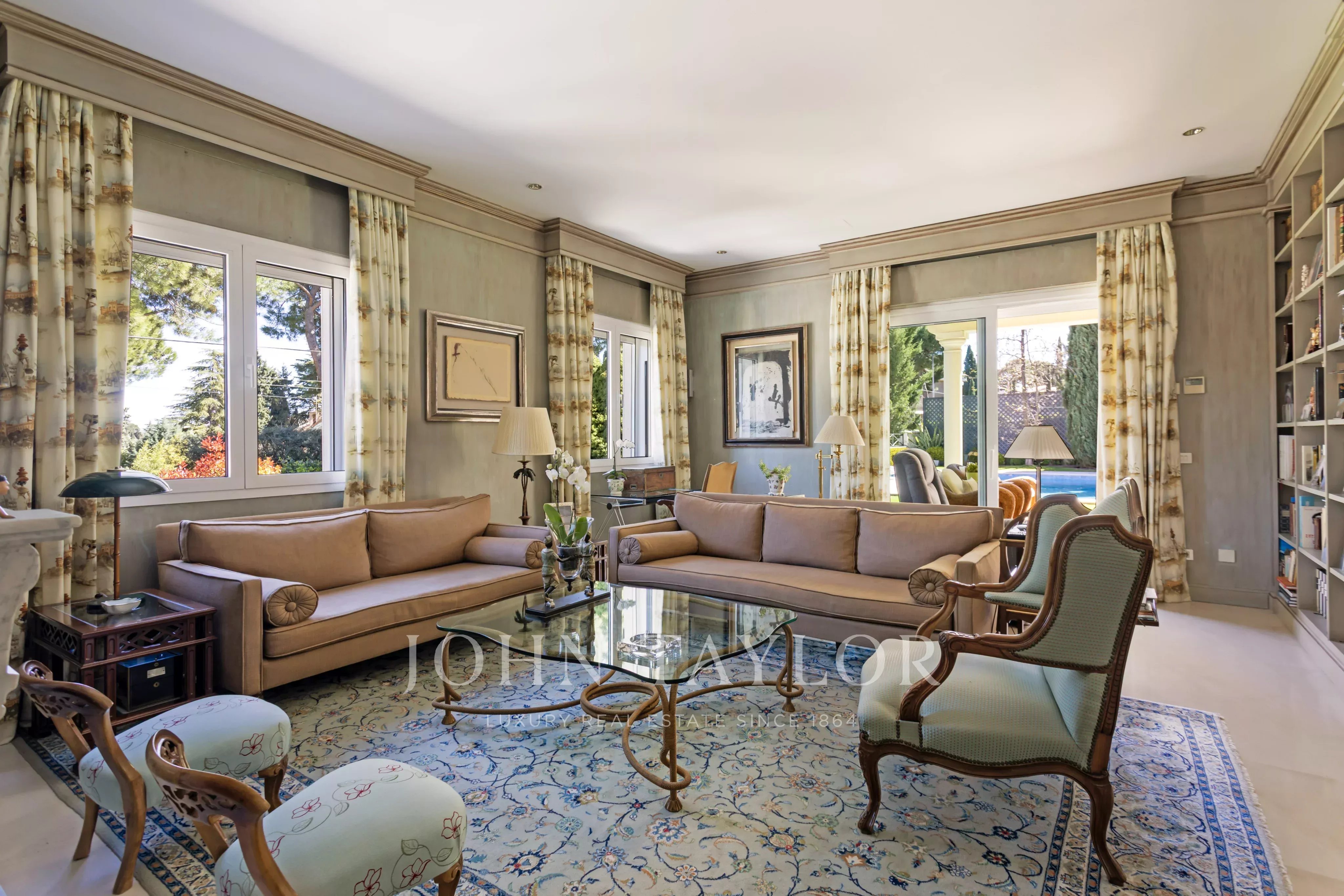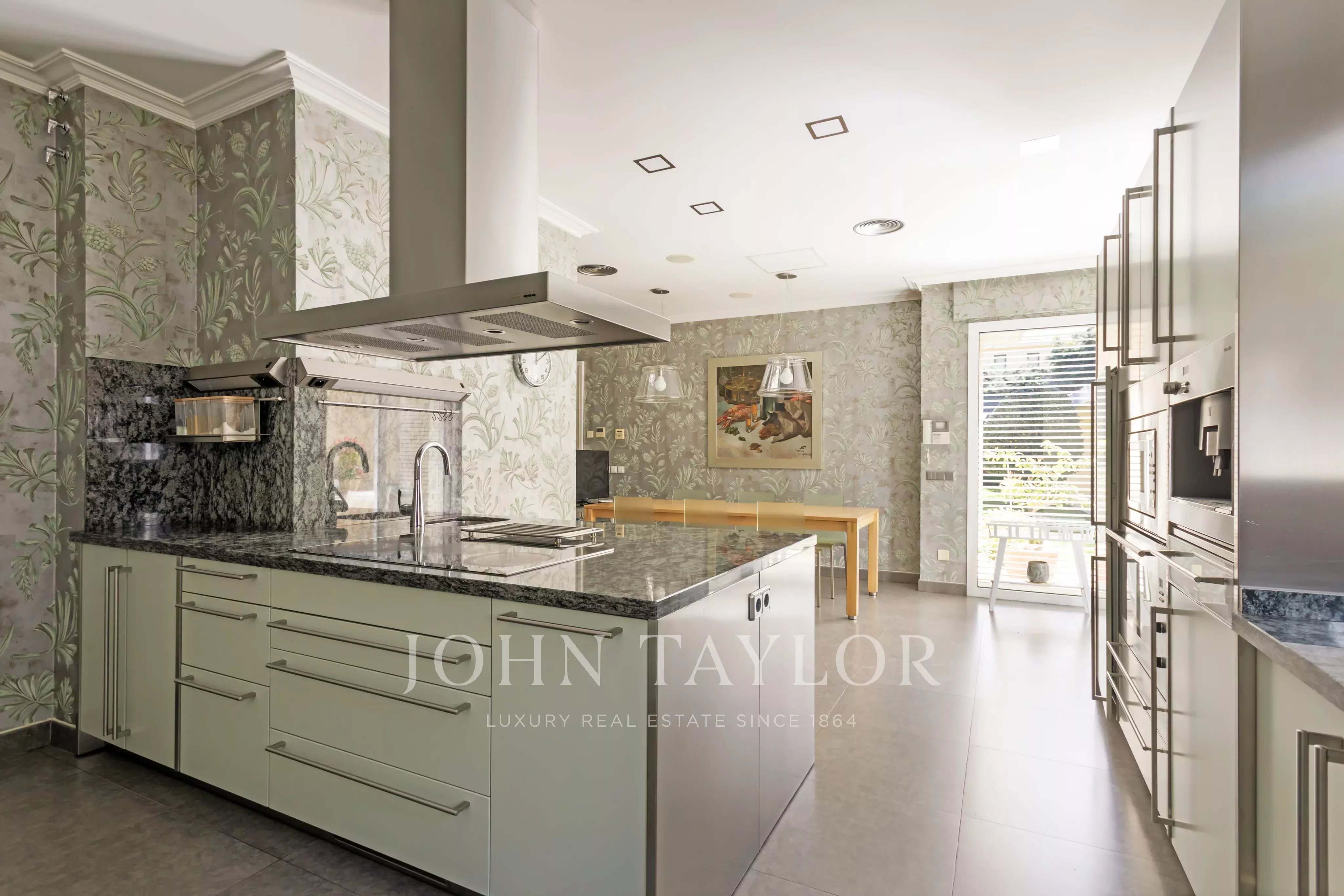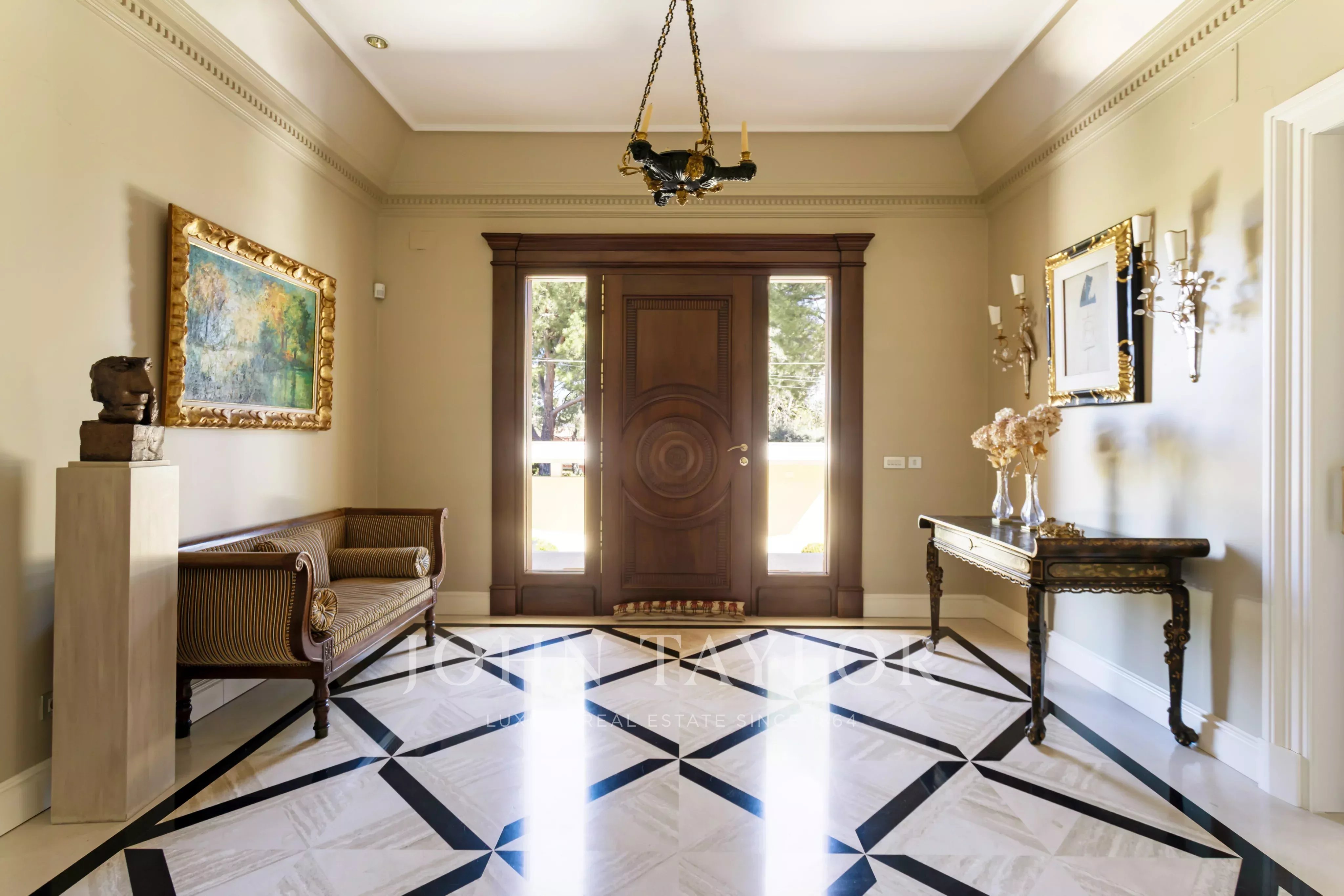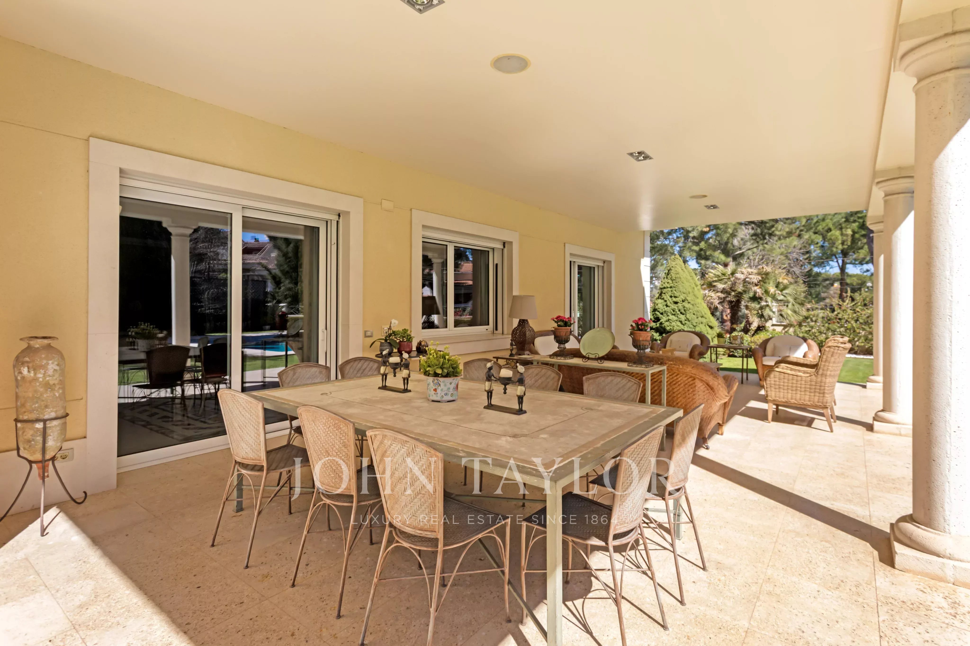 Située dans le prestigieux quartier de Hortaleza Conde Orgaz-Piovera à Madrid, cette somptueuse villa de 894 m² allie élégance et modernité. Elle dispose de cinq grandes chambres, d’un vaste salon lumineux avec cheminée, et de finitions haut de gamme telles que fenêtres en PVC, volets électriques, et double vitrage. Les espaces de vie s’ouvrent sur un magnifique jardin privé parfaitement entretenu avec une piscine invitante, idéale pour se détendre ou recevoir des convives.