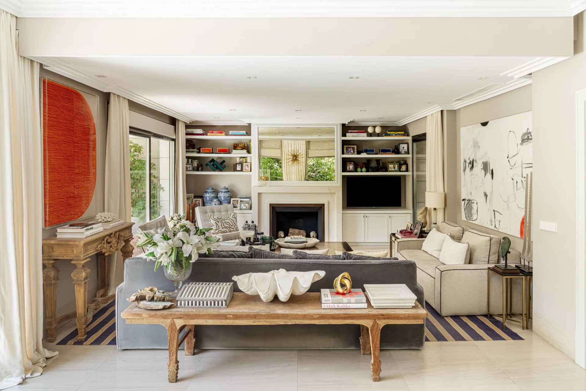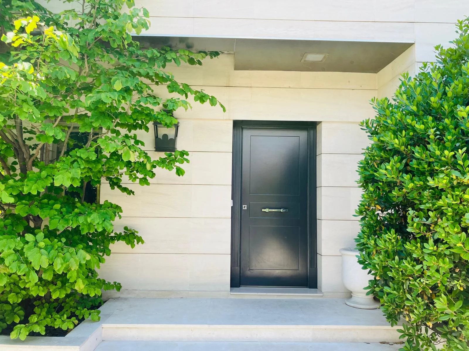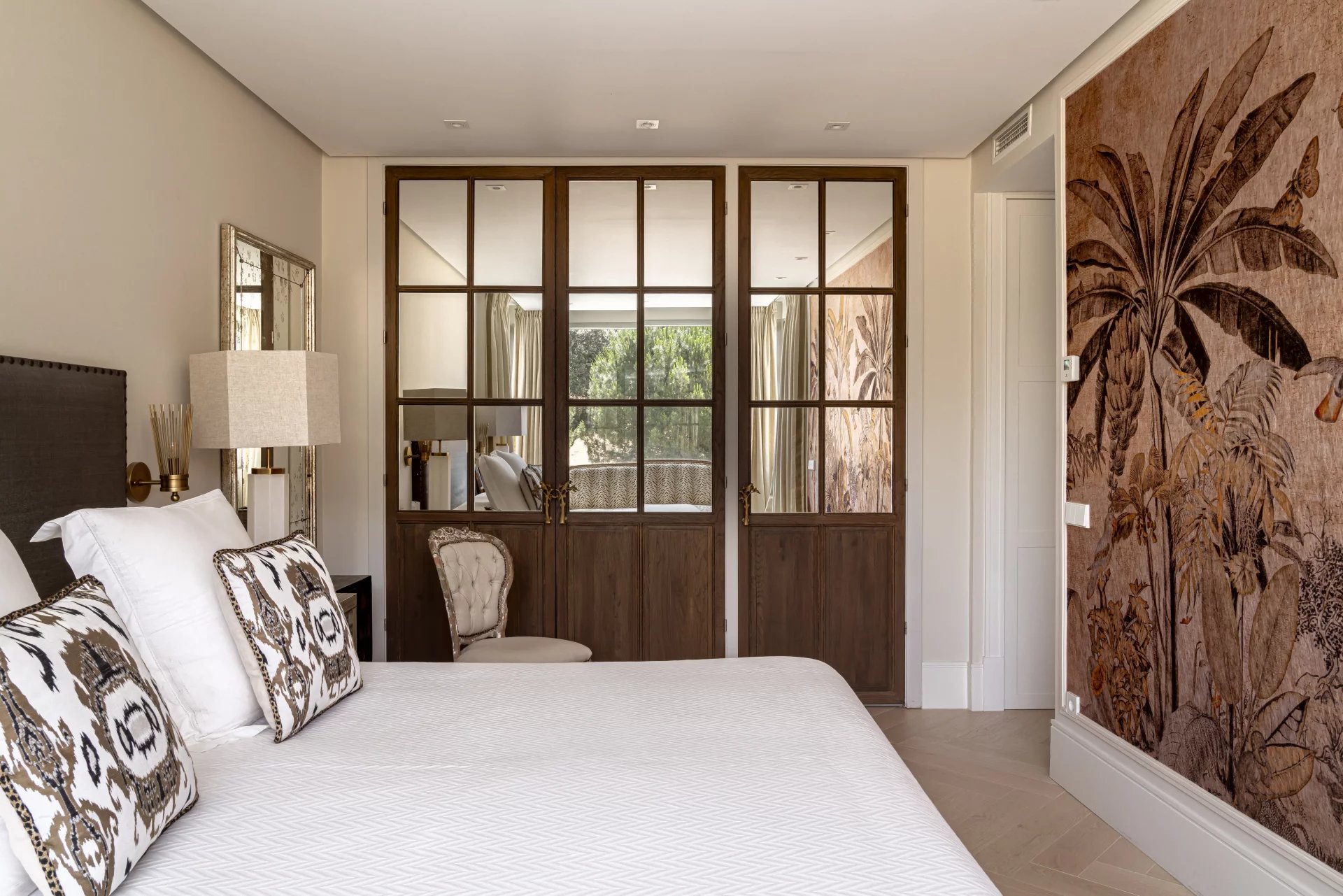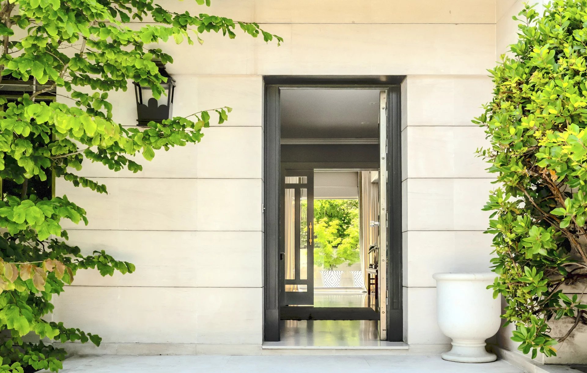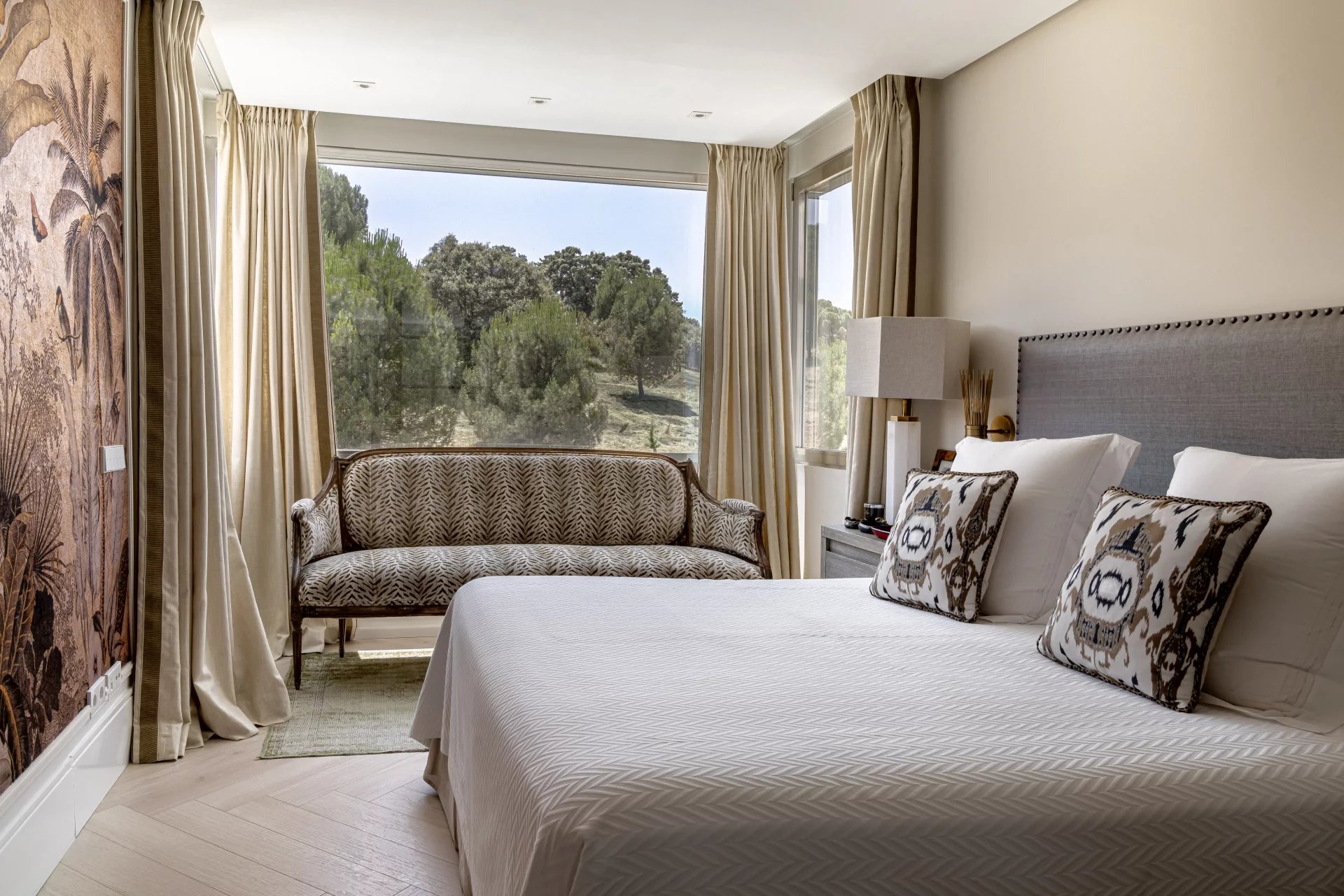 Le projet d'architecture, de design d'intérieur et d'aménagement paysager a été réalisé avec des pièces de design et des matériaux de première qualité, des sols en chêne clair et en pierre, des fenêtres en acier satiné, des armoires et des portes laquées, des volets de sécurité électriques et des auvents motorisés. Les patios vitrés et les grandes fenêtres apportent beaucoup de lumière à la propriété.