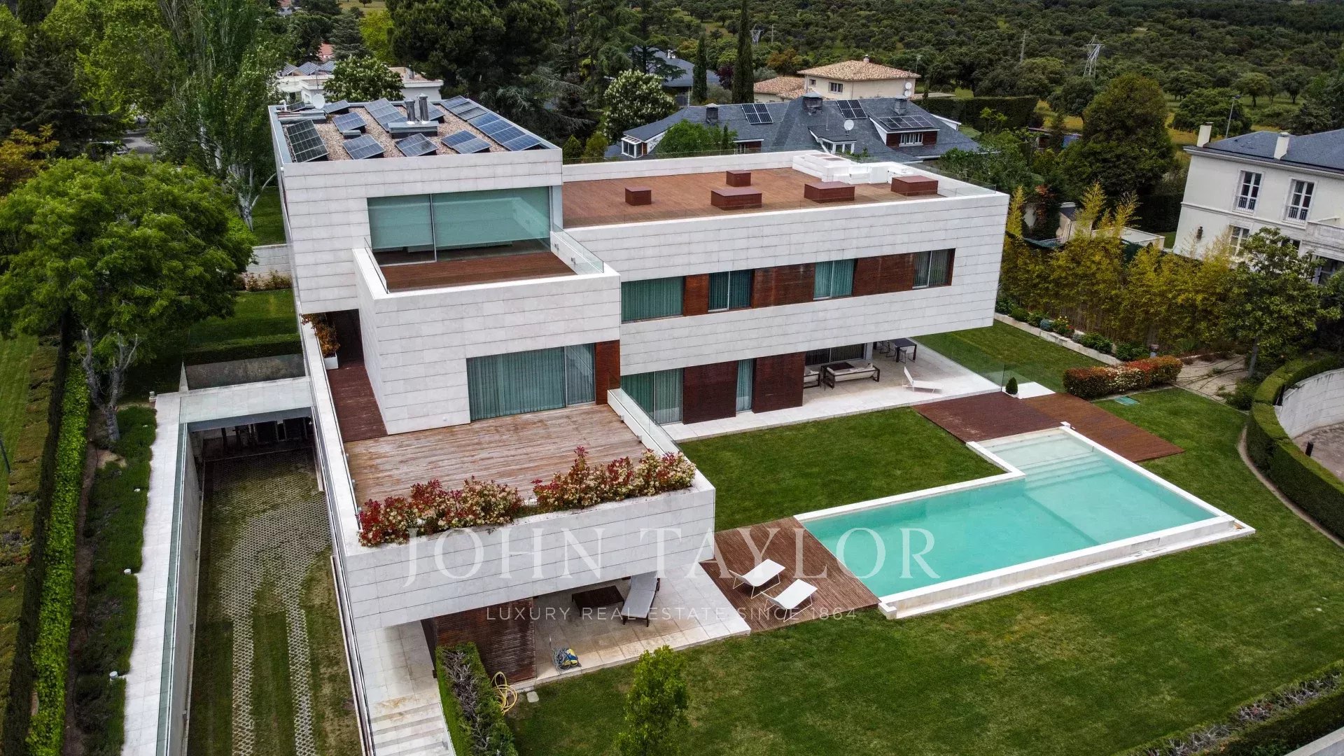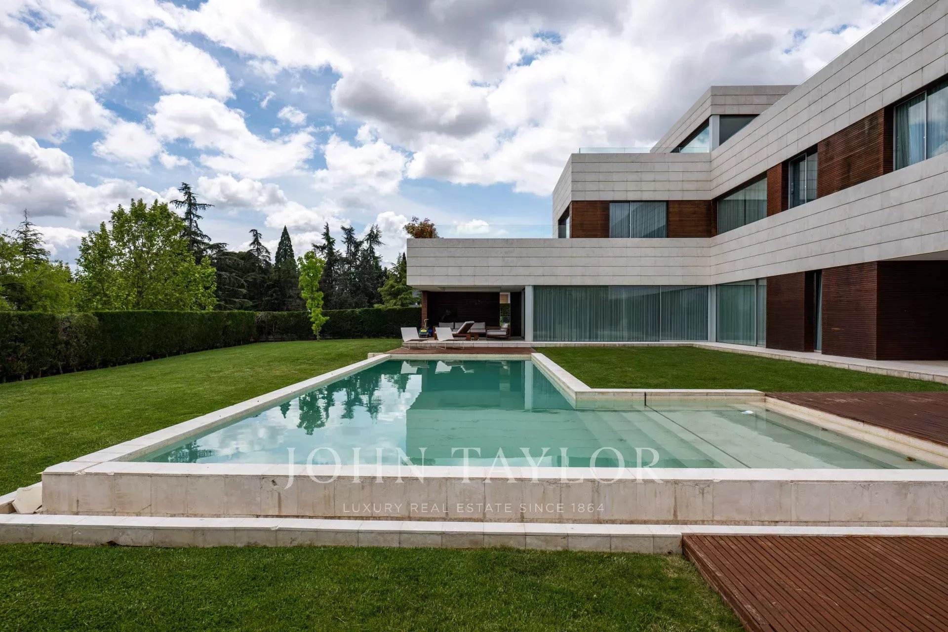 La sécurité est une priorité avec un système d'alarme performant, un portail électrique, et des portes sécurisées. Une maison de gardien assure un contrôle et une surveillance constants, tandis que la présence d'un ascenseur rend la propriété facilement accessible aux personnes à mobilité réduite. Ce chalet est une véritable perle rare à Madrid, combinant à la fois le prestige et le confort moderne dans un cadre unique.