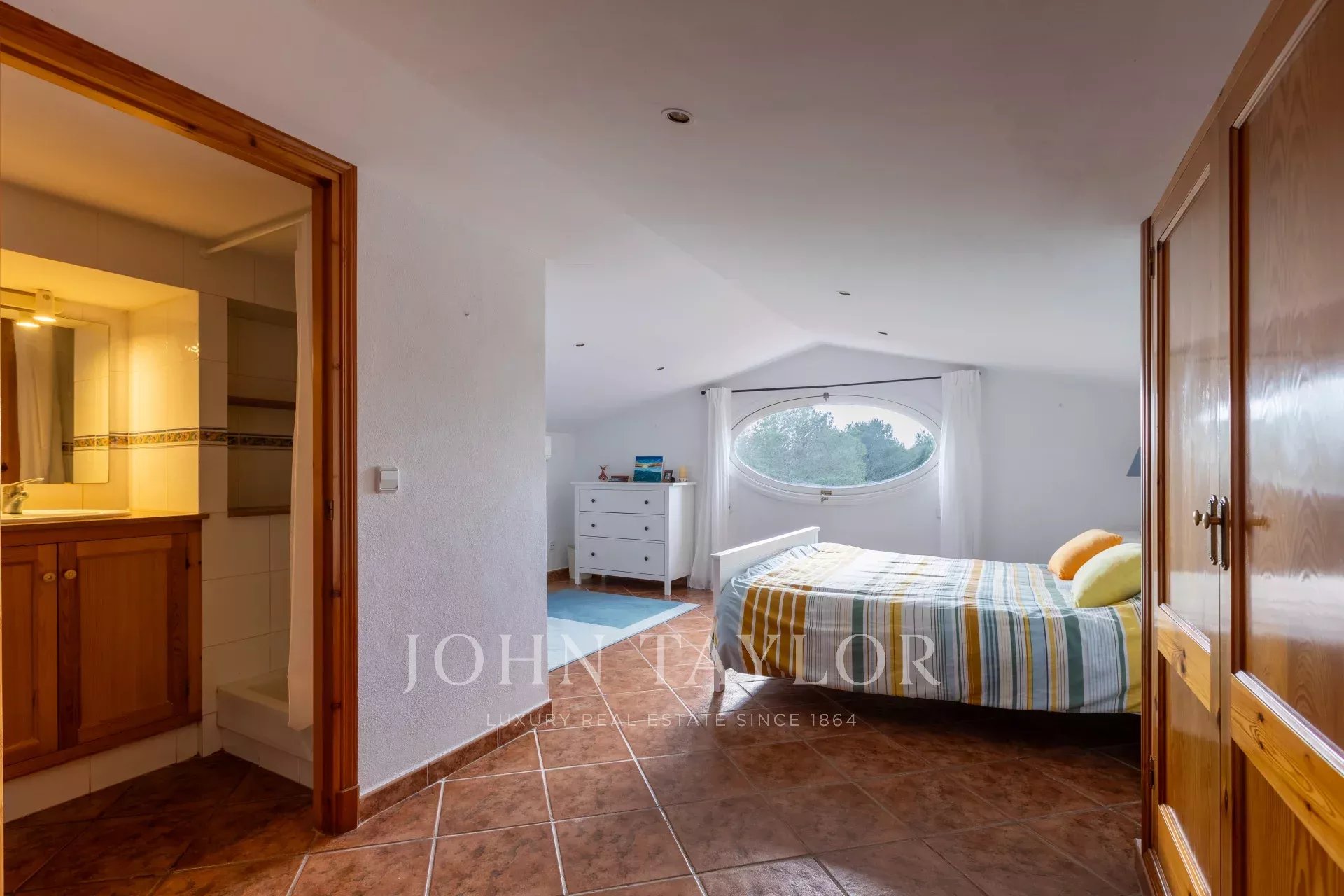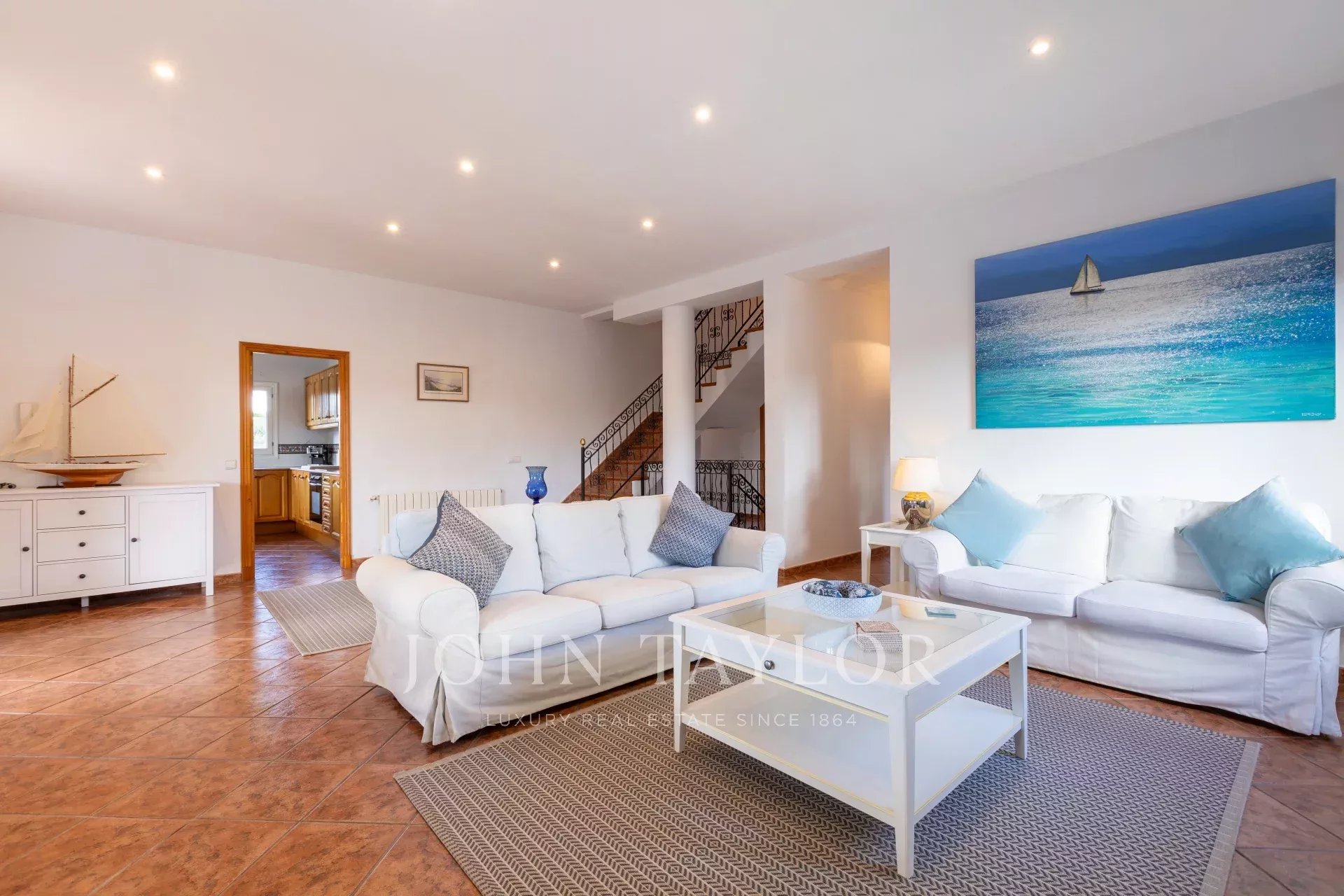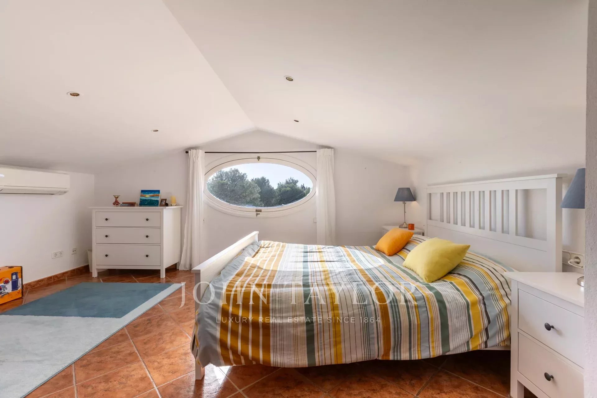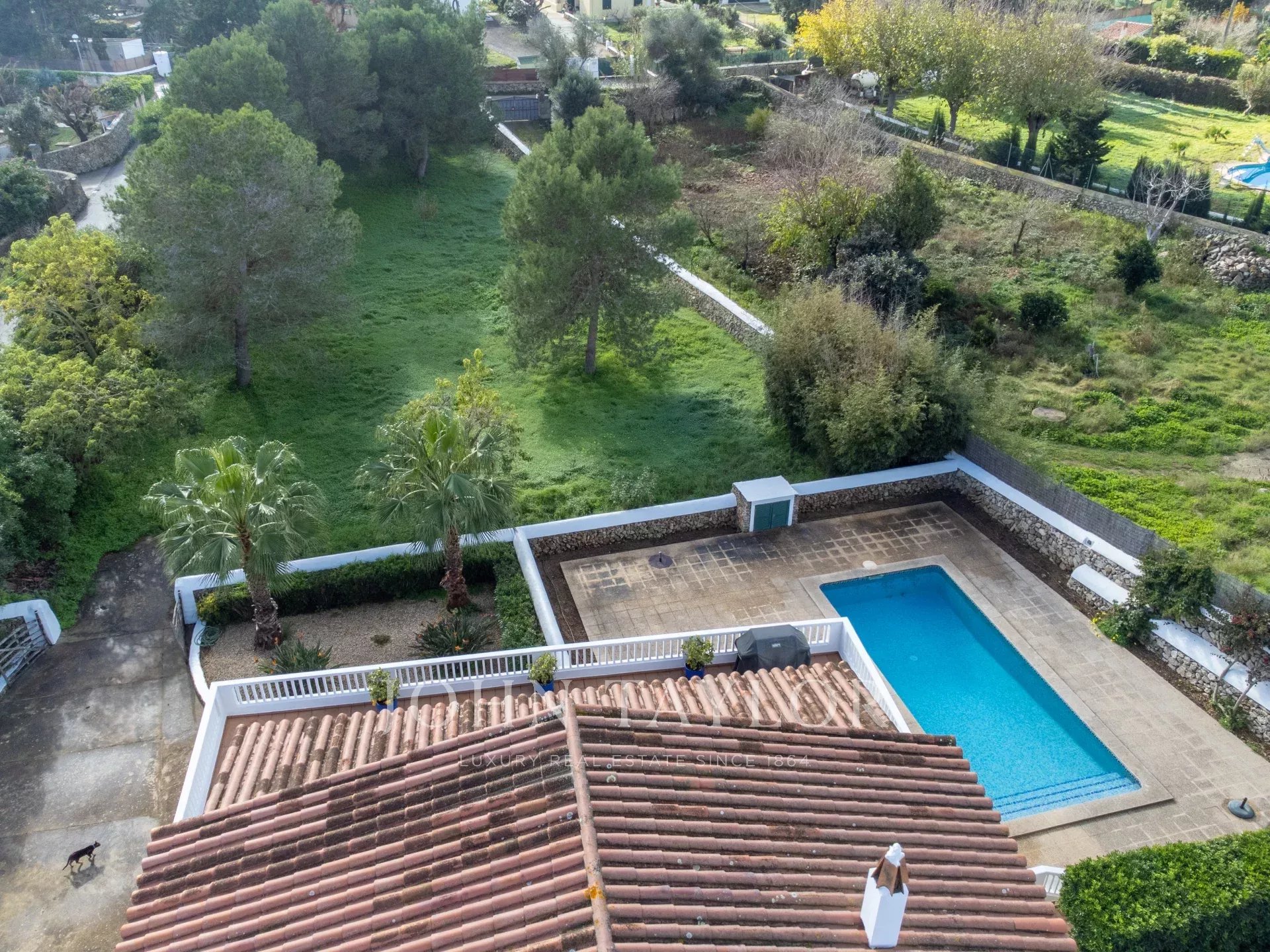 Entretenue selon les normes les plus strictes, la propriété se trouve sur un terrain généreux de 3,000 m² et comprend cinq chambres, trois salles de bains, un salon spacieux à double exposition, une cuisine et une buanderie à l'extérieur. La villa dispose d'un grand parking hors rue et d'un garage sécurisé de 250 m² en sous-sol, idéal pour entreposer un bateau ou une voiture.