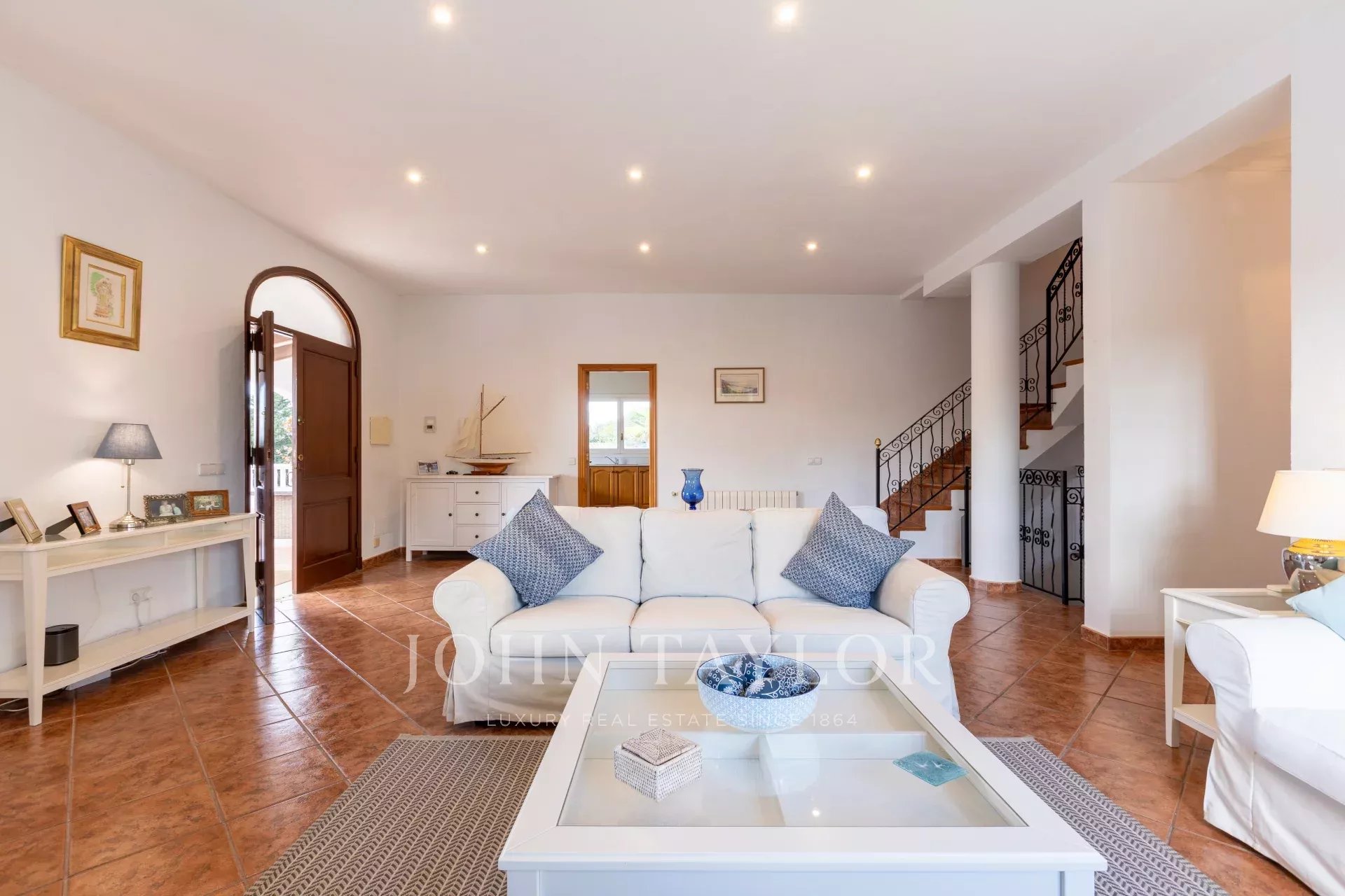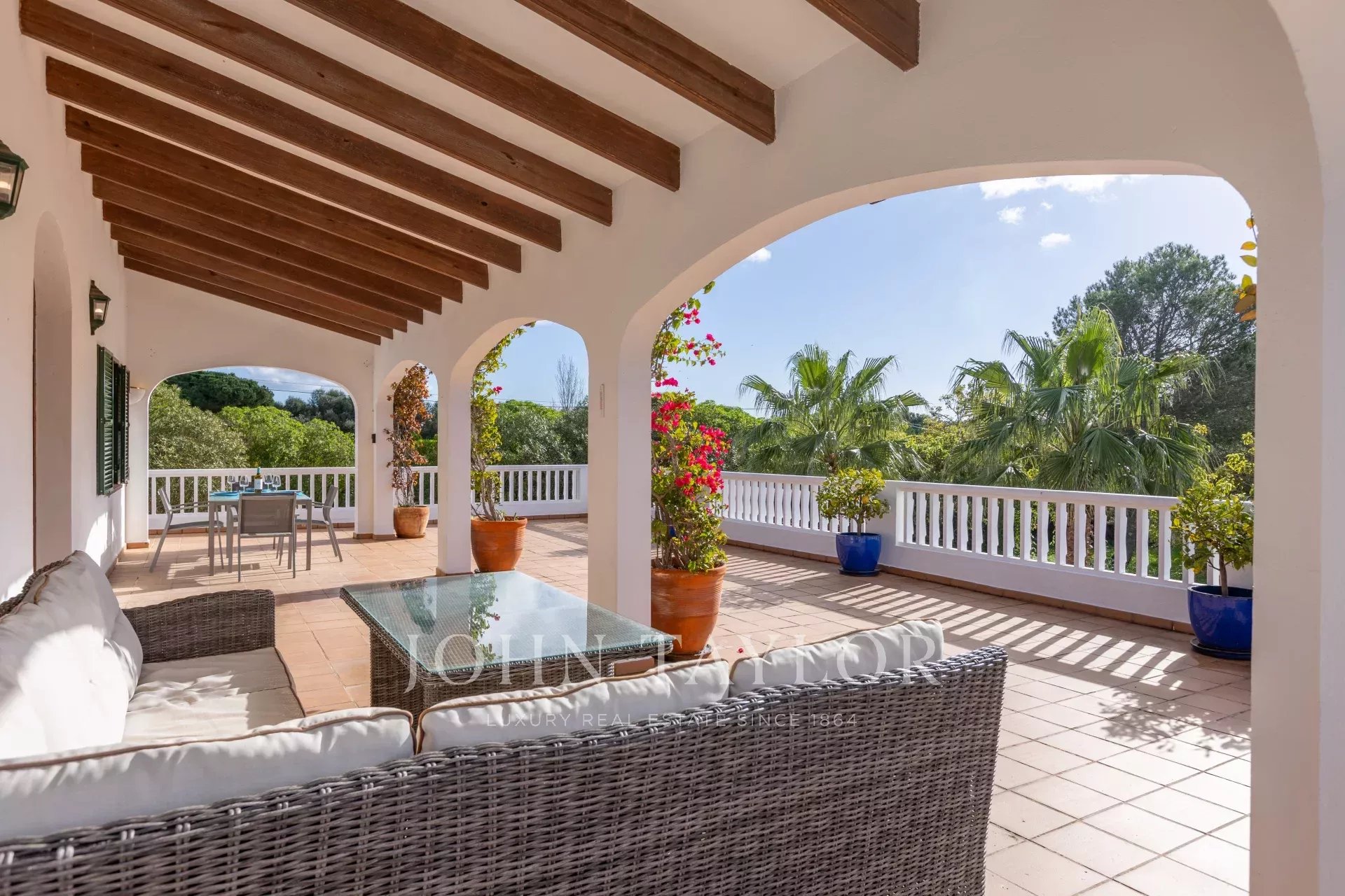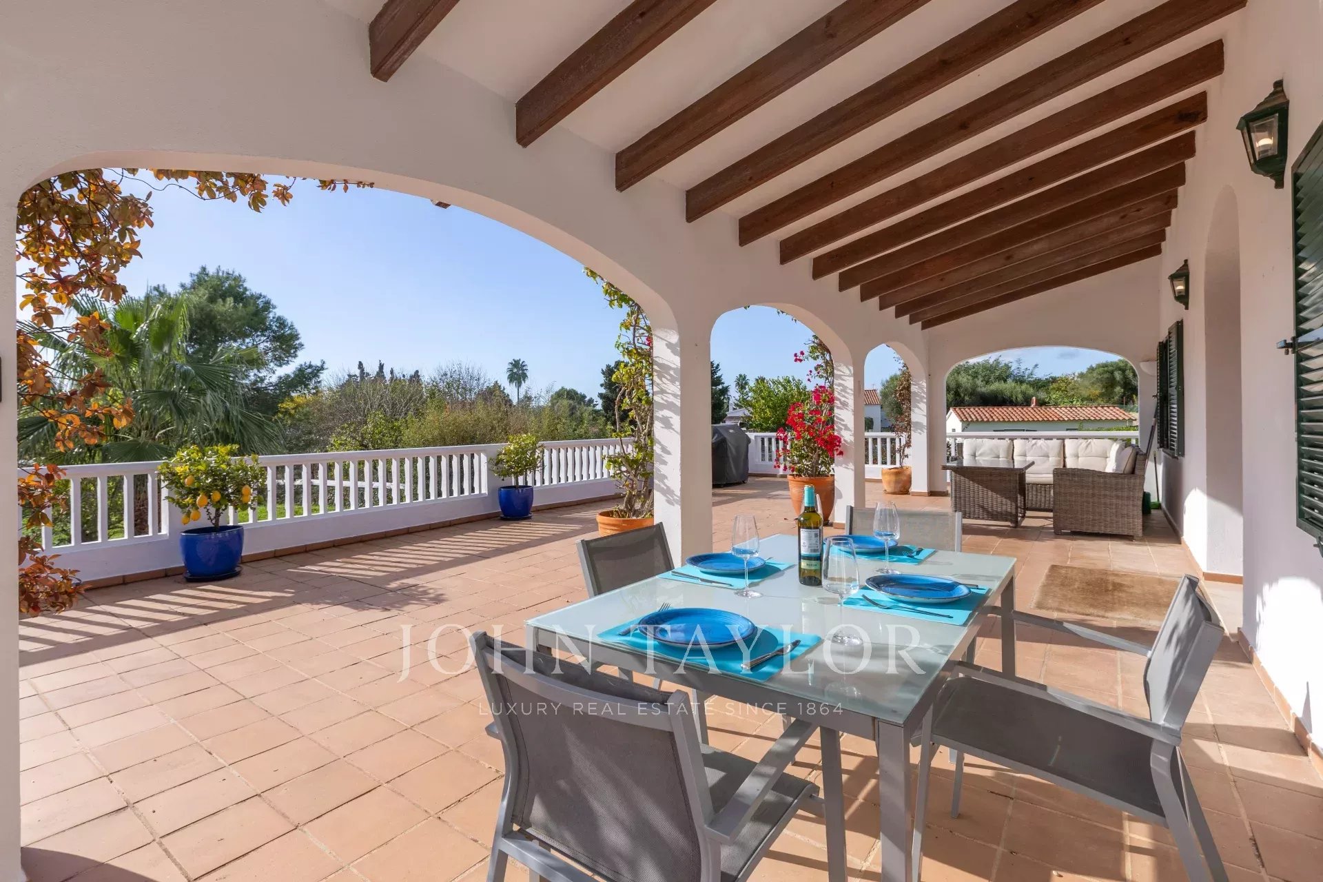 Cette villa spacieuse et lumineuse offre un cadre privé et serein, entourée d'une verdure luxuriante tout au long de l'année, sans voisins immédiats, dans l'environnement exclusif et tranquille de L'Argentina. Ce quartier exclusivement résidentiel est idéalement situé à quelques minutes en voiture des commodités de Mahón.
