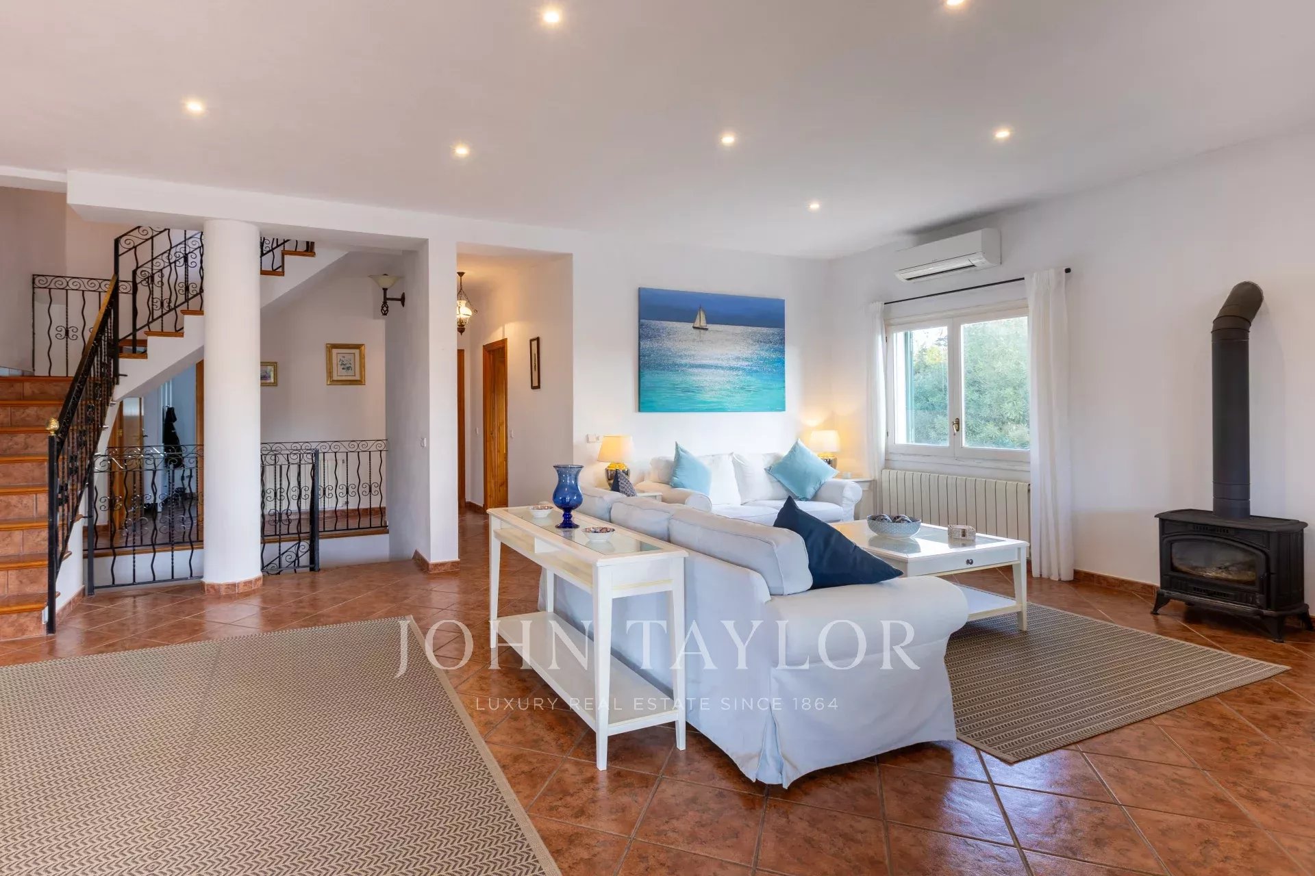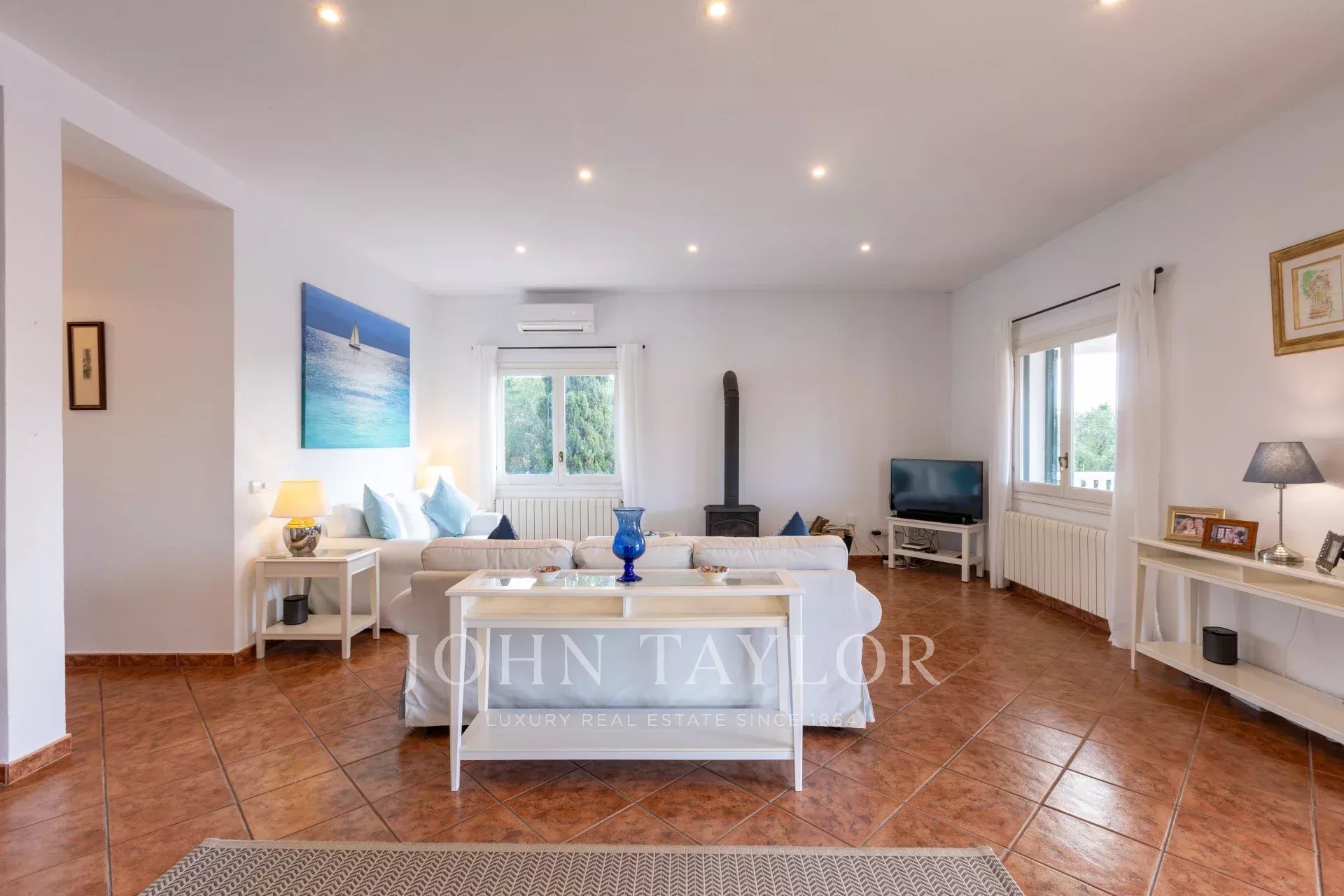 Pour vivre toute l'année, la villa dispose d'un chauffage central au fioul et d'une cuisinière à bois. Pour plus de confort en été, toutes les pièces principales sont climatisées et la propriété est bien isolée.