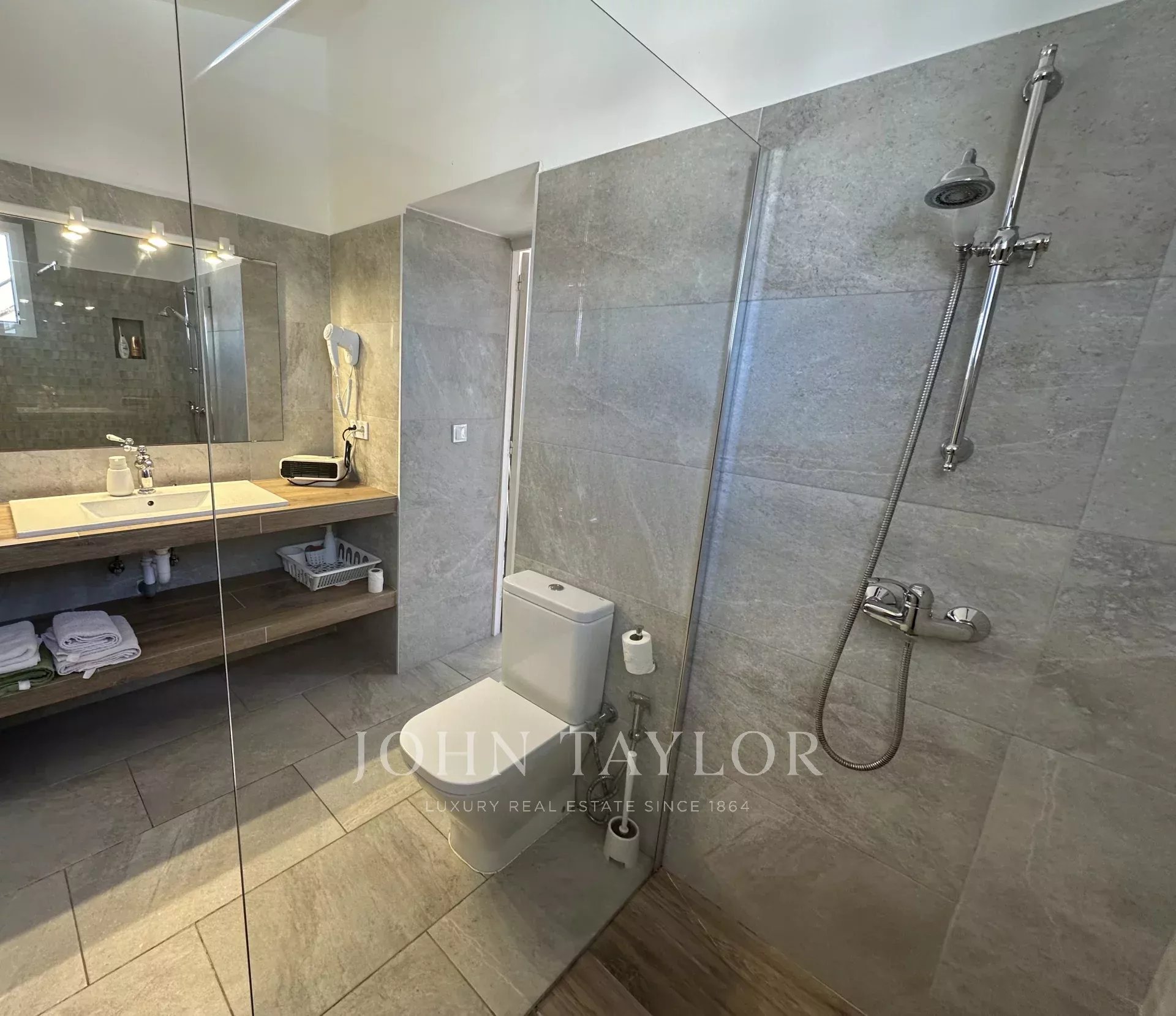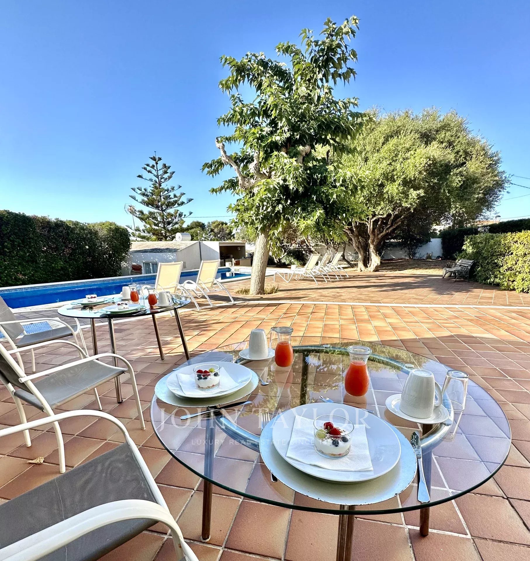 Cette impressionnante villa de 386 m² sur un terrain de 1 475 m² est idéale comme investissement de vacances ou comme maison spacieuse à Minorque. Pouvant accueillir 20 personnes, elle comprend 5 chambres, 3 salles de bains (dont 2 en suite) et des toilettes dans la maison principale, ainsi qu'un appartement séparé avec un salon, une cuisine, une chambre et une salle de bains. Elle dispose également d'un bâtiment supplémentaire avec deux suites indépendantes, qui peut être converti en garage pour 2 ou 3 véhicules. En excellent état, elle offre de vastes espaces extérieurs avec jardin, piscine, terrasses et cuisine extérieure avec barbecue pour profiter du style de vie méditerranéen. Équipée de l'air conditionné, d'une cheminée, de placards et d'une pré-installation pour le chauffage par le sol, elle garantit le confort tout au long de l'année, une opportunité unique au cœur de Minorque !