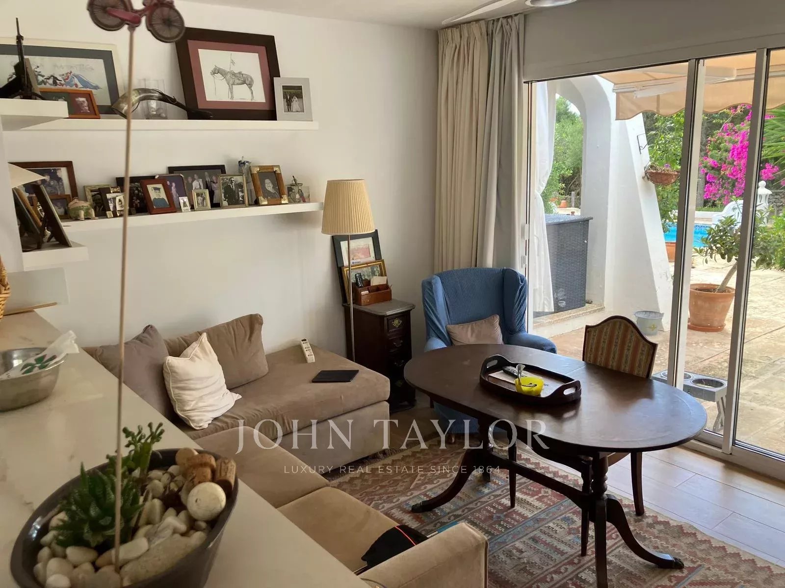 Le cœur de la maison est un salon-salle à manger de 64 m², lumineux et spacieux, qui communique avec un porche confortable équipé de deux ventilateurs de plafond, idéal pour profiter du jardin et de la piscine.