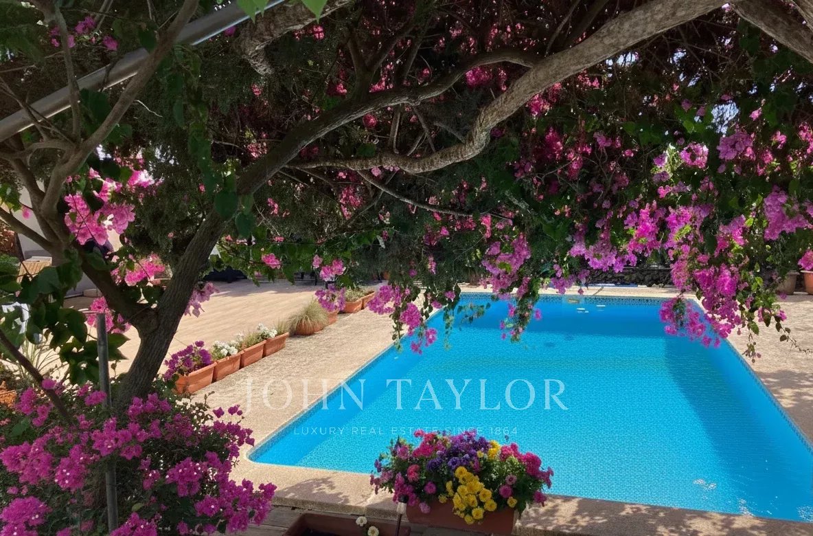 La propriété est complétée par une cuisine fonctionnelle, un salon, une buanderie, un bureau, un garage fermé, une pergola extérieure, deux maisons auxiliaires et une piscine avec système de purification.