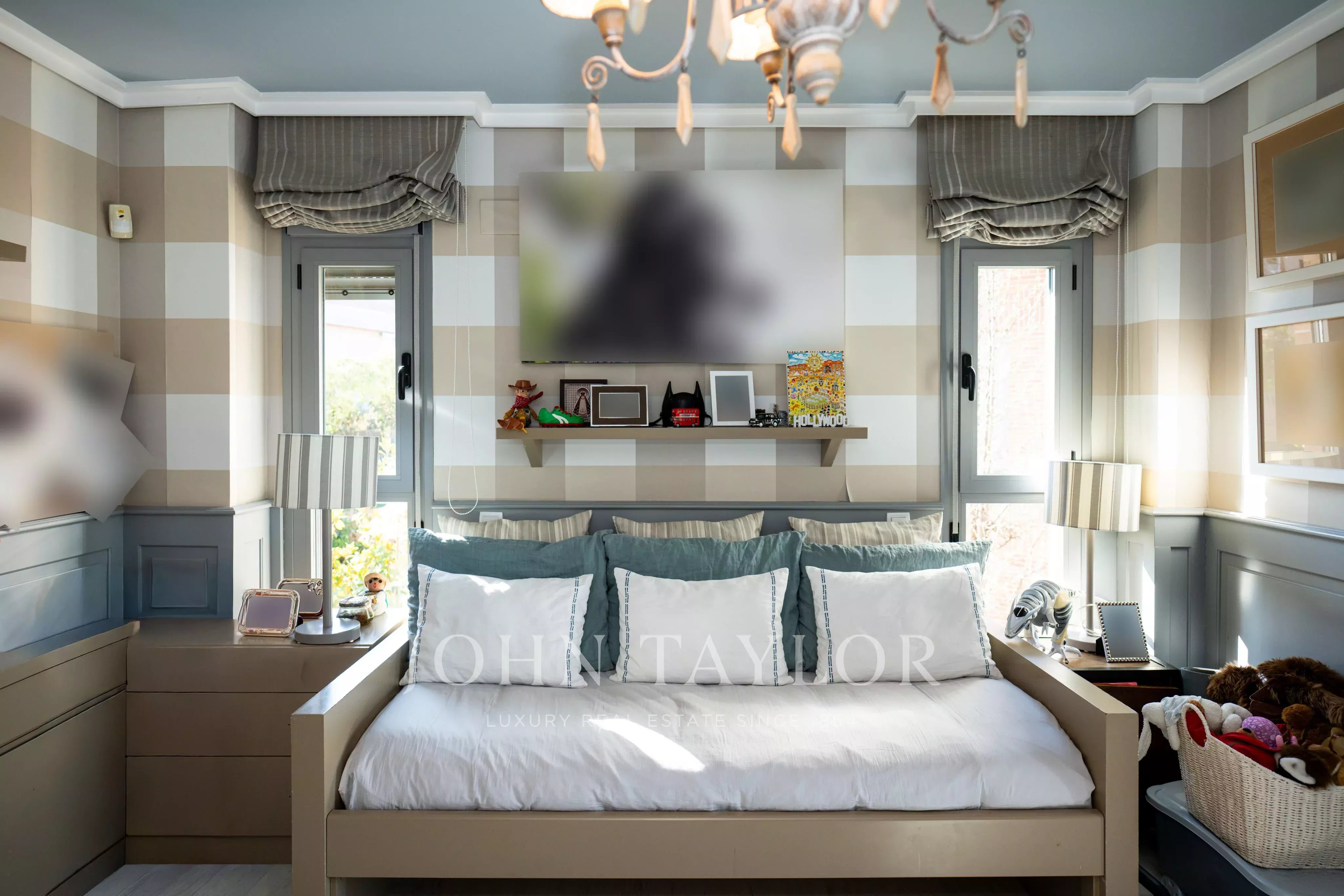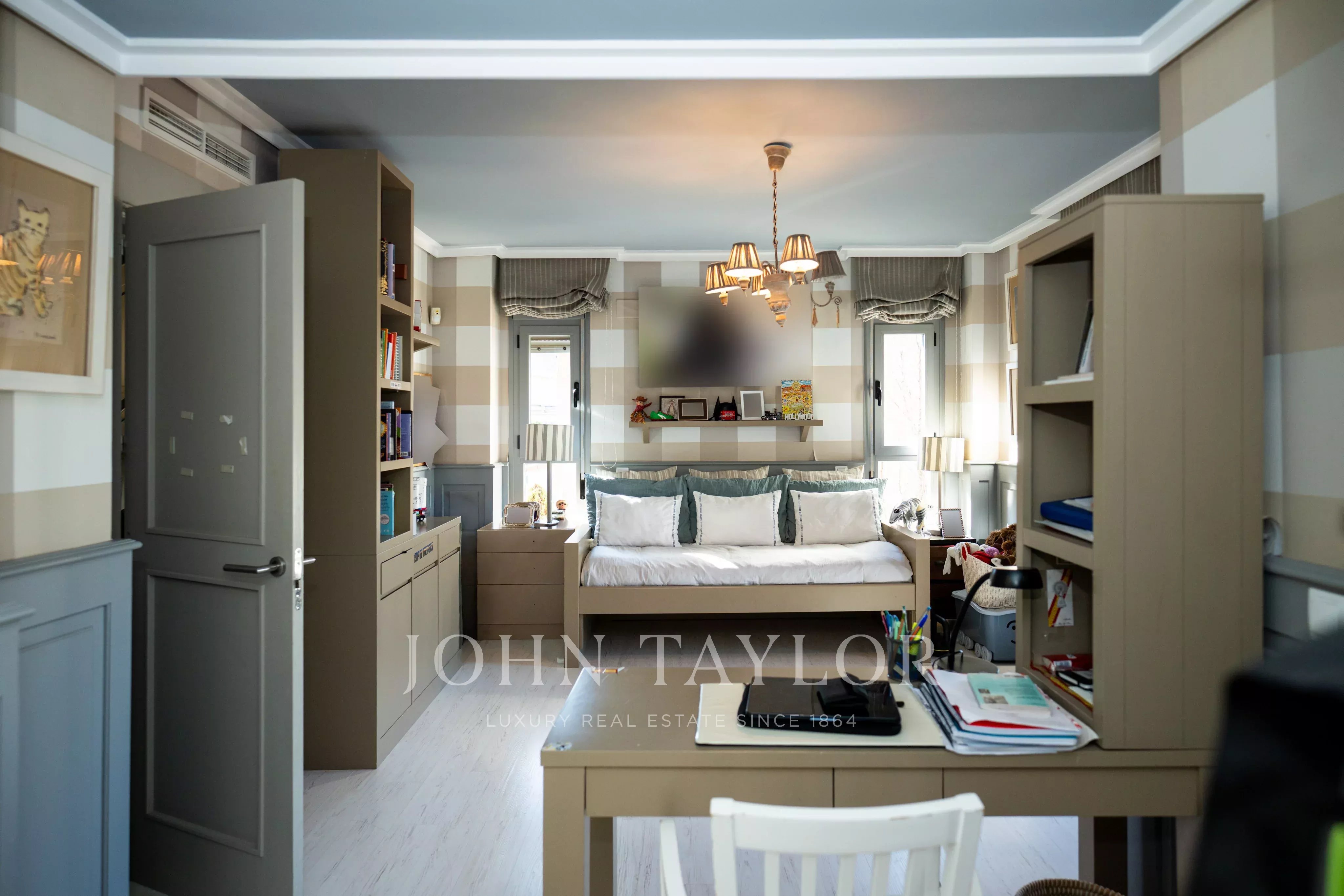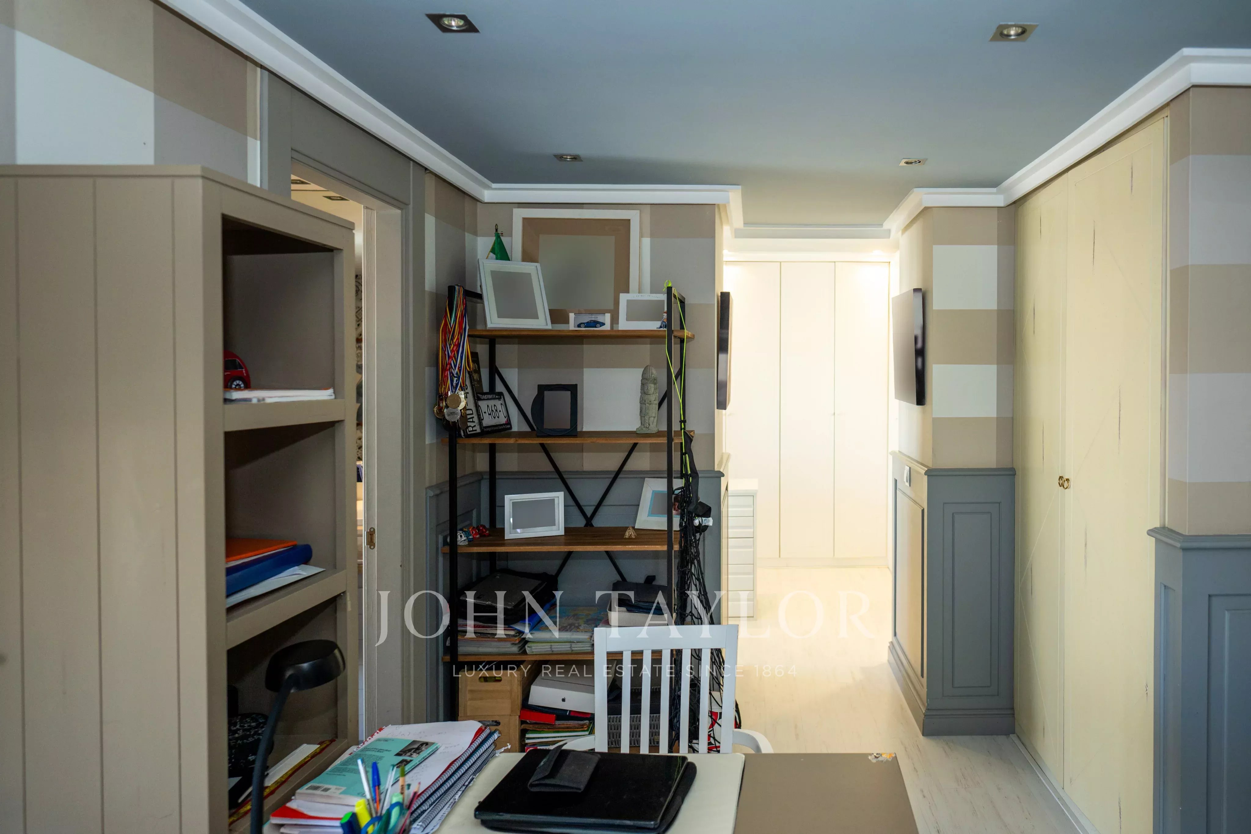 Le niveau inférieur comprend une salle de télévision avec des toilettes pour les invités et une grande salle multifonctionnelle avec un bar et une salle de bains avec douche. Cet espace, avec accès direct au jardin, peut être aménagé en chambre supplémentaire, salle de sport, espace de loisirs ou salle de jeux.