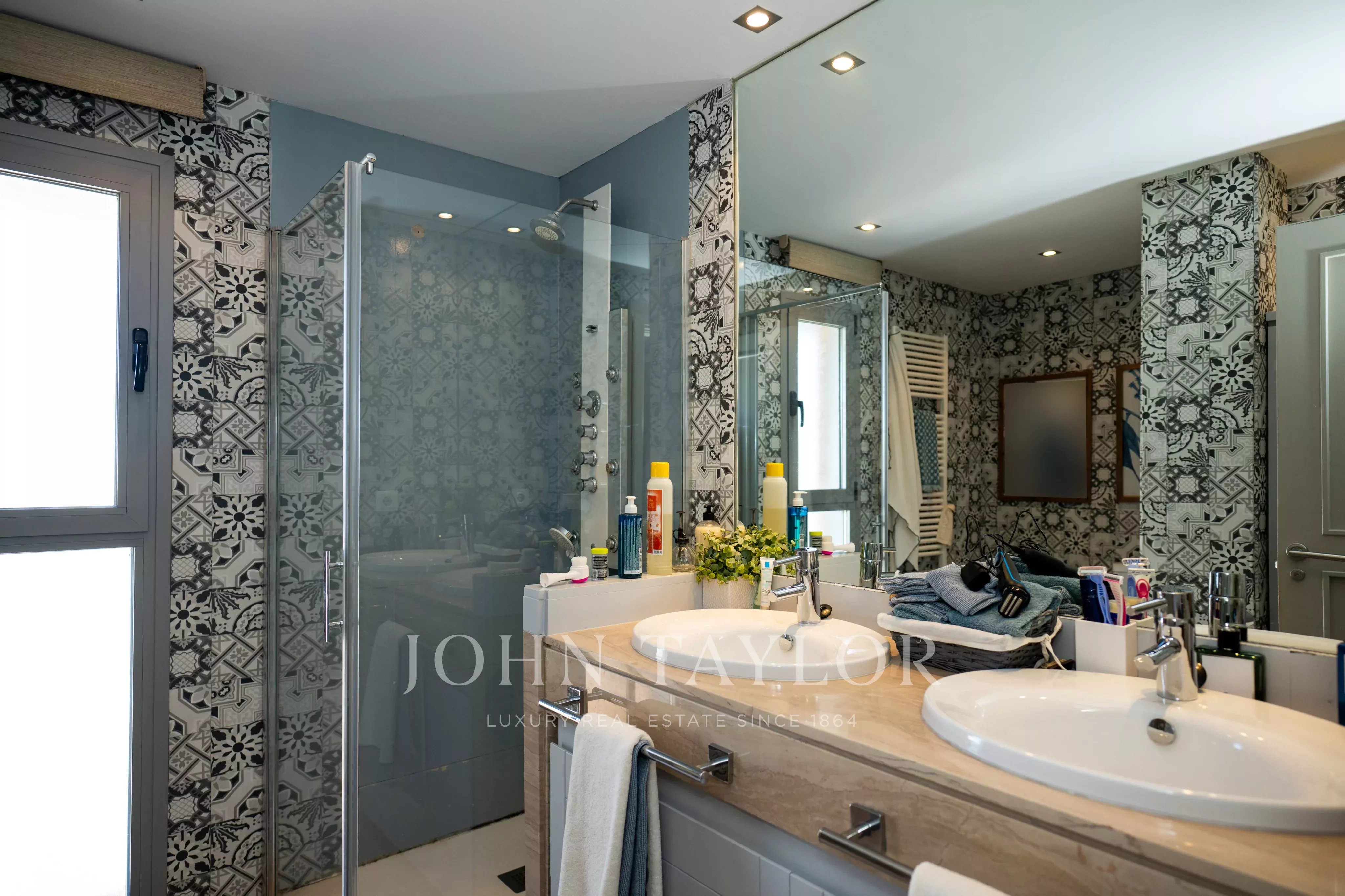 La rénovation a été réalisée avec des matériaux de haute qualité et planifiée pour assurer la fonctionnalité et le confort en toute saison. La propriété est équipée de l'air conditionné, du chauffage au gaz naturel, d'un système d'alarme et de stores motorisés.
