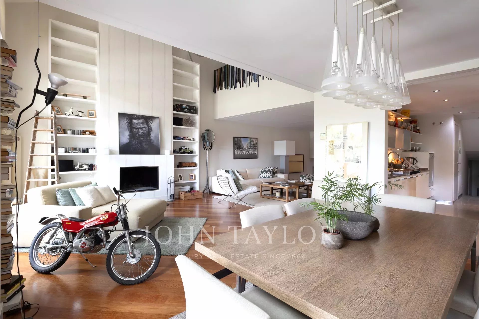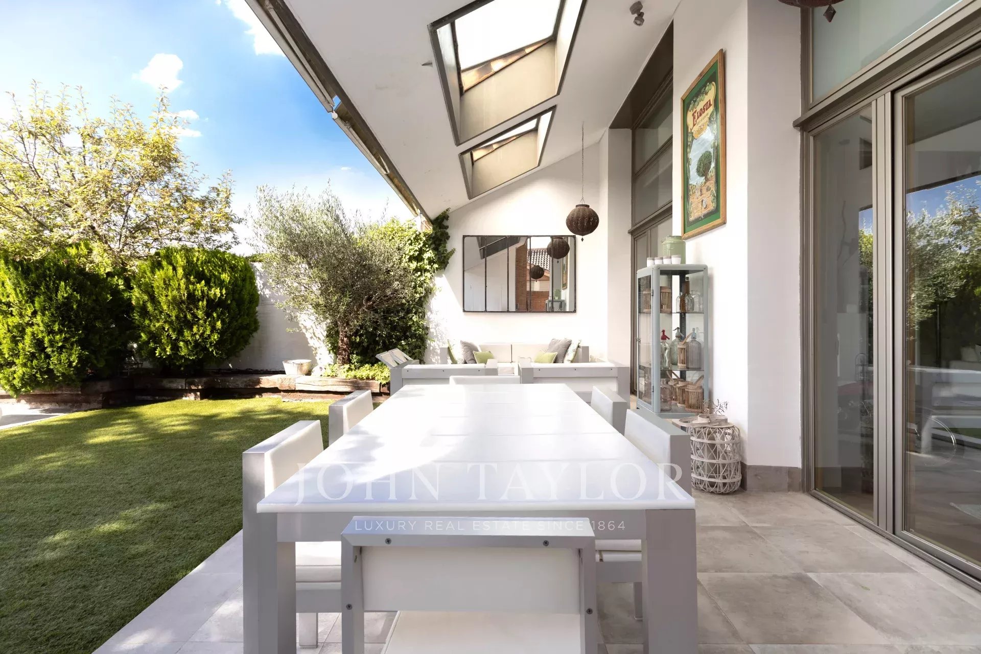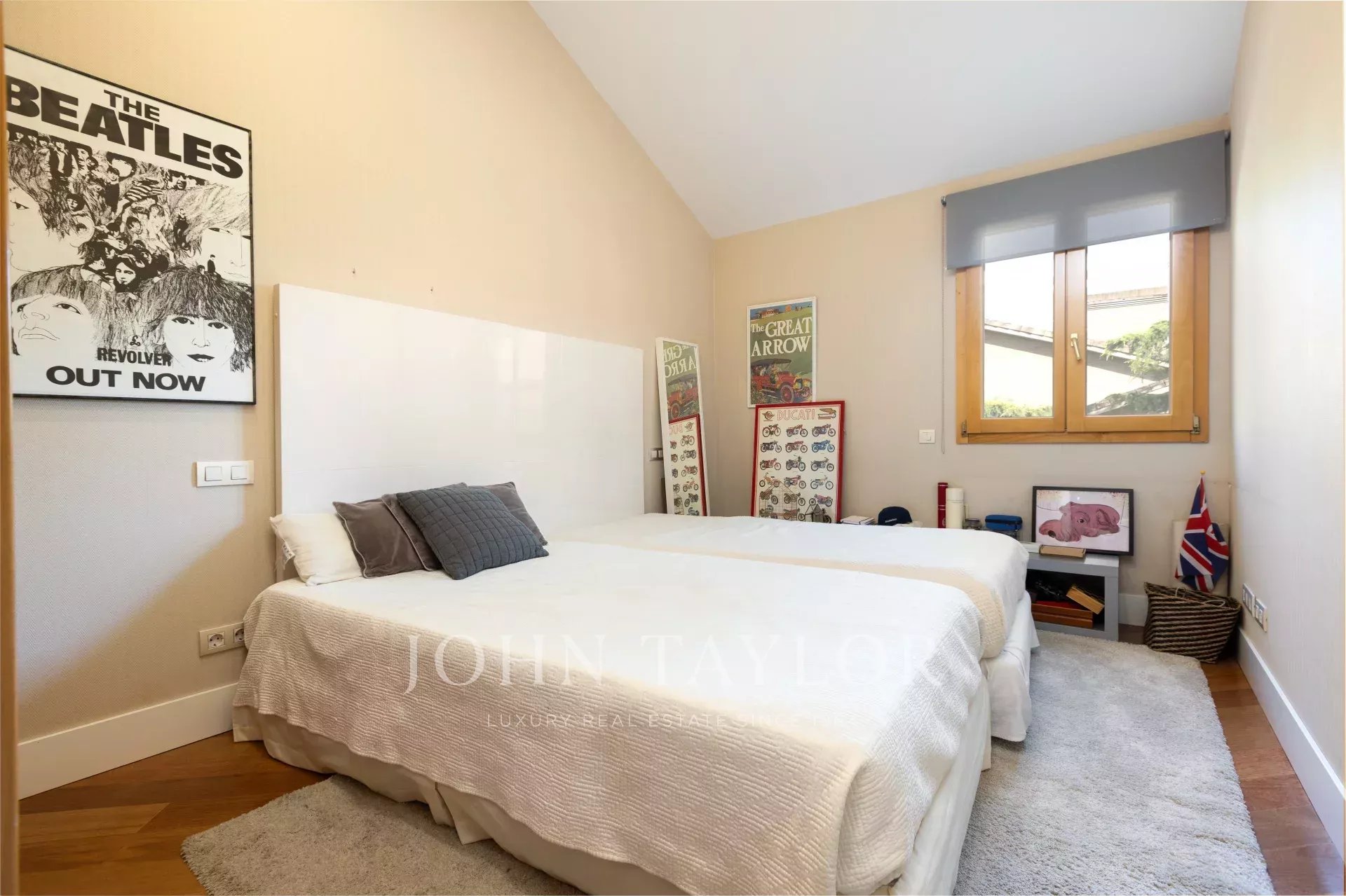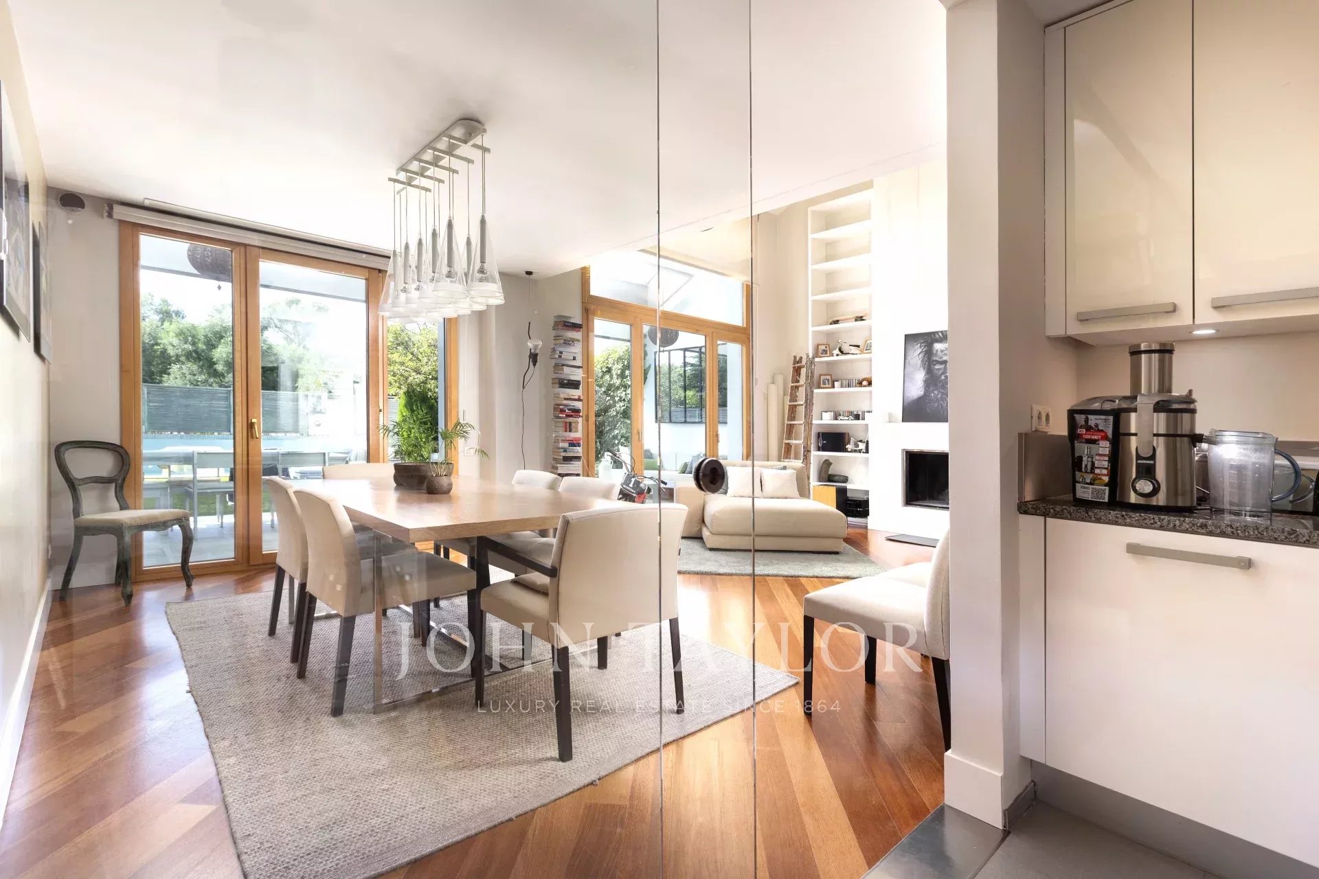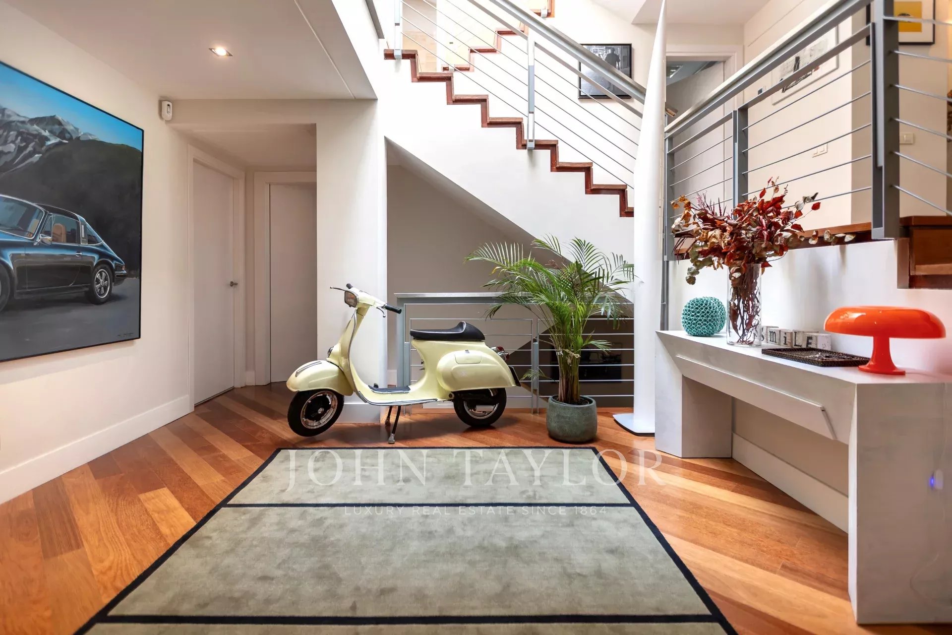 En entrant dans la maison, on trouve un hall spacieux qui donne accès à un grand salon et à un bureau. En continuant à l'étage, on trouve un deuxième salon-salle à manger lumineux avec vue sur la piscine et le jardin privé, ainsi qu'une grande cuisine. À l'étage suivant, on trouve trois chambres lumineuses et deux salles de bains. Plus haut encore, la chambre principale dispose d'une salle de bains attenante, d'un dressing et d'un balcon.