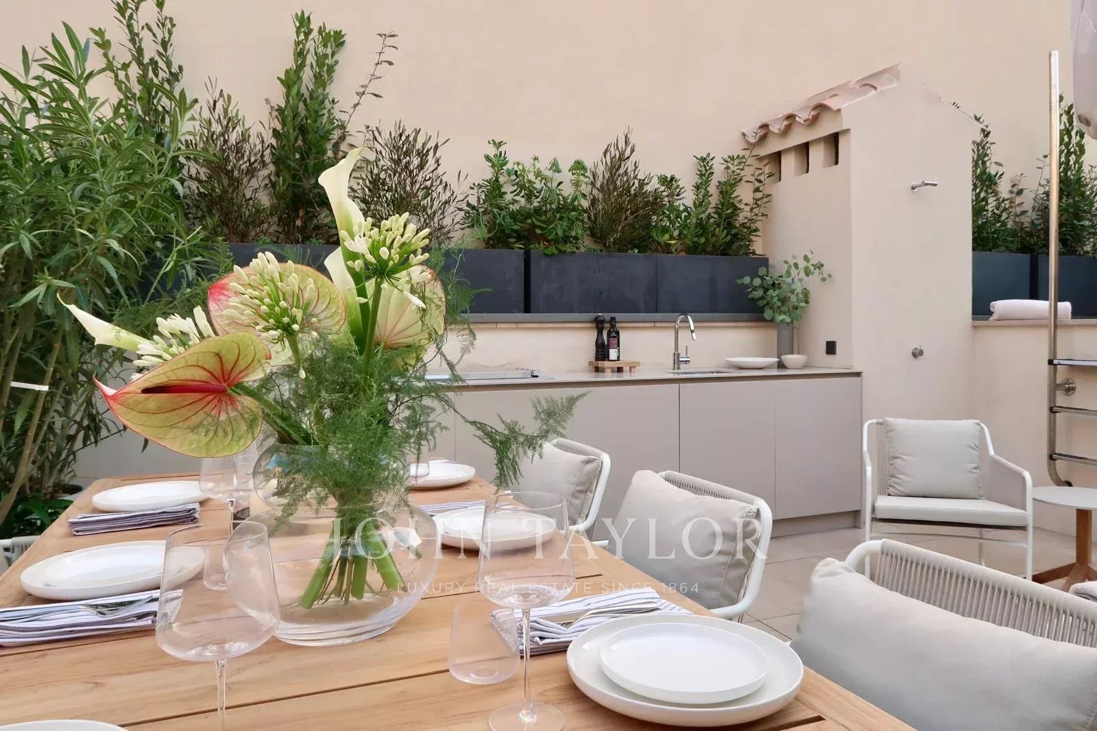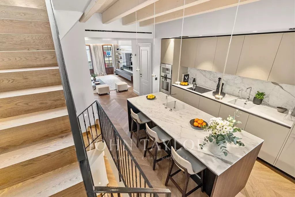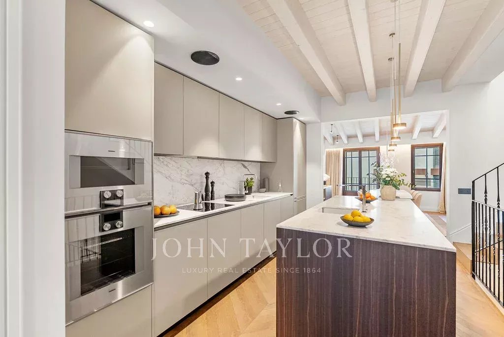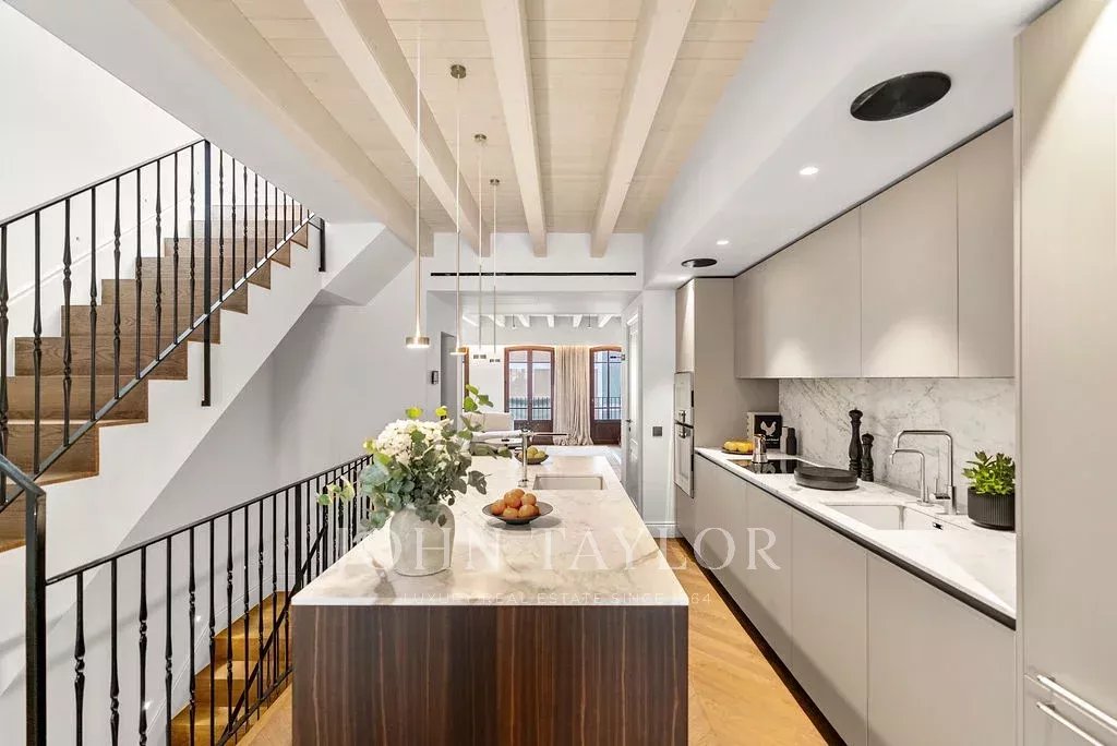 La maison de ville Llorenc présente un éventail de marques de qualité supérieure et d'éléments sur mesure, notamment la menuiserie Poliform, les appareils Gaggenau et Miele, l'éclairage Giopato & Coombes, les systèmes audio Bang & Olufsen, le mobilier d'extérieur Roda et les textiles Loro Piana. Parmi les autres éléments marquants, citons les détails en marbre conçus sur mesure, les éclairages Flos, les luminaires Vola et les haut-parleurs Sonance Invisible, tous sélectionnés pour créer une expérience de vie inégalée.