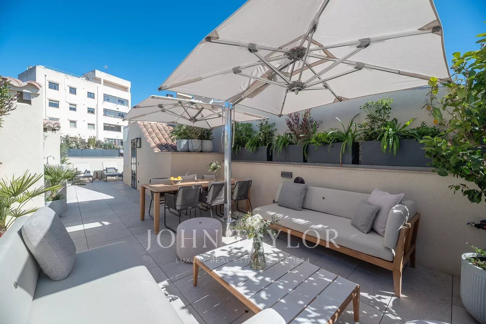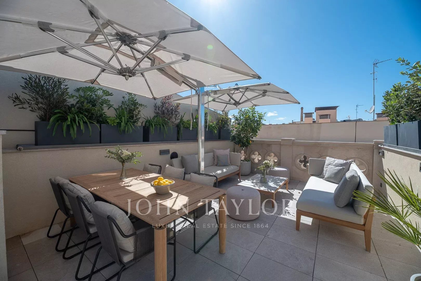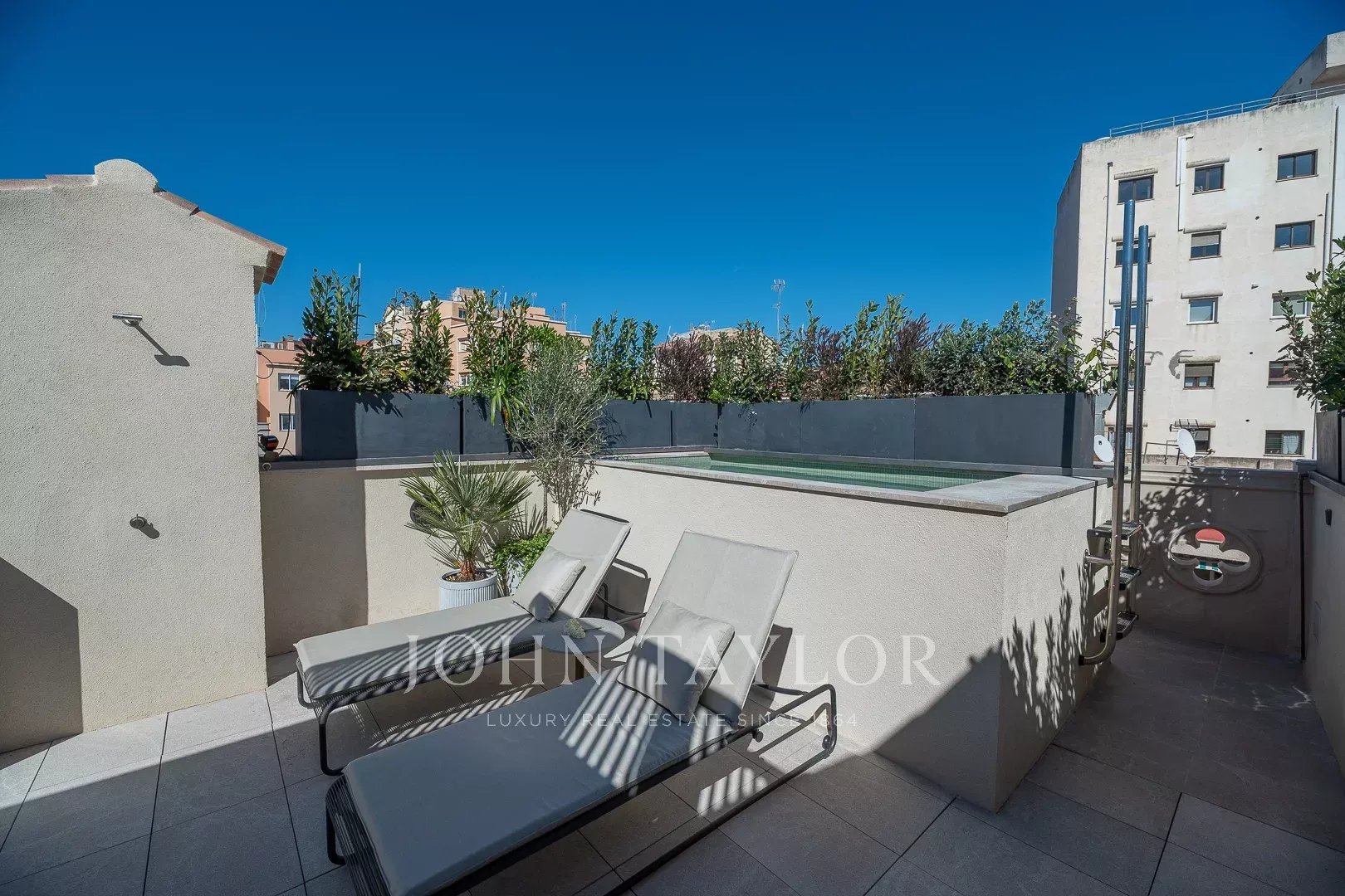 Terrasse sur le toit : La pièce maîtresse de la propriété, la terrasse sur le toit de 90 m², offre un espace idyllique pour la détente et la réception. Profitez d'une piscine privée exposée au soleil, d'une cuisine d'été, d'une douche extérieure et d'espaces dédiés pour manger, se détendre et se relaxer — tous avec une vue imprenable sur le skyline historique de Palma.