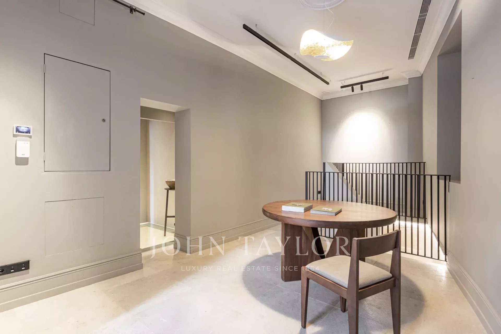 La maison est entièrement équipée de meubles classiques et de solutions astucieuses telles que des lampes suspendues avec filament organique en laiton, des prises encastrées, des rideaux en lin français et des meubles en bois laqué, faits sur mesure. La maison de ville est également entièrement meublée d'œuvres d'art contemporaines originales, sélectionnées par une galerie d'art.