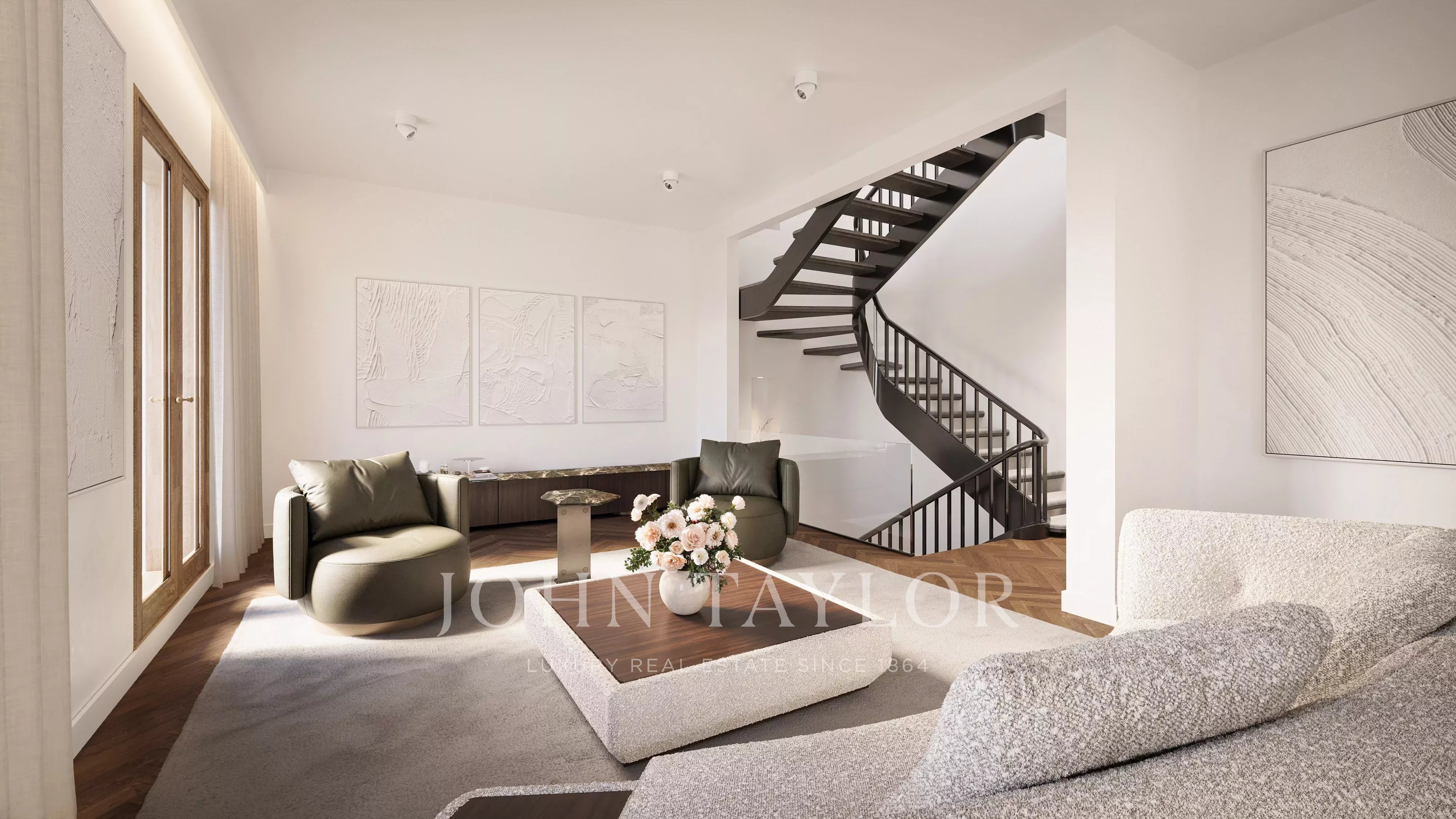 Les intérieurs reflètent la signature unique de Minotti : un langage de conception calme et intemporel défini par des matériaux naturels de haute qualité, des encastrements sur mesure et des formes précises. Les couleurs, les proportions et les textures sont magistralement coordonnées, donnant à l'espace profondeur, élégance et chaleur. Chaque élément est placé intentionnellement, formant une esthétique globale qui est à la fois représentative et invitante. Cette maison de ville est plus qu'une propriété, c'est une retraite raffinée pour ceux qui apprécient l'exceptionnel.