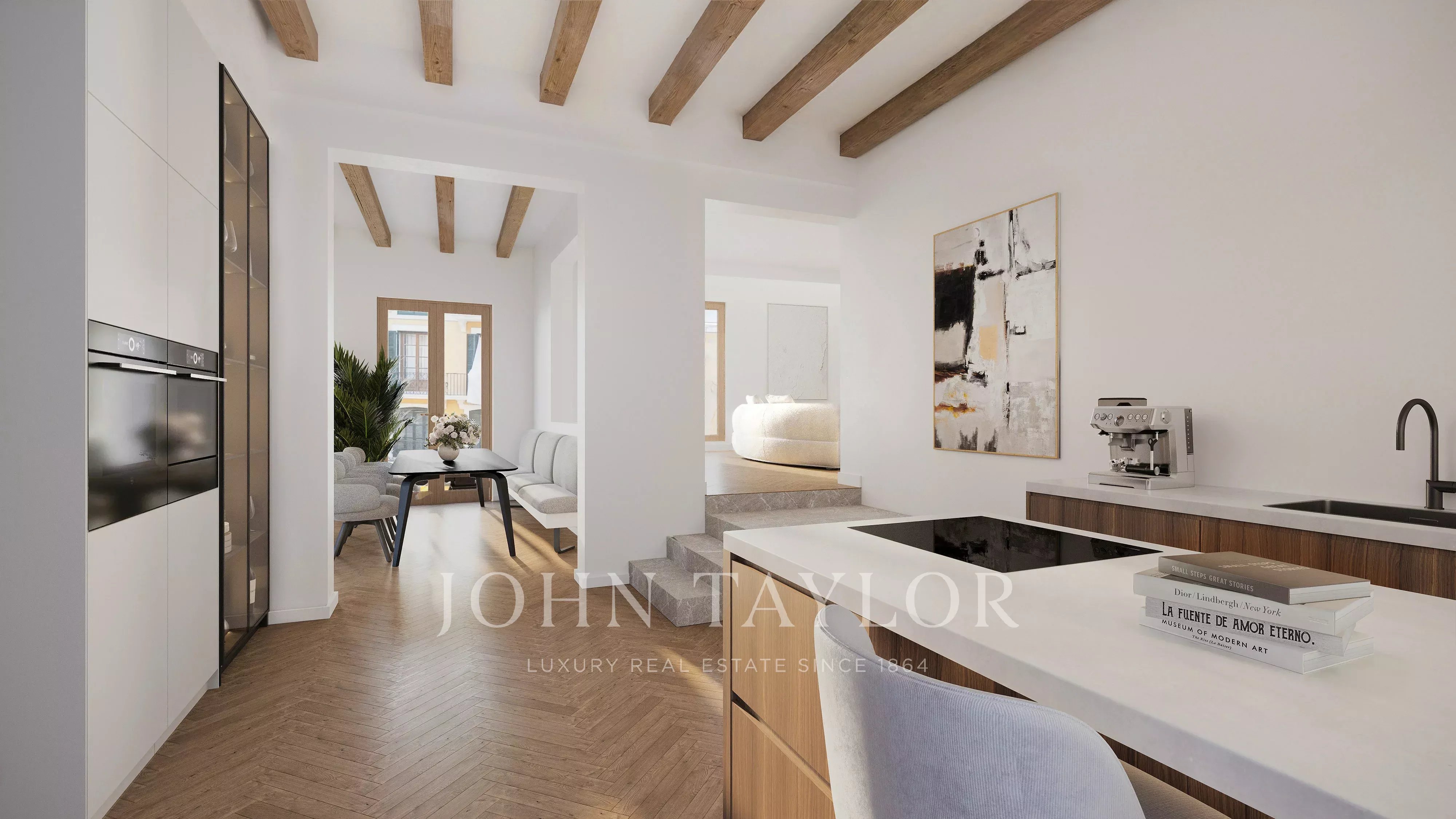 L'escalier en colimaçon restauré d'origine se fond sans effort dans l'espace, préservant le caractère unique de la maison. Trois chambres spacieuses avec salles de bains attenantes, plus deux pièces supplémentaires à usage flexible, un bureau à domicile séparé, un espace spa privé avec sauna, un home cinéma, une cave à vin climatisée, un garage élégant et une terrasse exclusive sur le toit créent une expérience de vie vraiment unique dans la vieille ville de Palma.