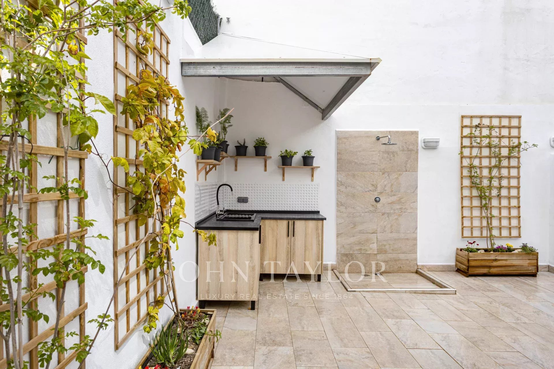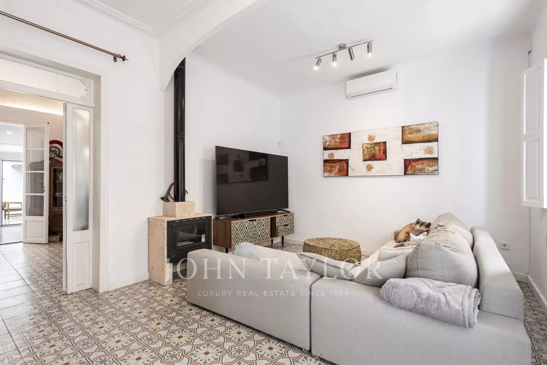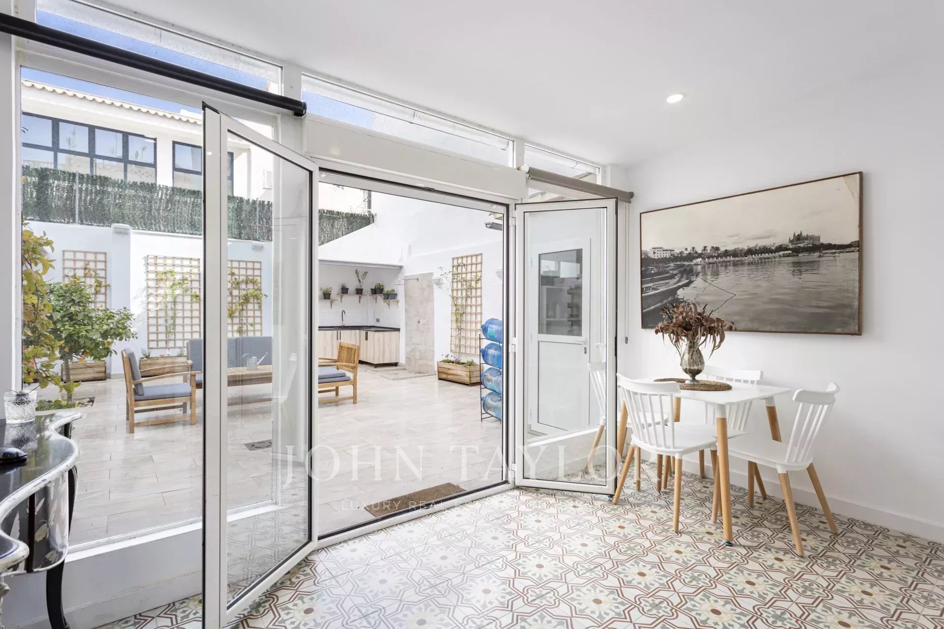 Cette charmante maison de ville est située dans un quartier calme de Santa Catalina. La propriété a été entièrement rénovée, tout en conservant le charme traditionnel d'une maison de ville mallorquine. Les approx. 126m2 sont distribués sur un salon, une cuisine spacieuse, 2 chambres doubles et 2 salles de bain, dont une en suite, une buanderie et une mezzanine qui peut être utilisée comme salle de télévision ou chambre d'amis. Le point fort de cette propriété est l'espace extérieur qui est séparé en une cour confortable avec suffisamment d'espace pour un jaccuzi et une terrasse sur le toit avec un coin salon. La maison est équipée de l'air conditionné chaud-froid, d'une douche extérieure et de volets en bois.
