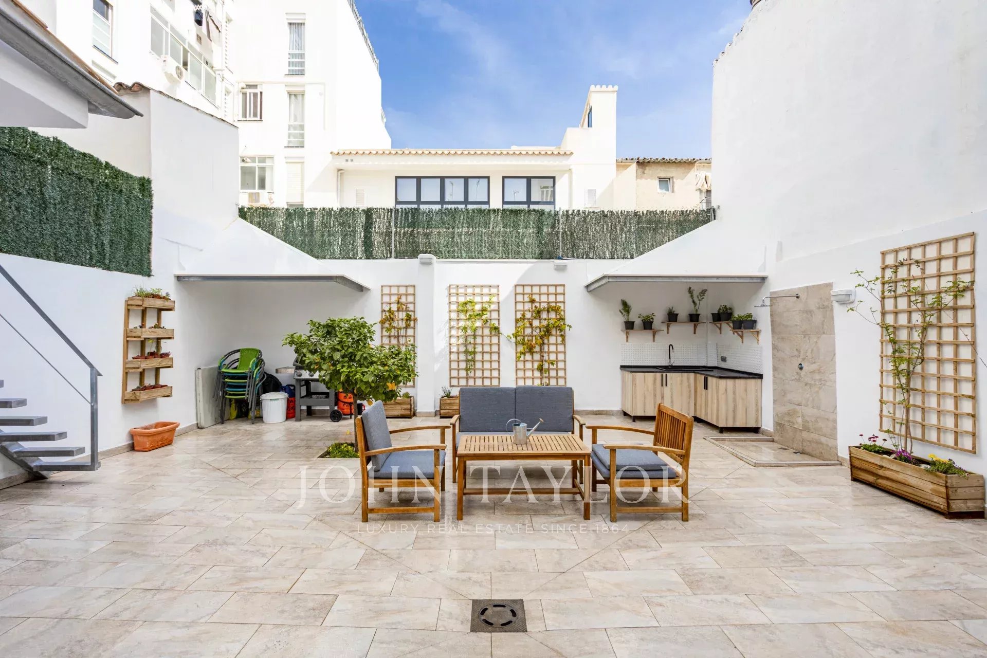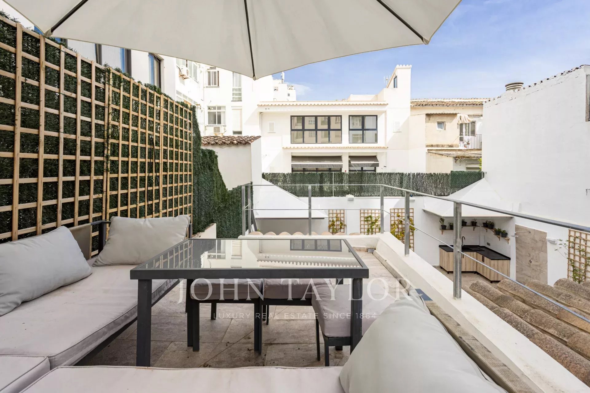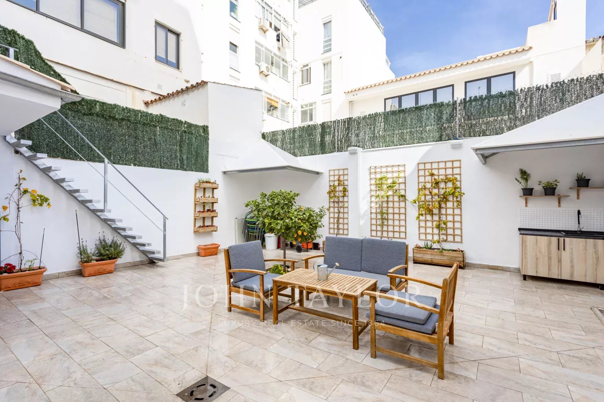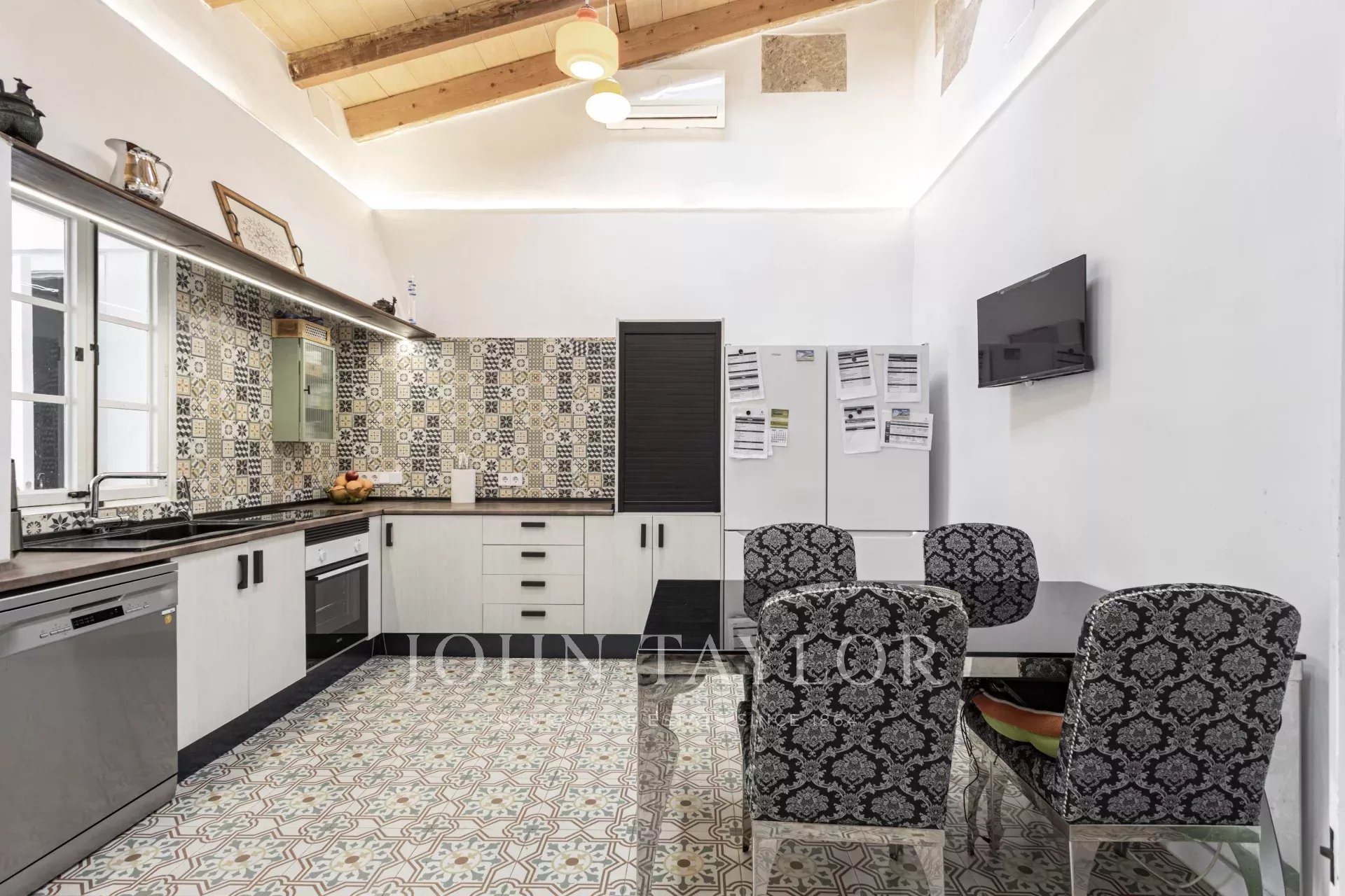 Cette charmante maison de ville est située dans un quartier calme de Santa Catalina. La propriété a été entièrement rénovée, tout en conservant le charme traditionnel d'une maison de ville mallorquine. Les approx. 126m2 sont distribués sur un salon, une cuisine spacieuse, 2 chambres doubles et 2 salles de bain, dont une en suite, une buanderie et une mezzanine qui peut être utilisée comme salle de télévision ou chambre d'amis. Le point fort de cette propriété est l'espace extérieur qui est séparé en une cour confortable avec suffisamment d'espace pour un jaccuzi et une terrasse sur le toit avec un coin salon. La maison est équipée de l'air conditionné chaud-froid, d'une douche extérieure et de volets en bois.
