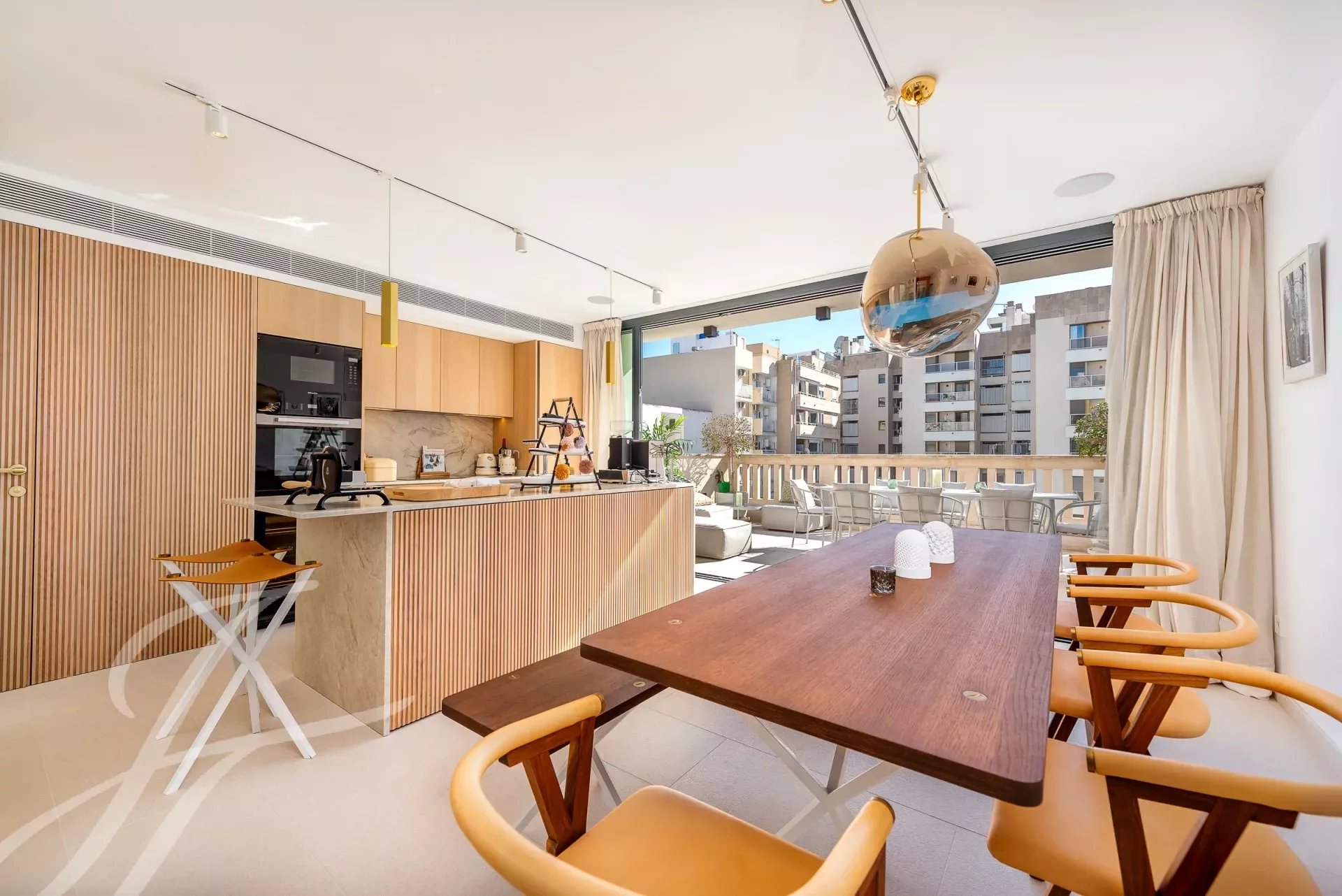 Cette maison de ville récemment construite offre tout ce que l'on peut imaginer dans l'un des endroits les plus sollicités de Palma grâce à son accès facile à Jaime III, Paseo Marítimo, Santa Catalina, Avenidas et juste de l'autre côté de la route du club de sport et de tennis de Palma. Dès l'entrée, il est évident qu'il s'agit d'une propriété spéciale, avec une bodega, une piscine intérieure, une salle de sport, un sauna avec une salle de bain complète, ce qui en fait un espace idéal pour la socialisation, le sport ou la relaxation. Depuis le rez-de-chaussée, on peut accéder au reste de la propriété par la cage d'escalier ou l'ascenseur privé. Au premier étage se trouvent deux chambres doubles avec salle de bains en suite, toutes les chambres ayant des fenêtres du sol au plafond permettant une lumière naturelle abondante, ainsi que des balcons français. Au deuxième étage se trouve la suite parentale avec salle de bains en suite, salon et bureau. Le troisième étage offre une cuisine/salle à manger ouverte et entièrement équipée avec un accès direct à la terrasse extérieure offrant une vue partielle sur la mer. C'est un espace idéal pour les repas à l'intérieur ou à l'extérieur, ou pour profiter de soirées paresseuses devant la cheminée. La piscine privée, le vestiaire et la douche extérieure se trouvent sur le toit-terrasse du quatrième étage. Conçu avec un flair scandinave en collaboration avec l'un des meilleurs architectes de l'île, il offre un maximum de qualités, de finitions et de garanties.