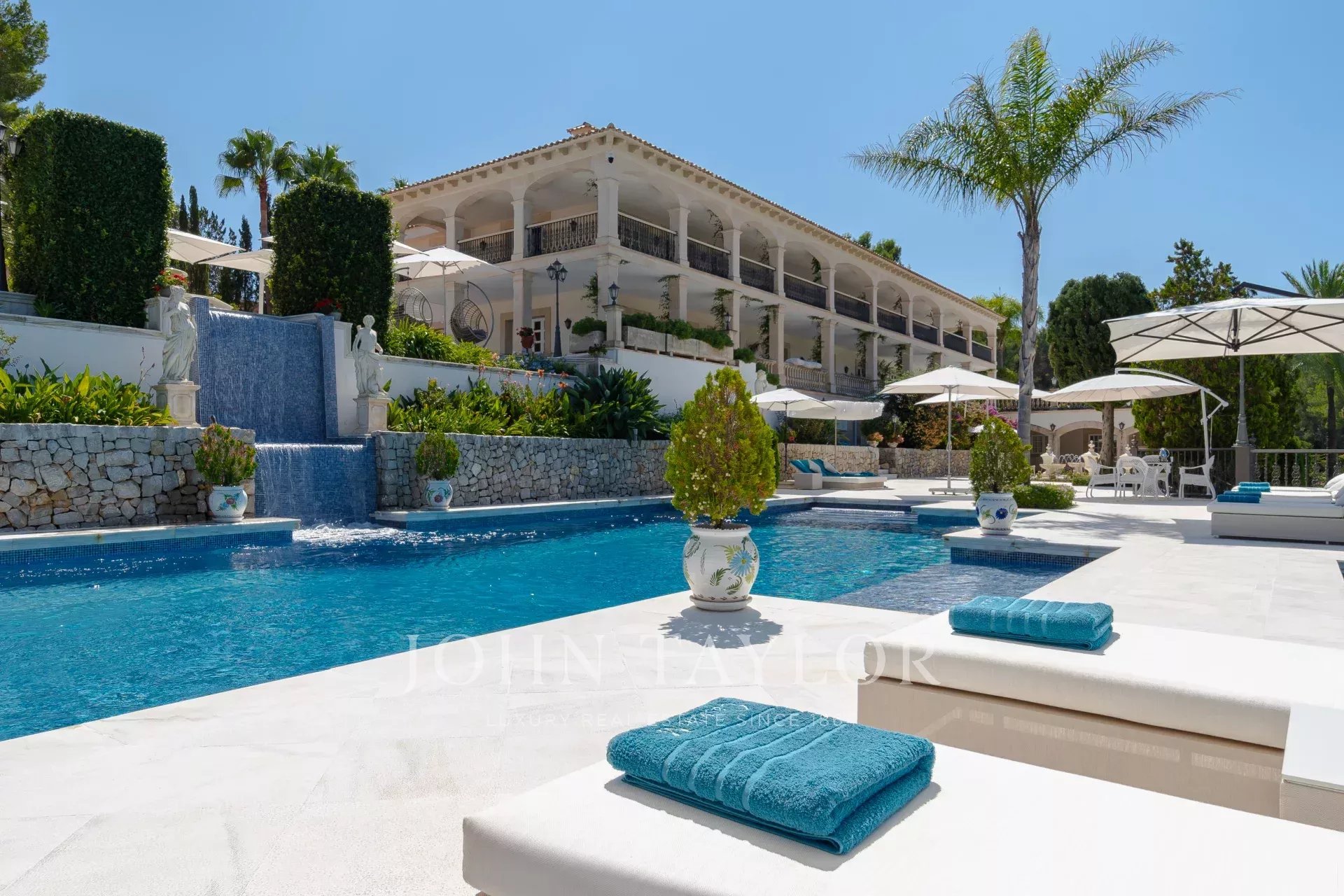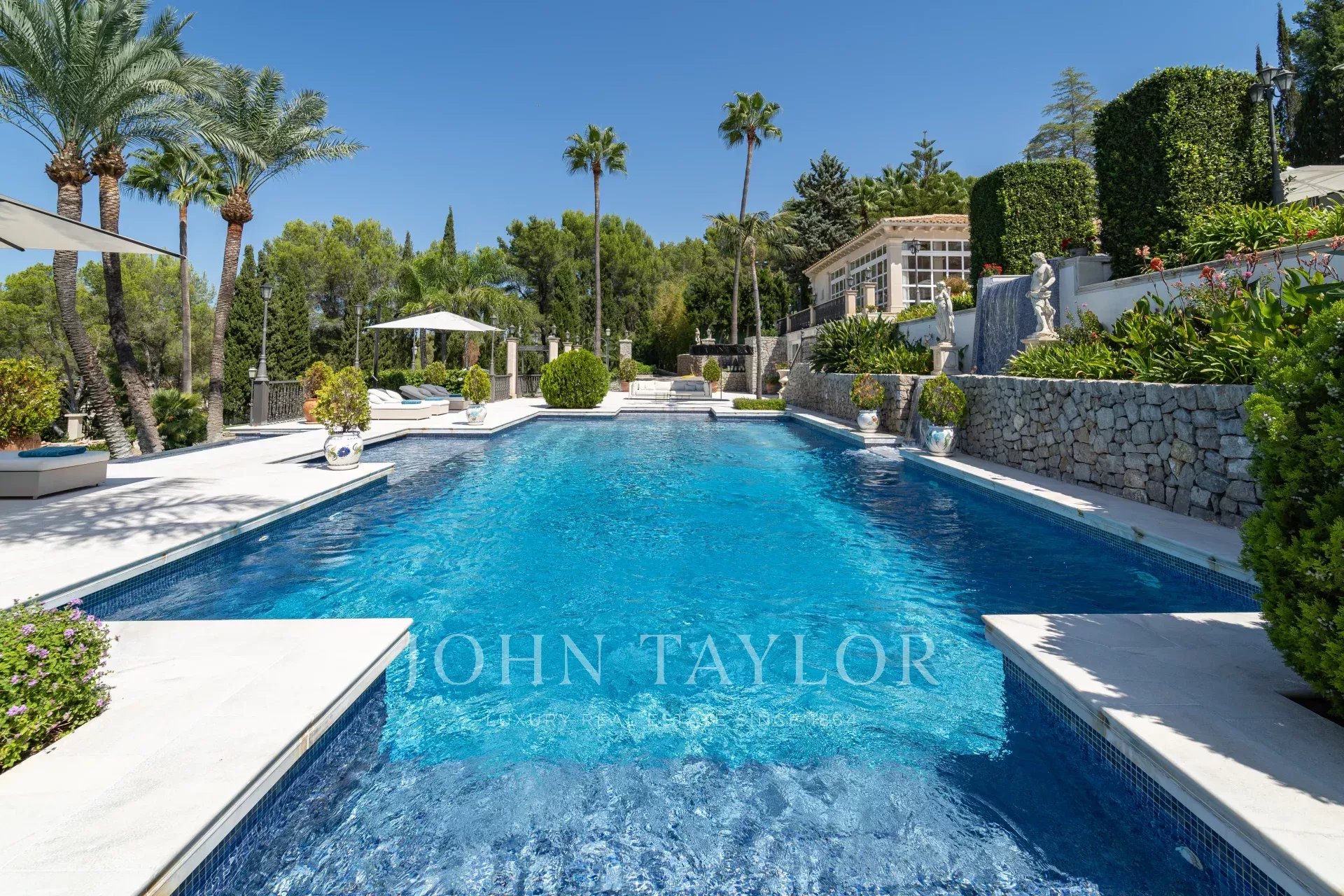 Perché majestueusement sur un anneau de murs illuminés, le Castello M est l'un des domaines les plus emblématiques et les plus prestigieux de Son Vida, offrant des vues à couper le souffle depuis presque tous les points de vue. Cette propriété extraordinaire combine harmonieusement l'architecture néoclassique et la sophistication moderne, avec des détails exquis tels qu'un nymphée, des statues classiques, des fontaines, une cascade et une technologie de pointe pour la maison intelligente.