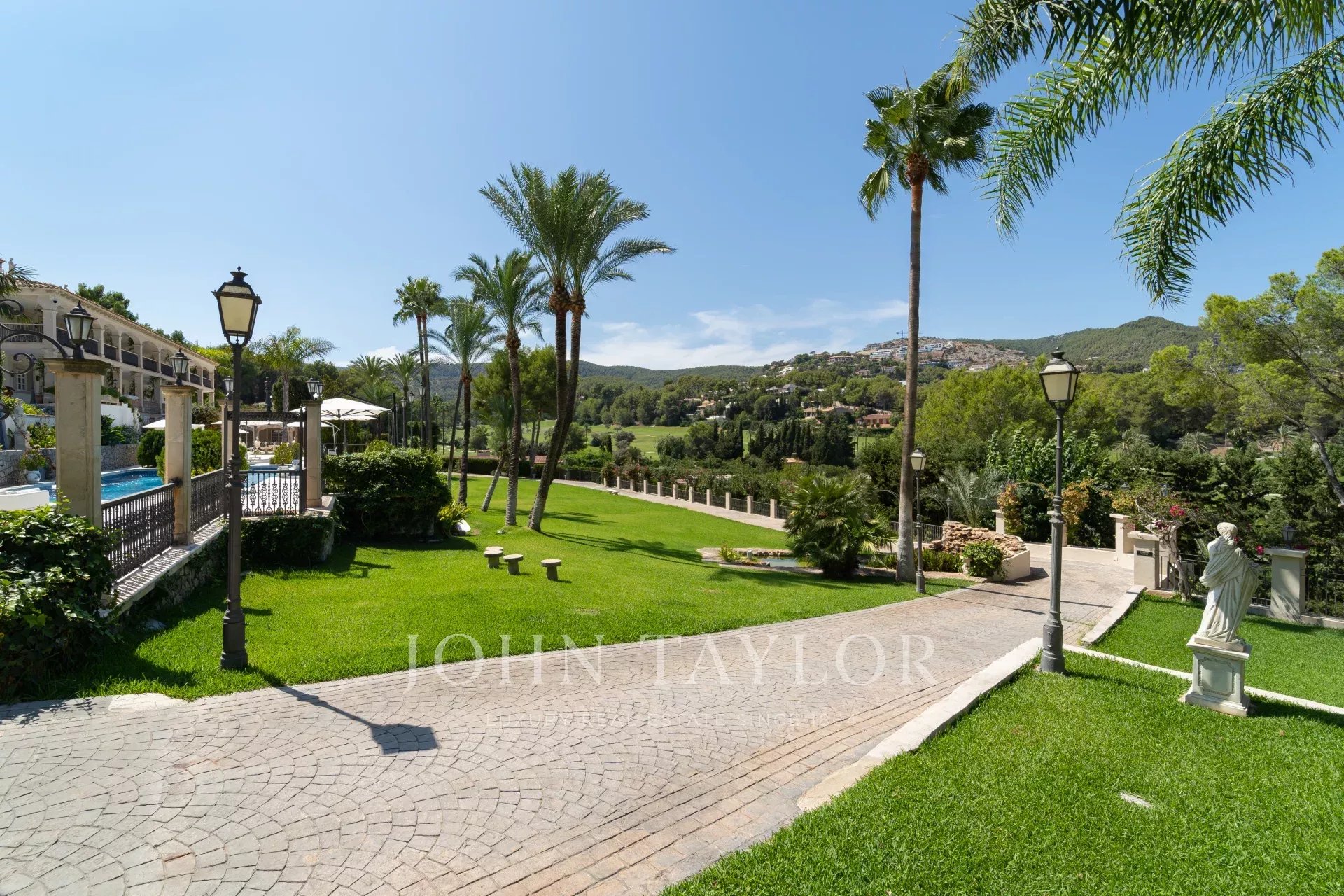 Son Vida - l'incarnation du style de vie luxueux à Majorque - a été mentionné pour la première fois au XIIIe siècle. Le château mentionné est aujourd'hui un hôtel célèbre. Le site était à l'origine une zone agricole et a été développé par la famille Vida. Aujourd'hui, il s'agit d'une communauté fermée comprenant plusieurs terrains de golf, deux hôtels cinq étoiles et un large éventail de propriétés magnifiques offrant une vue imprenable sur les montagnes environnantes et la baie de Palma. Elle a attiré des visiteurs célèbres et des membres de la famille royale et a été la résidence de célébrités, d'amateurs de golf et d'architecture. Il est facile d'accéder à toutes les commodités telles que les événements culturels, les cinémas, les magasins, les centres sportifs et médicaux, et il n'est qu'à un jet de pierre de la capitale Palma. Les plages célèbres et leurs clubs se trouvent à une courte distance en voiture et l'aéroport n'est qu'à 15 minutes, ce qui rend la ville attrayante pour les navetteurs. Son Vida est divisé en deux parties, l'une plus récente et l'autre plus ancienne. Dans le nouveau Son Vida, vous trouverez de superbes villas à l'architecture puriste et moderne et, dans la partie plus ancienne, des villas de style méditerranéen plus classique autour des terrains de golf. Il y en a donc pour tous les goûts dans la sélection de propriétés exclusives de cette enclave unique.