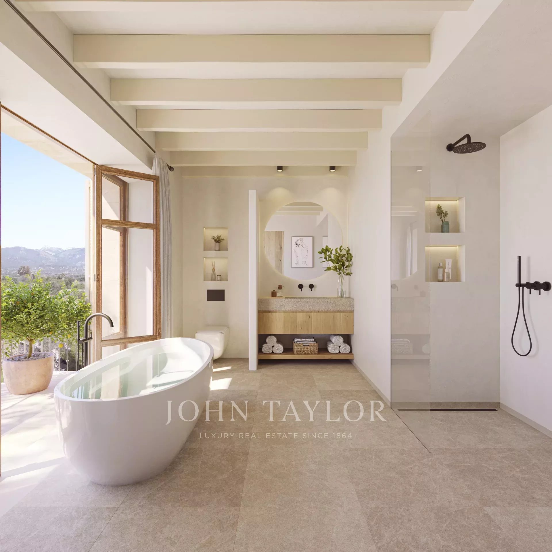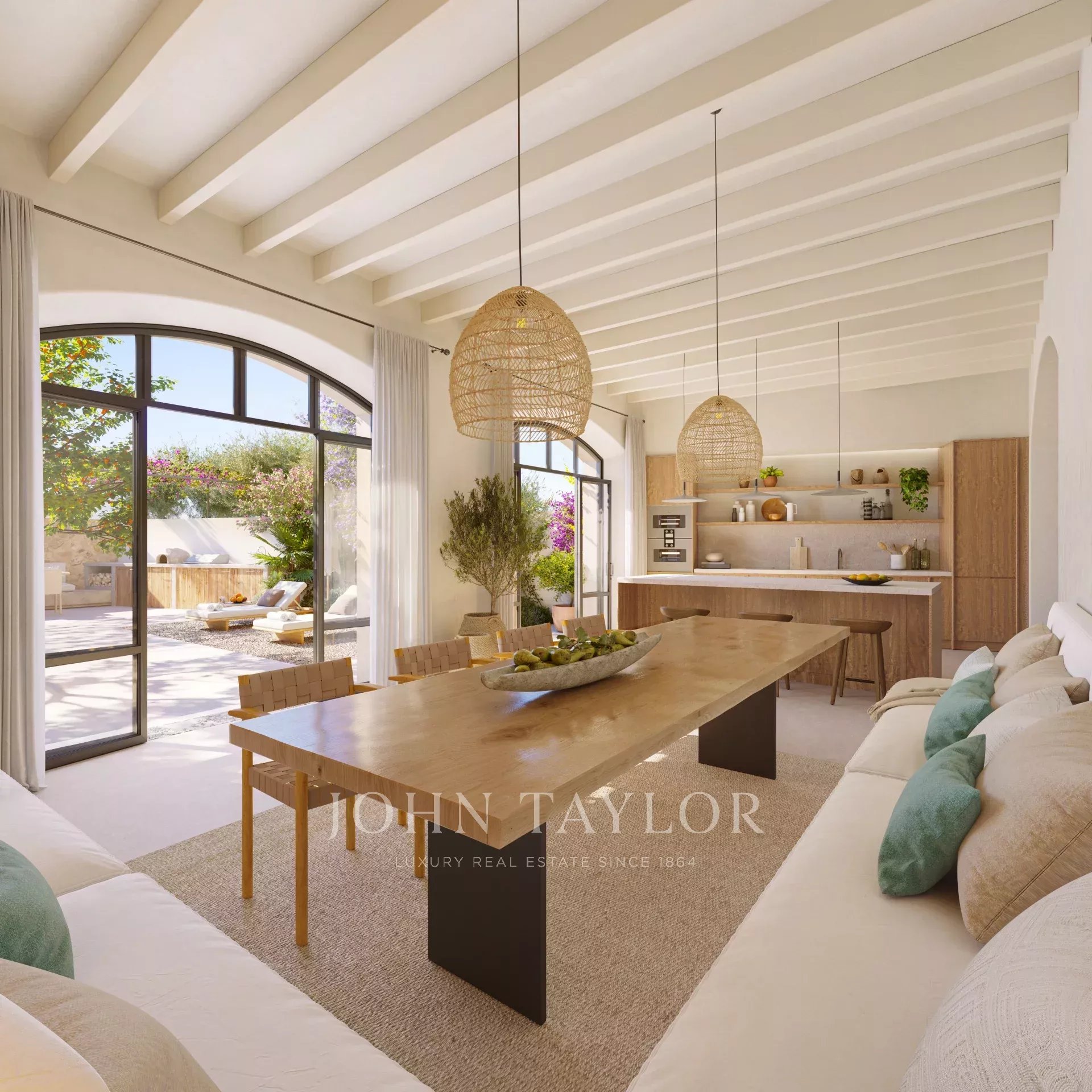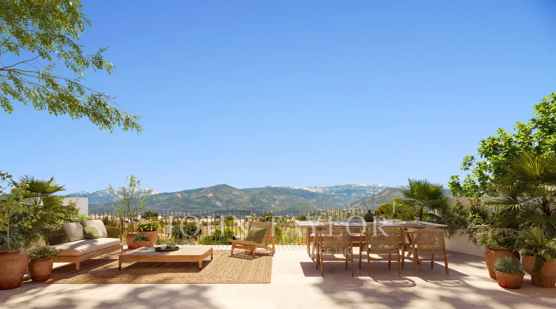 Cette maison mitoyenne avec piscine est en cours de construction dans une rue calme du beau et agréable village de Santa Maria, à quelques pas seulement du centre-ville avec ses cafés, ses restaurants et ses habitants. La propriété aura une façade traditionnelle et un intérieur moderne de haute qualité. De grandes portes en bois mènent à une magnifique maison, répartie sur 3 étages. Elle comprend également un garage privé, un jardin avec piscine, ainsi qu'une terrasse à chaque niveau de la maison offrant une vue imprenable sur les montagnes de Tramuntana. Cette propriété, qui combine parfaitement l'architecture traditionnelle majorquine et la vie contemporaine, ne laisse rien à désirer.