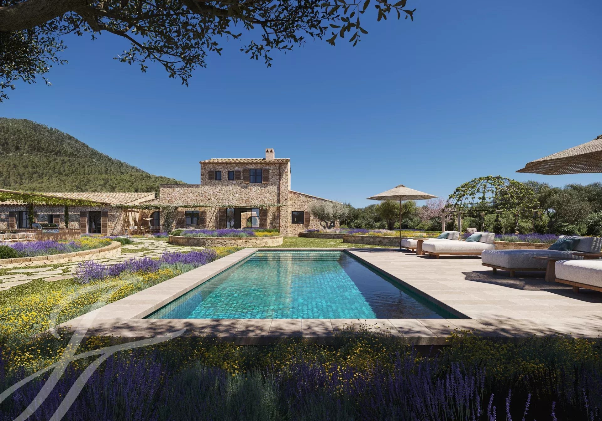 L'extérieur est parfait pour profiter en famille du calme et de la tranquillité, ou pour recevoir des amis et des invités autour de la cuisine extérieure et de la salle à manger ou de la piscine et de l'espace chill-out, immergés dans un environnement naturel.