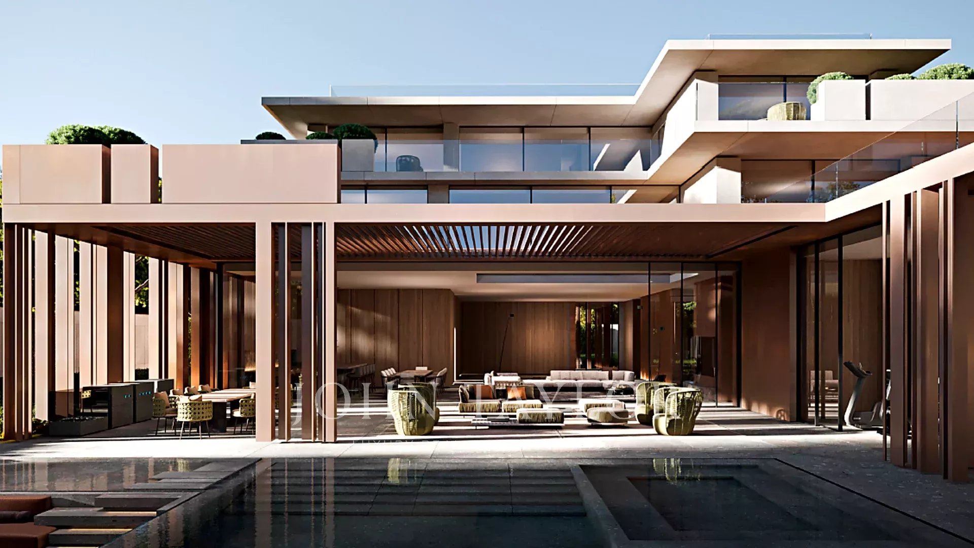 La conception architecturale élève encore le niveau de cette villa. Signée par l'un des architectes les plus sélects de la scène internationale, Yodezeen, la maison est conçue comme une pièce sculpturale où chaque ligne, chaque volume et chaque matériau ont été soigneusement pensés. Béton apparent, pierre naturelle, métal et grandes surfaces vitrées dialoguent en parfaite harmonie, créant des espaces ouverts et organiques baignés de lumière naturelle.