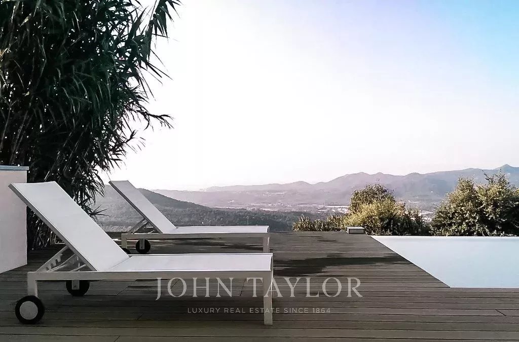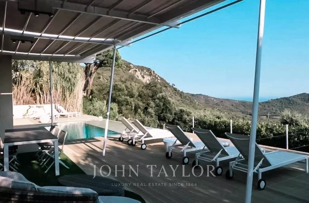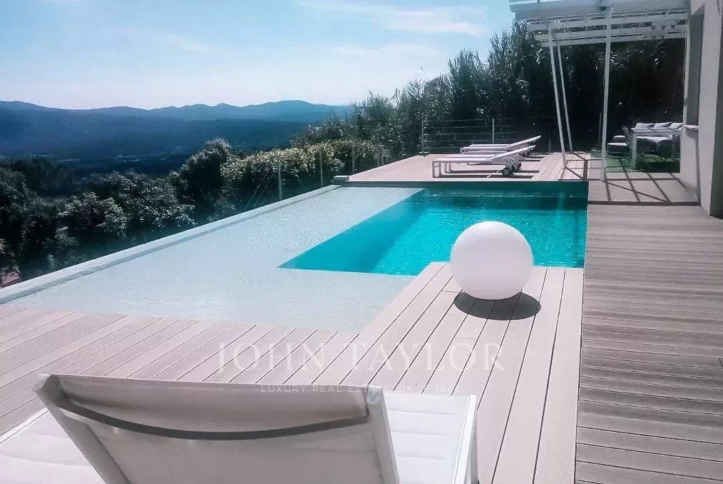 Piscine à débordement pour se détendre le soir et terrain de paddle pour se maintenir en forme.
