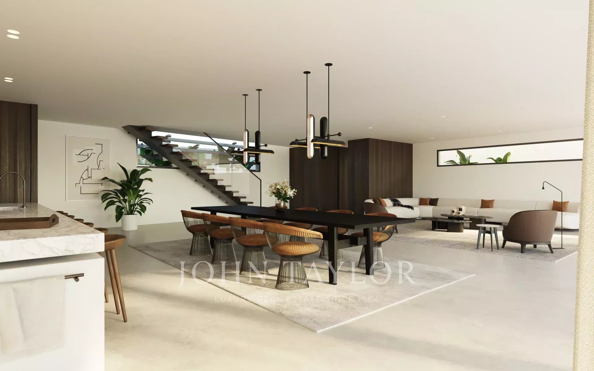 Elle comprend six chambres avec salle de bains en suite, un vaste salon avec cuisine intégrée ainsi qu’un grand sous-sol. Pendant la phase de construction, l’acquéreur pourra choisir les finitions selon ses préférences personnelles.