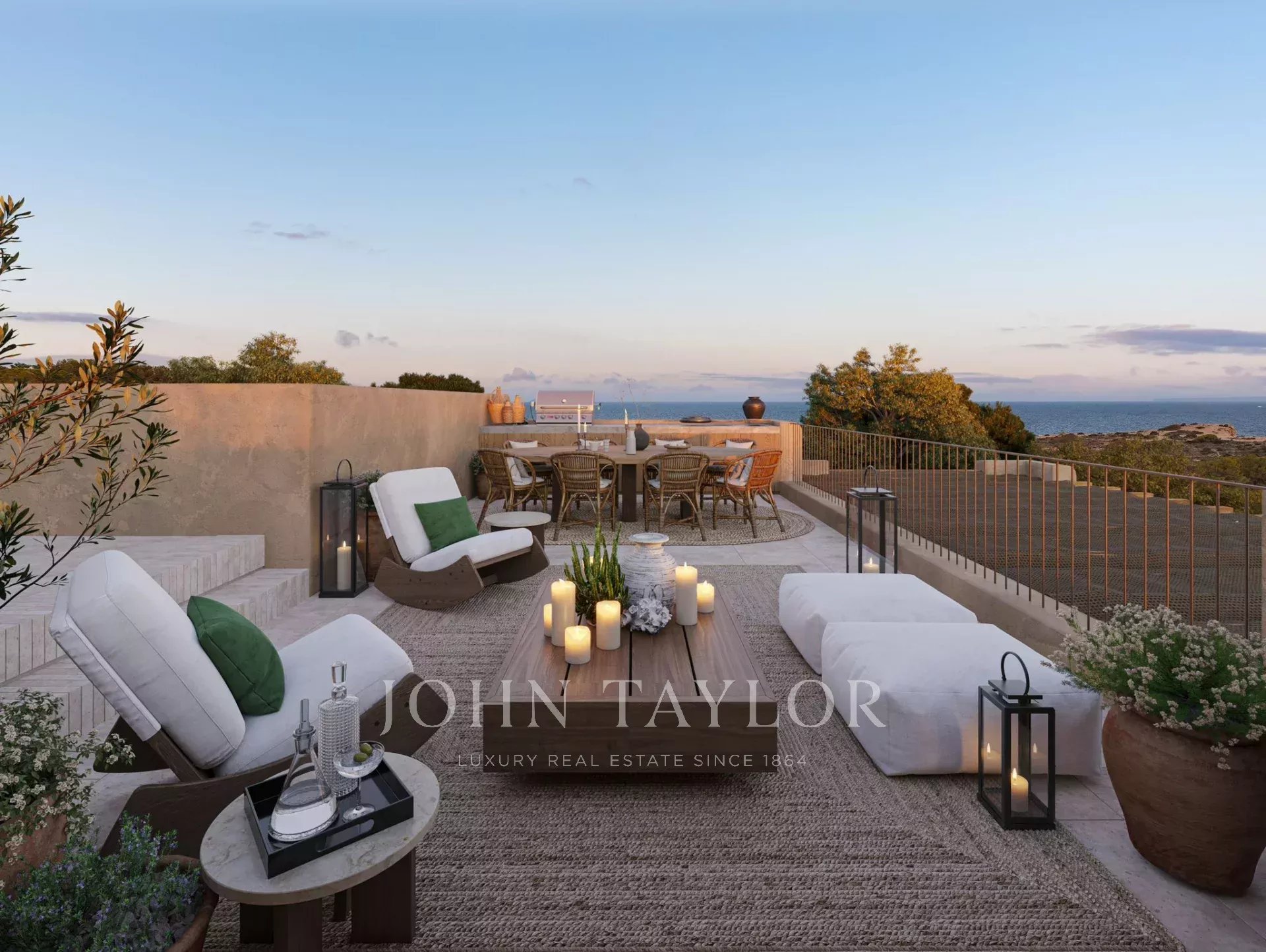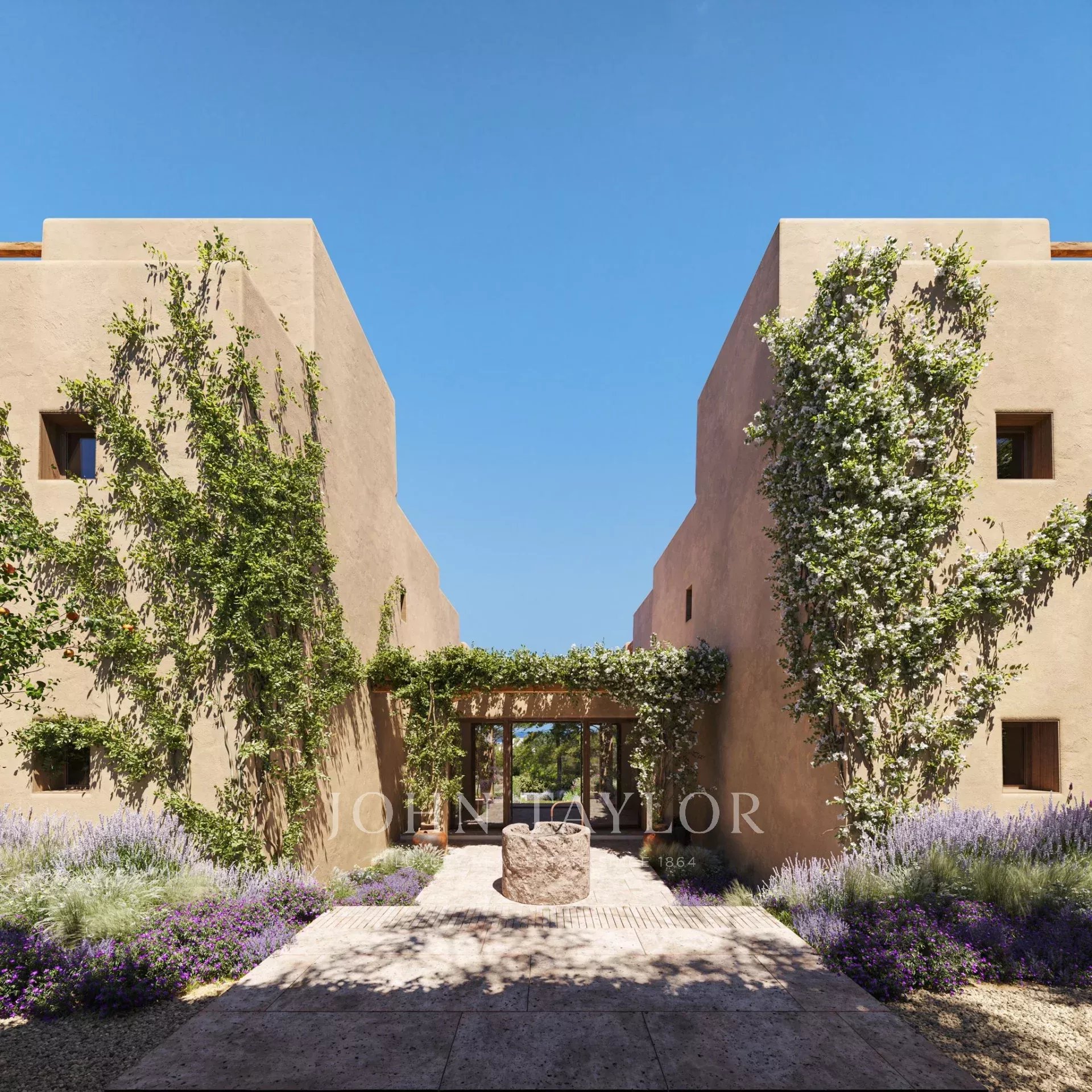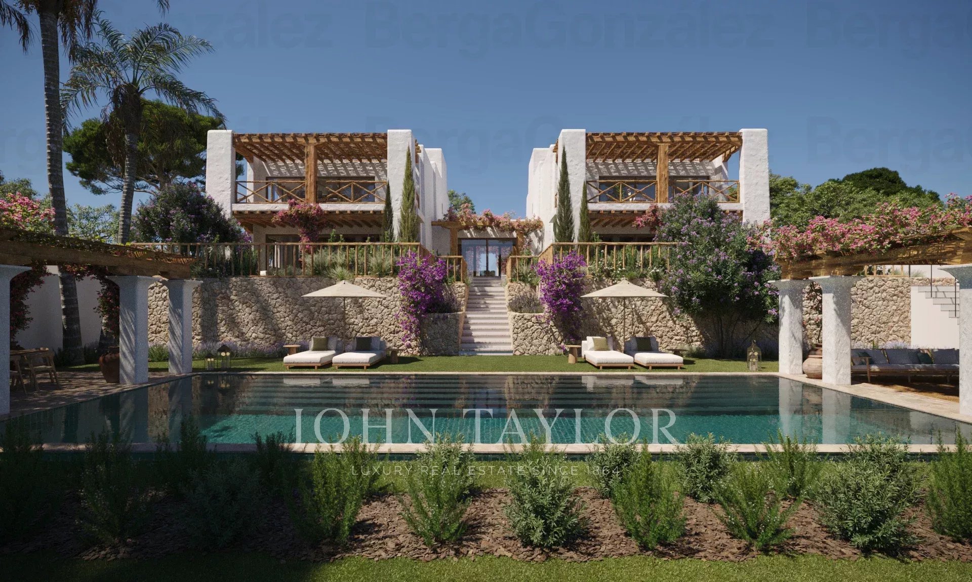 L'extérieur est tout aussi impressionnant, avec plusieurs terrasses, dont une terrasse sur le toit avec vue panoramique sur la mer, idéale pour les cocktails au coucher du soleil ou l'observation des étoiles pendant les chaudes nuits d'Ibiza. Les jardins méditerranéens méticuleusement entretenus créent une oasis de sérénité qui complète la beauté naturelle des environs. Au cœur de l'espace extérieur se trouve une superbe piscine, idéale pour se détendre et profiter du climat idyllique d'Ibiza. L'espace piscine est complété par un solarium spacieux, idéal pour prendre un bain de soleil, et une salle à manger extérieure, parfaite pour les dîners et les réunions entre amis et en famille.