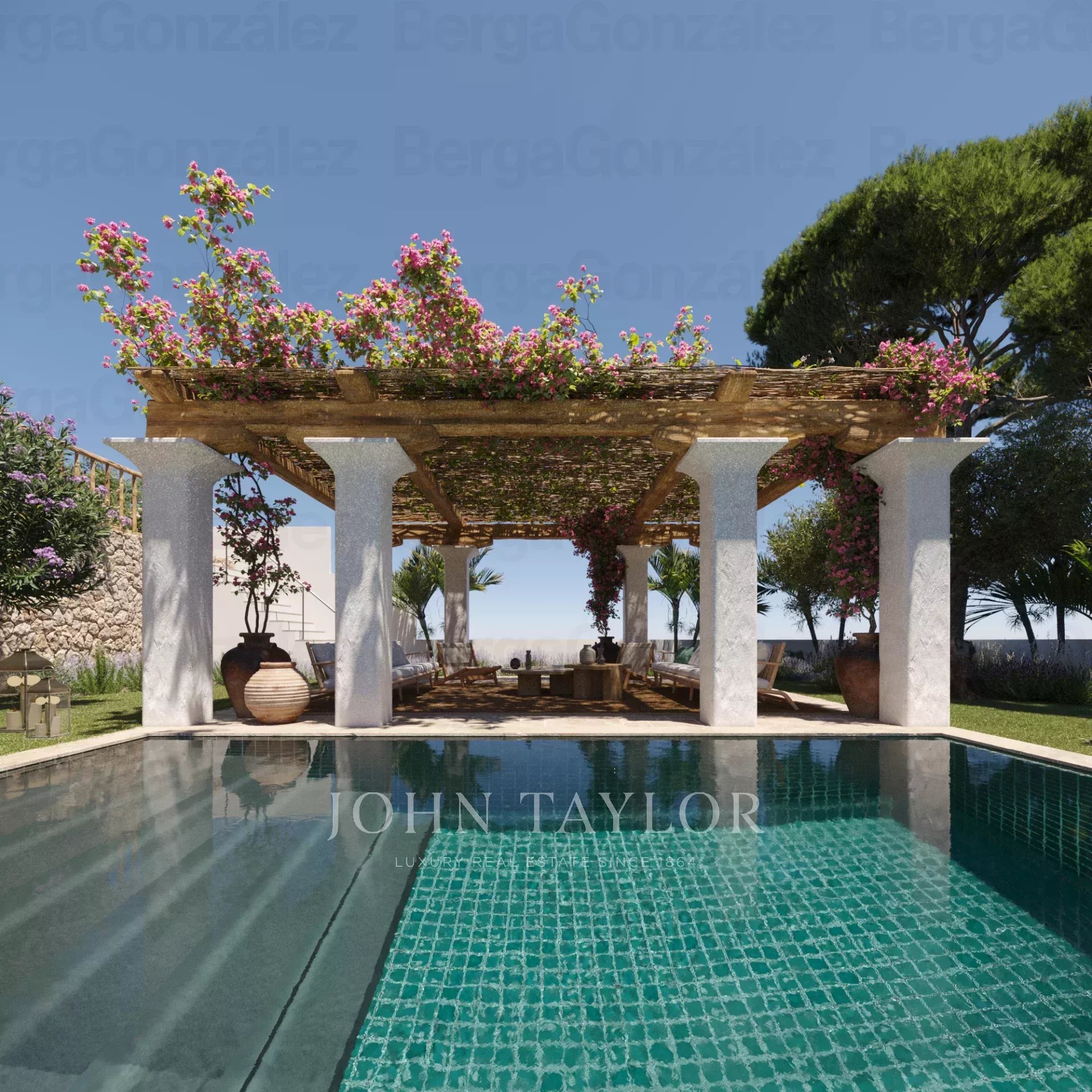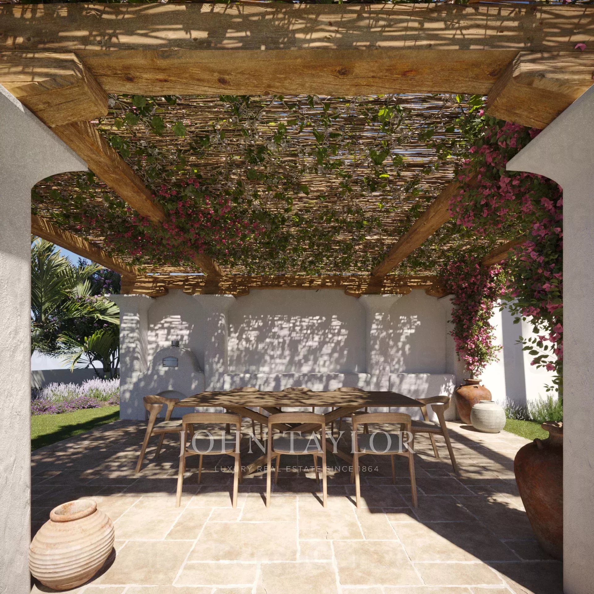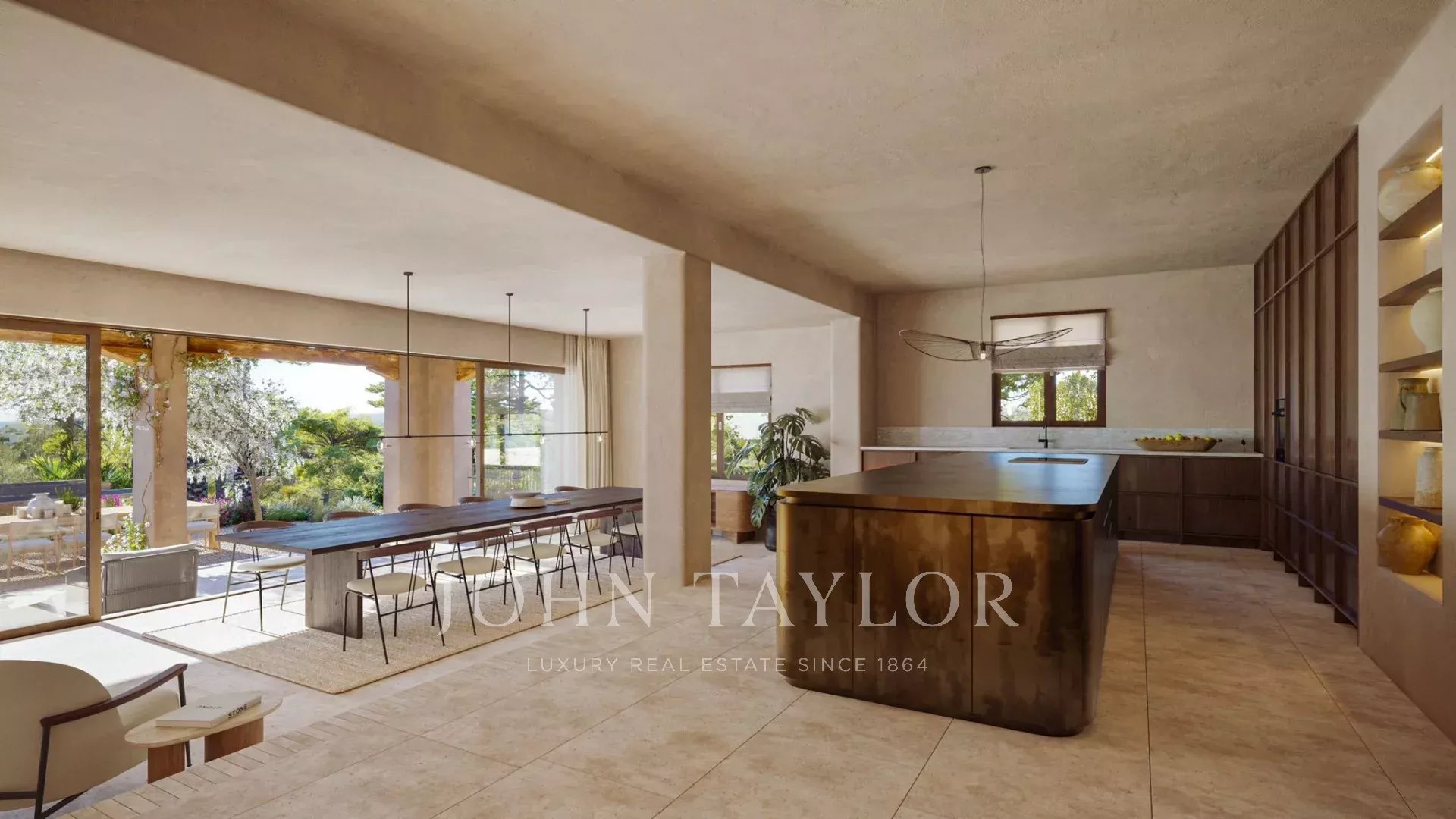L'extérieur est tout aussi impressionnant, avec plusieurs terrasses, dont une terrasse sur le toit avec vue panoramique sur la mer, idéale pour les cocktails au coucher du soleil ou l'observation des étoiles pendant les chaudes nuits d'Ibiza. Les jardins méditerranéens méticuleusement entretenus créent une oasis de sérénité qui complète la beauté naturelle des environs. Au cœur de l'espace extérieur se trouve une superbe piscine, idéale pour se détendre et profiter du climat idyllique d'Ibiza. L'espace piscine est complété par un solarium spacieux, idéal pour prendre un bain de soleil, et une salle à manger extérieure, parfaite pour les dîners et les réunions entre amis et en famille.