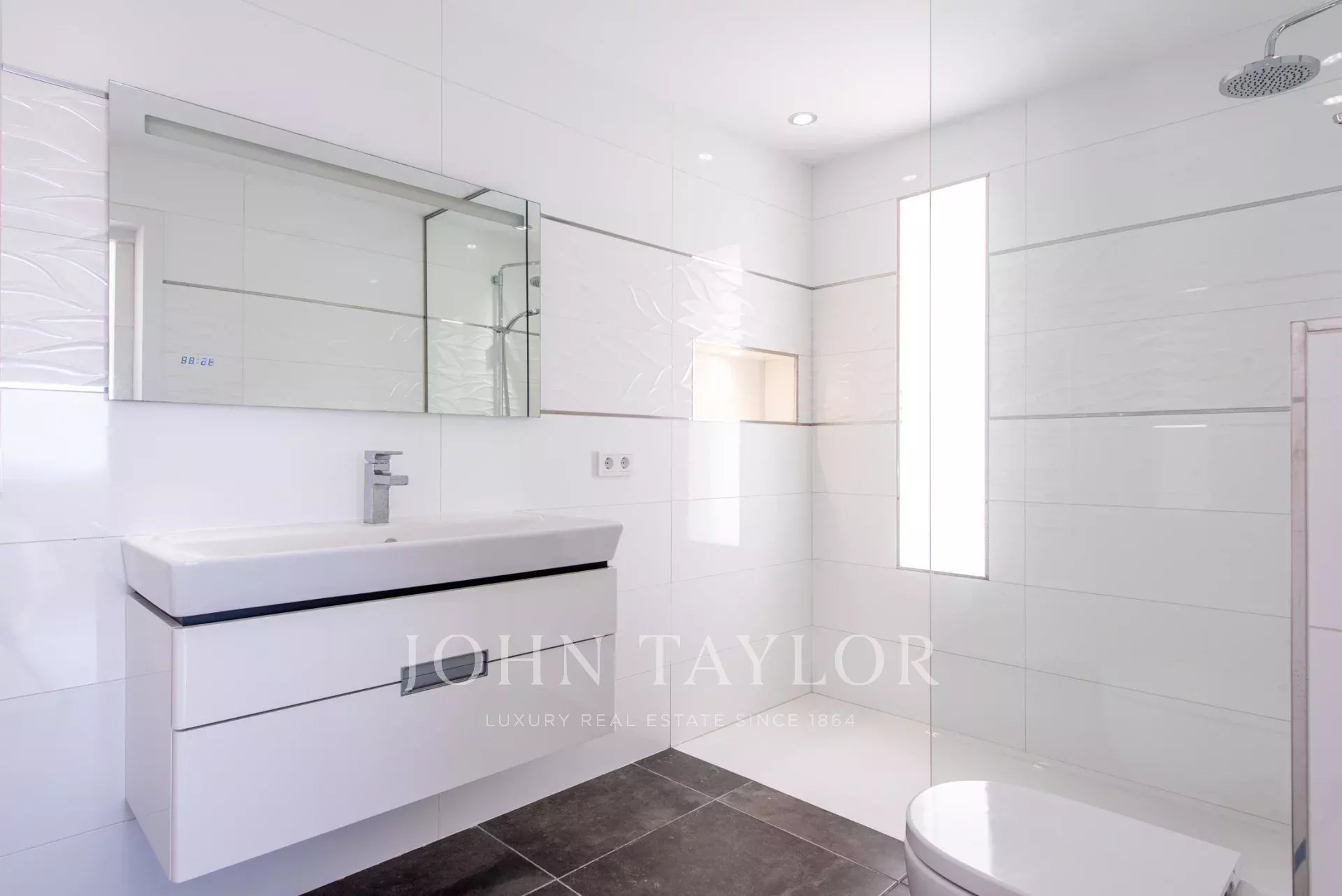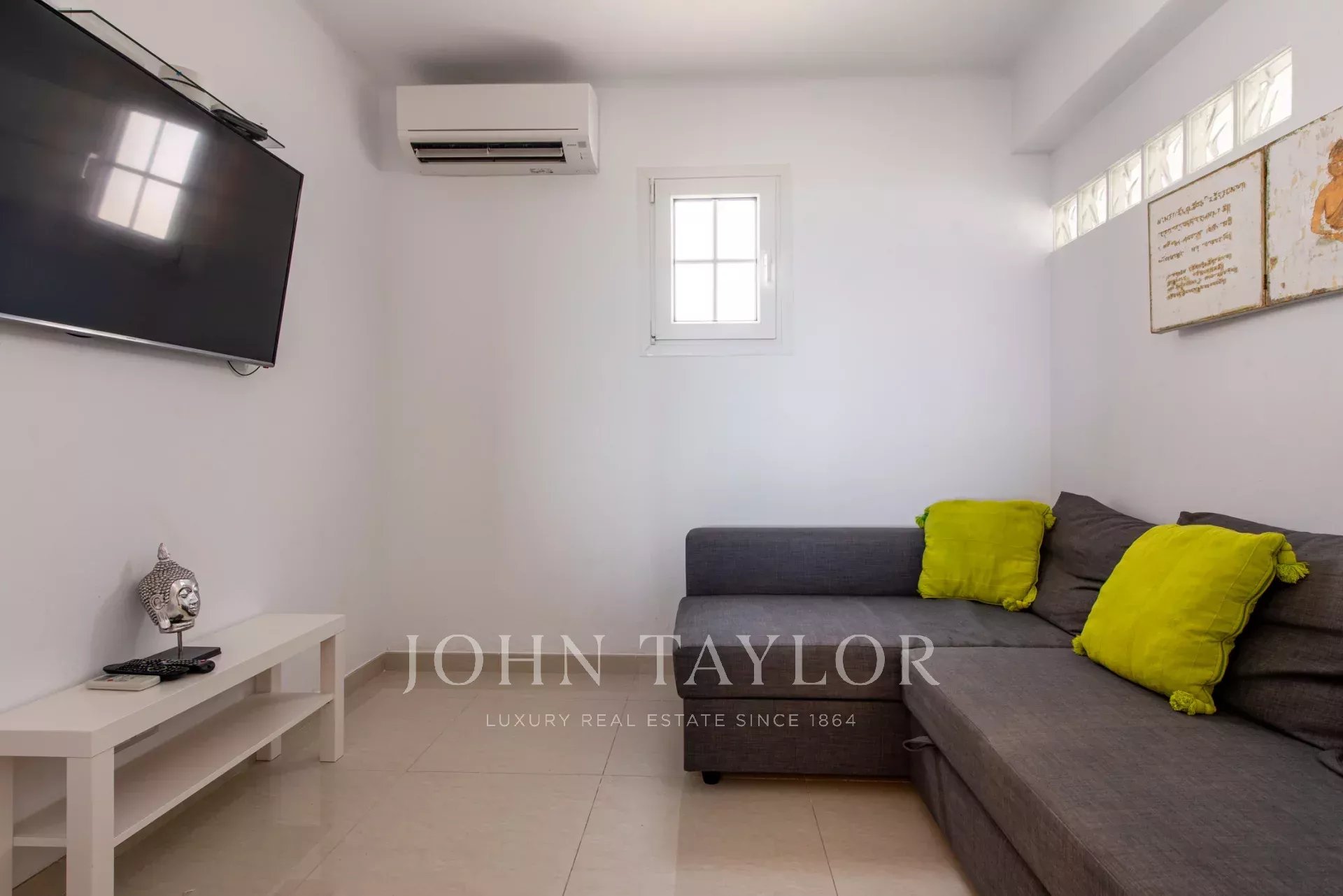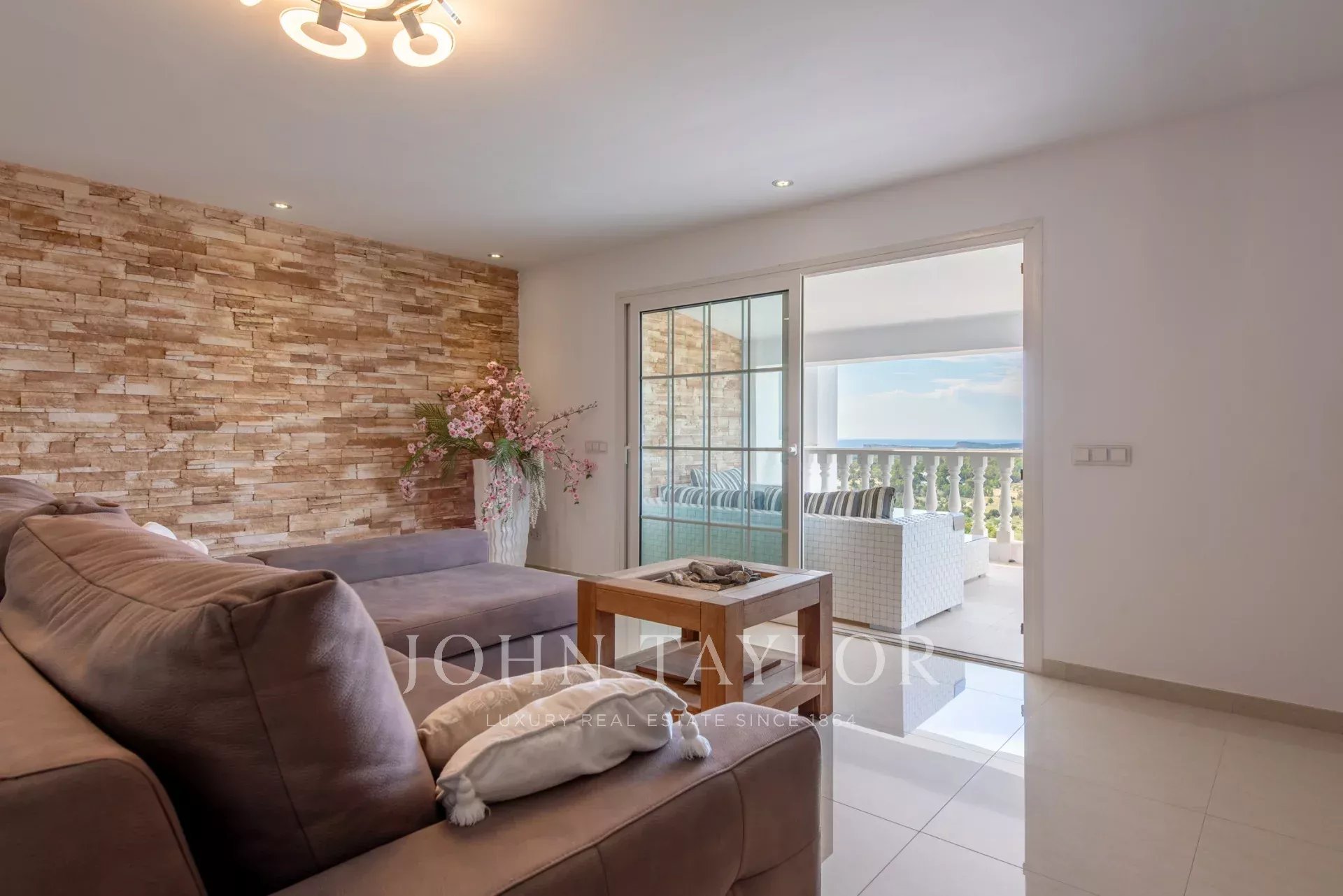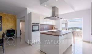 Chaque niveau de la villa offre un grand espace de terrasse pour prendre un bain de soleil ou se détendre dans des zones couvertes, toutes avec une vue dégagée sur la mer en raison de l'emplacement surélevé de la villa. Les terrasses ont été rénovées avec goût et sont idéales pour se réunir et se détendre. L'espace piscine comprend un bar cuisine extérieur, des chaises longues confortables, une grande piscine privée à débordement avec cascade et une douche extérieure. Vous profiterez d'une intimité totale avec les maisons voisines et de couchers de soleil spectaculaires tous les soirs. Les jardins nécessitent un minimum d'entretien tout en offrant une oasis méditerranéenne verdoyante autour de la maison. L'ensemble de la propriété est clôturé pour garantir l'intimité et la sécurité. Chaque maison offre des espaces de vie extérieurs, y compris une terrasse privée reliée à la chambre principale, avec des espaces de rangement pratiques également disponibles.