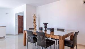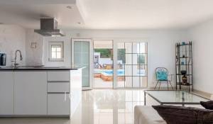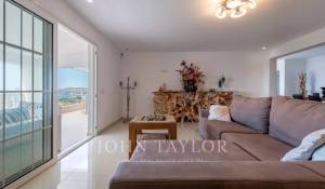 Au premier étage se trouve l'entrée principale, qui s'ouvre sur une salle à manger avec cuisine ouverte et îlot, et mène à une terrasse spacieuse avec une vue imprenable sur la mer. Cet étage comprend également un salon, une salle de télévision séparée, 3 chambres, 2 salles de bains et des toilettes pour les invités. Le rez-de-chaussée, accessible depuis le parking, se compose d'un salon avec cuisine ouverte, de toilettes pour invités, de 2 chambres avec salle de bains privative, de 2 chambres supplémentaires partageant une salle de bains et d'une buanderie. Au rez-de-chaussée, il n'y a qu'un appartement d'invités séparé avec sa propre entrée et un parking pour deux voitures. Il comprend une cuisine, un salon, une chambre et une salle de bains, le tout avec une vue imprenable sur la mer depuis ce niveau inférieur.