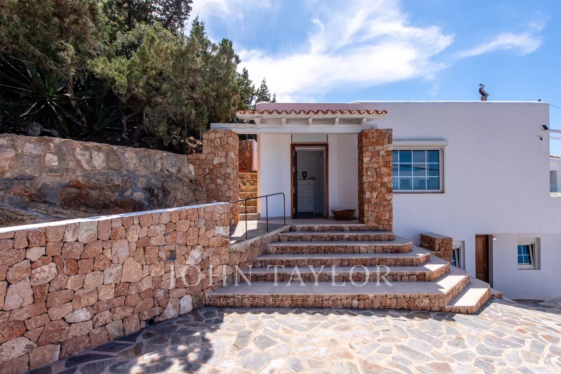 Située à flanc de colline sur la côte ouest d'Ibiza, cette propriété unique et entièrement rénovée incarne la quintessence du style de vie ibizien et est prête à réaliser vos rêves méditerranéens.