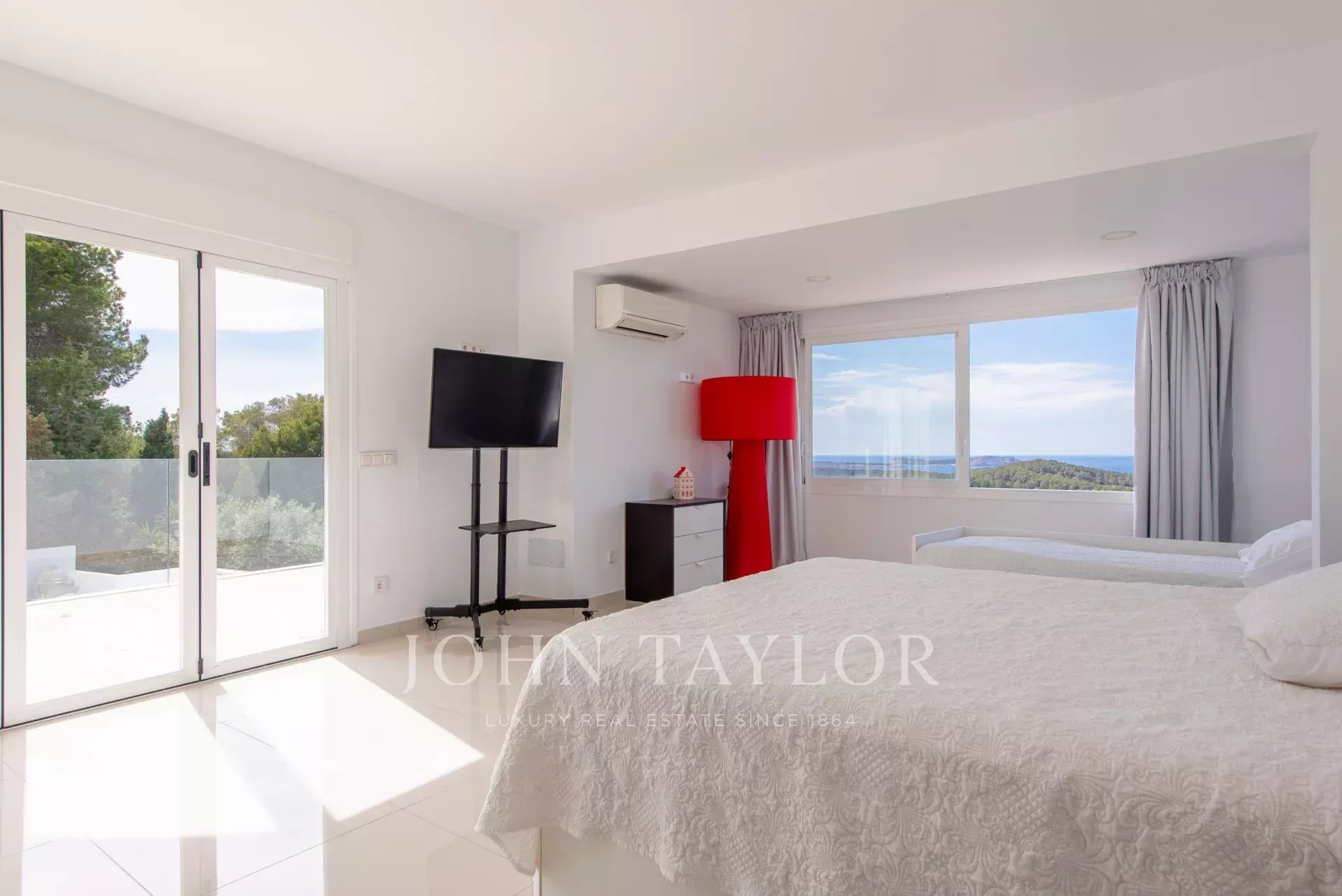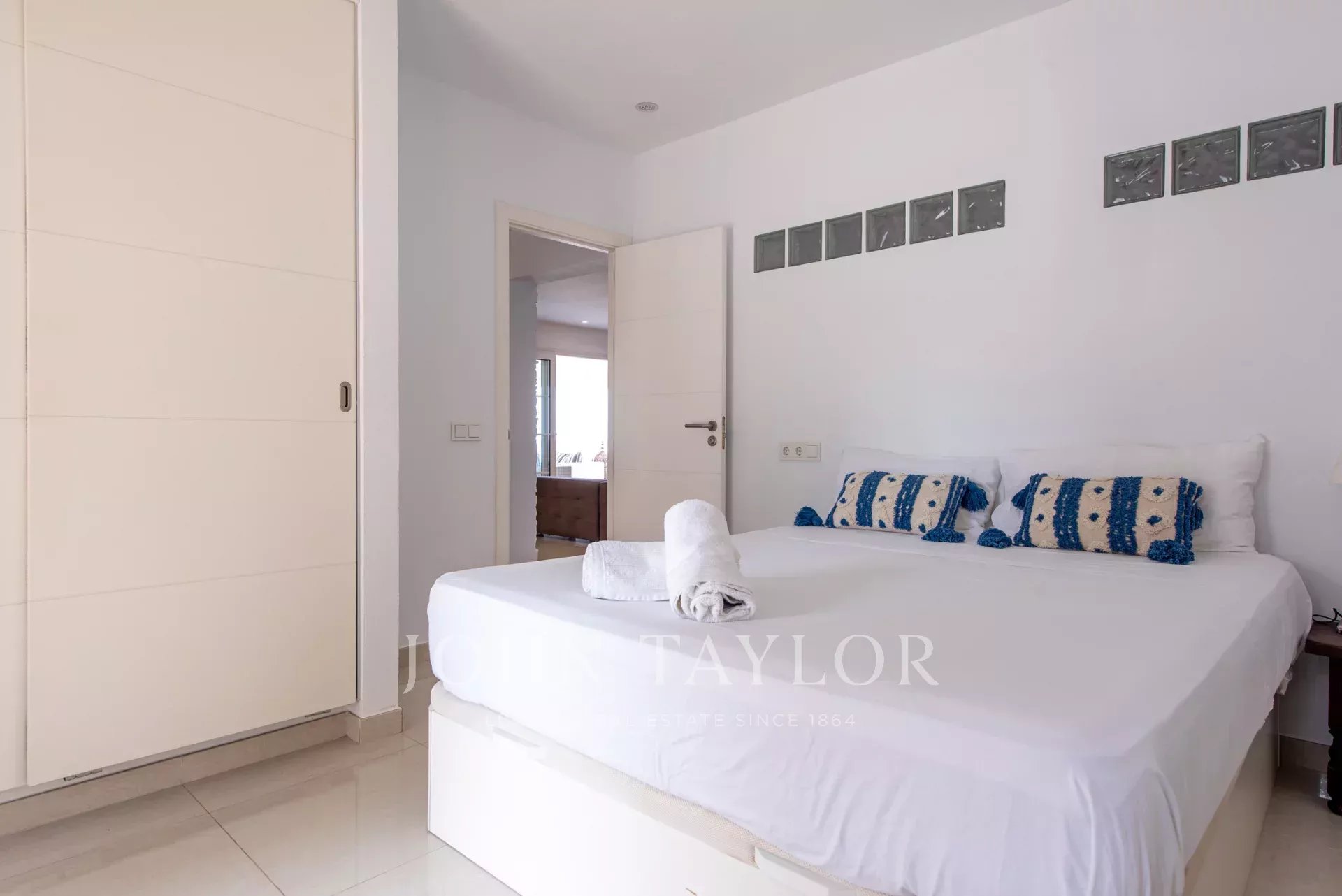 Idéalement située sur une colline près des plages de Cala Comte et Cala Bassa, cette villa offre un accès facile aux restaurants, supermarchés et autres commodités à proximité.