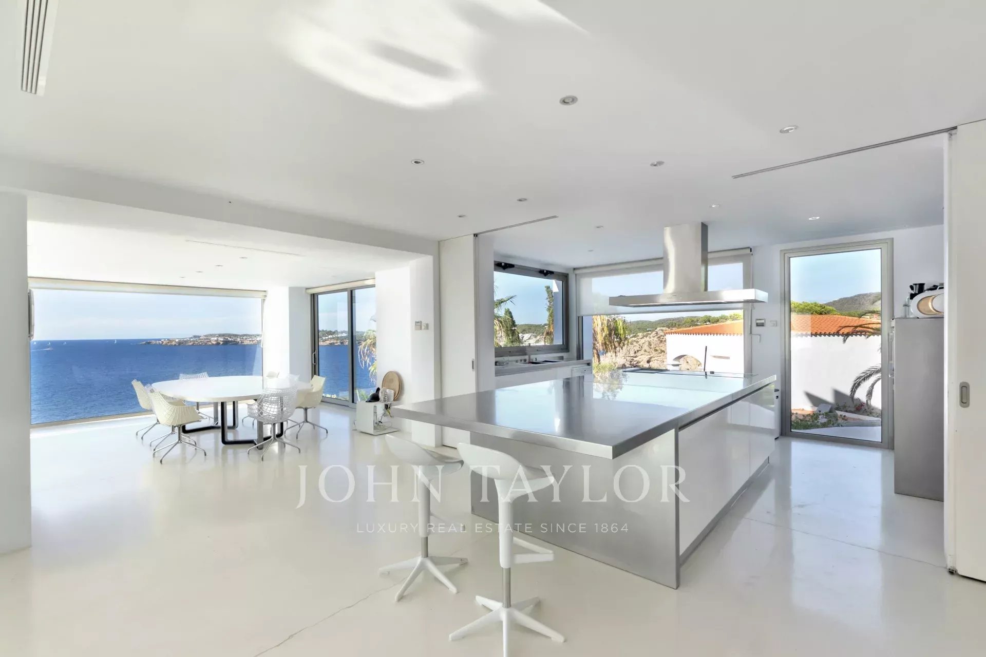 Avec sept grandes chambres et sept salles de bains, la propriété offre espace et confort pour profiter pleinement du style de vie méditerranéen. Les intérieurs lumineux et modernes s’ouvrent sur de vastes terrasses dotées de plusieurs espaces chill-out, où la mer est la véritable protagoniste, offrant des vues panoramiques sur la mer et le coucher du soleil à couper le souffle.