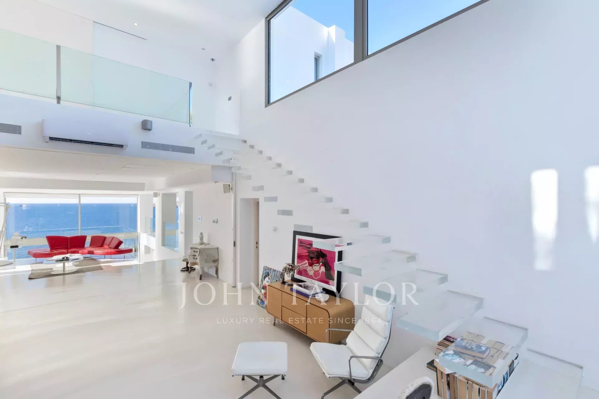 La villa dispose également d’une salle de sport privée et d’un accès direct à la mer, un privilège rare sur l’île.