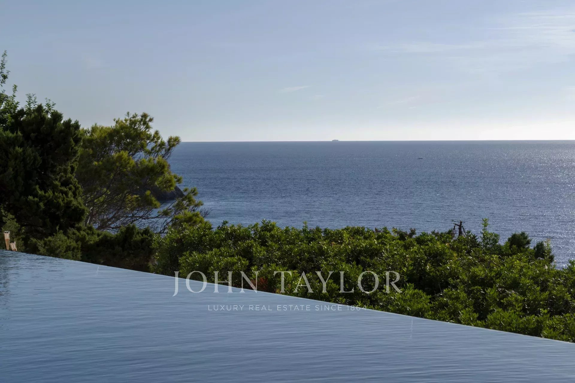 À l’extérieur, une spectaculaire piscine à débordement se fond à l’horizon, créant une atmosphère parfaite pour la détente.