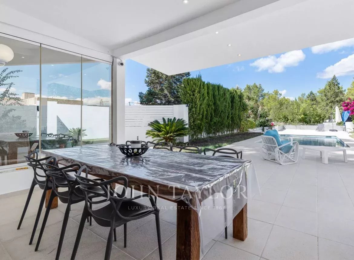 Cette belle maison individuelle rénovée se situe dans le charmant quartier de Cala Tarida, à quelques pas de la plage.