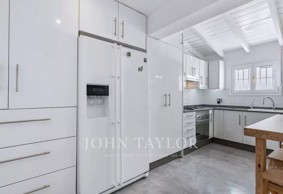 Au rez-de-chaussée, vous trouverez un appartement spacieux avec un grand salon-salle à manger qui s'ouvre directement sur le jardin, fusionnant parfaitement la vie intérieure et extérieure. Le rez-de-chaussée dispose également d'une cuisine bien équipée et de trois chambres spacieuses, chacune avec sa salle de bains privative. De plus, il y a une chambre indépendante entièrement équipée, offrant encore plus de flexibilité pour les invités ou les membres supplémentaires de la famille.
