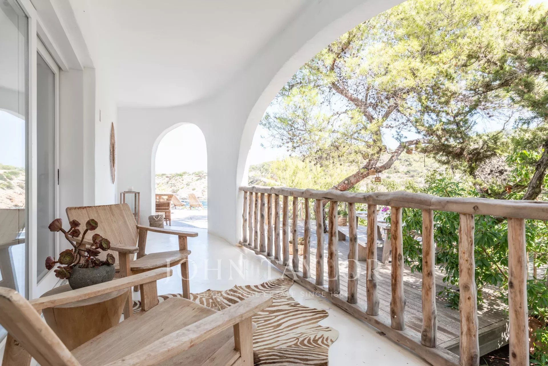 Découvrez cette spectaculaire villa de style méditerranéen située en bord de mer à Cala Vadella, sur la côte ouest d’Ibiza. Offrant des vues panoramiques imprenables sur la mer et un accès direct à la plage via un escalier privé, cette propriété allie parfaitement luxe et sérénité.