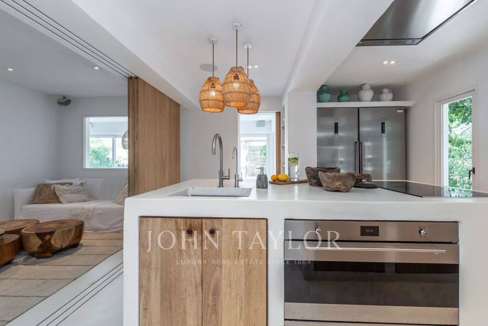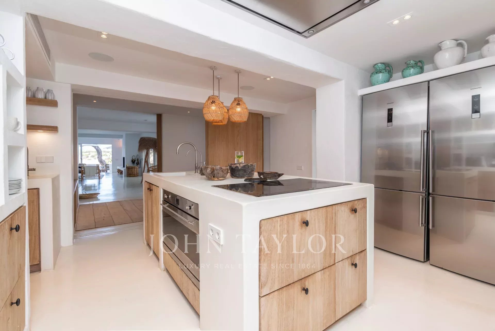 Cette villa unique combine charme méditerranéen traditionnel et luxe moderne, offrant un style de vie incomparable sur la côte ouest d'Ibiza.