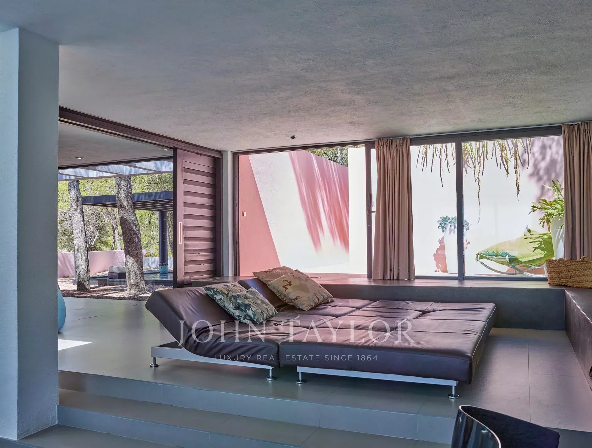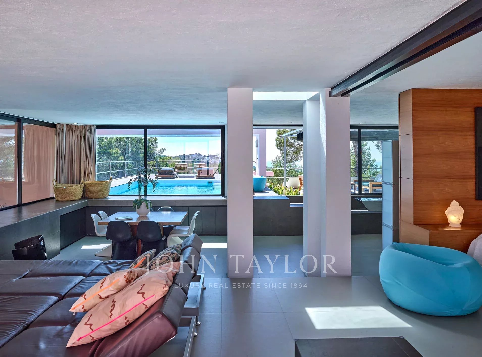 La villa a été conçue dans un style minimaliste japonais, intégrant parfaitement les espaces intérieurs et extérieurs. Les grandes fenêtres en verre permettent une connexion continue entre la maison et l'environnement, tandis que la piscine et les terrasses offrent une expérience de luxe inégalée. La vaste terrasse est équipée de canapés et d'une table à manger pour 10 personnes, créant l'atmosphère parfaite pour se détendre et se divertir en plein air.
