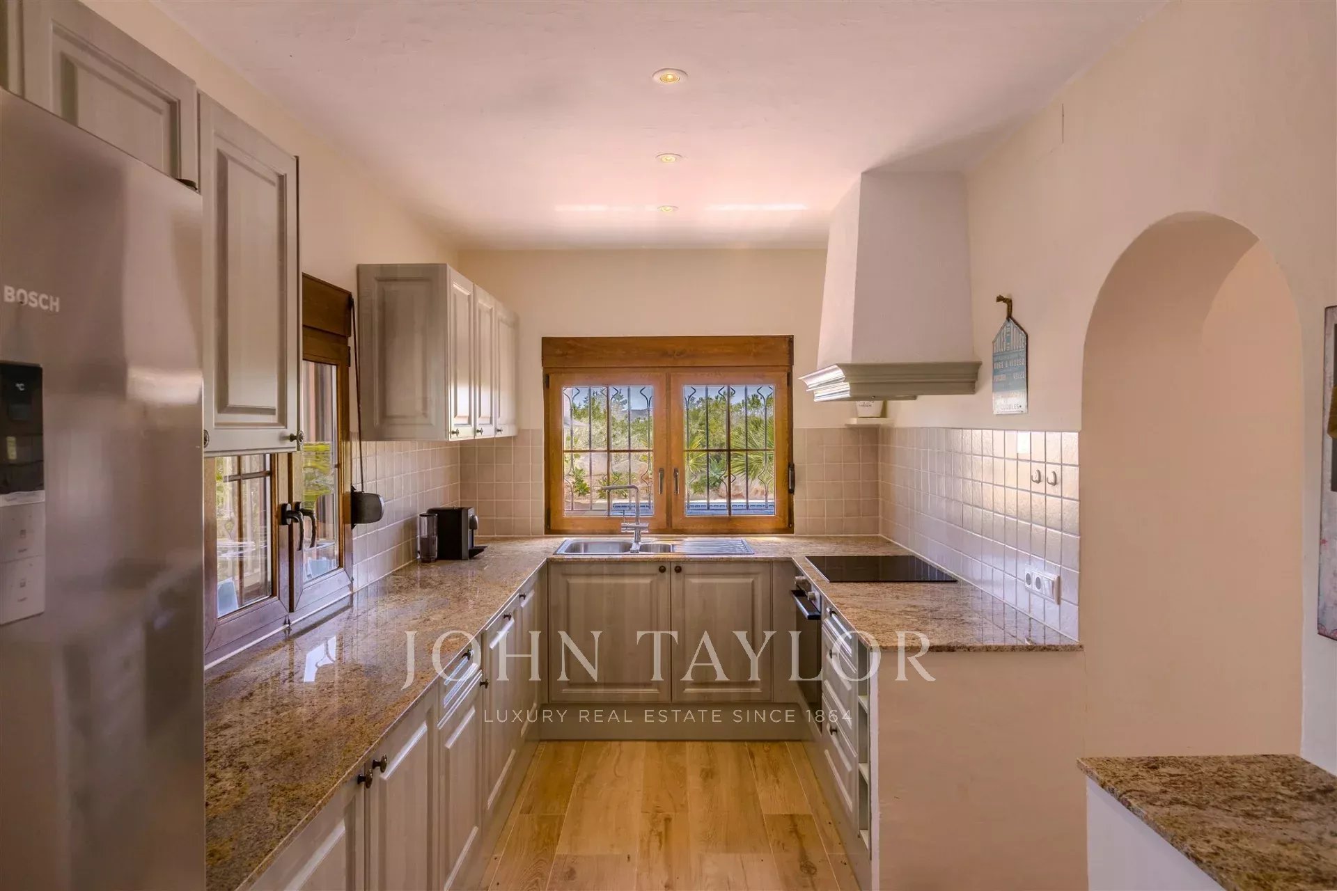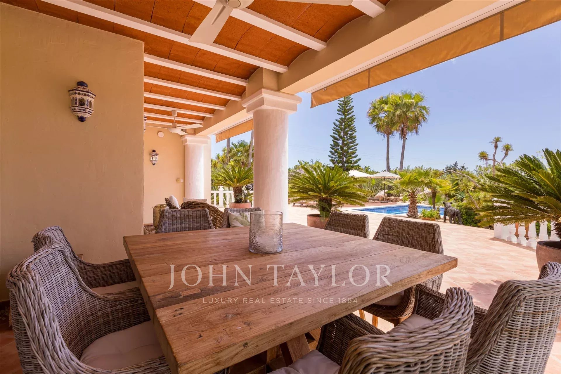 Construite en 2001 et rénovée en 2018 avec des matériaux de haute qualité de Porcelanosa, la villa dispose de 300 m² d’espace répartis sur deux étages, où le charme classique se mêle à la modernité. La maison principale comprend trois chambres spacieuses, chacune avec salle de bain privative, garantissant confort et intimité. Il y a aussi une maison d'amis avec une chambre supplémentaire, un salon confortable, une kitchenette et une terrasse privée.