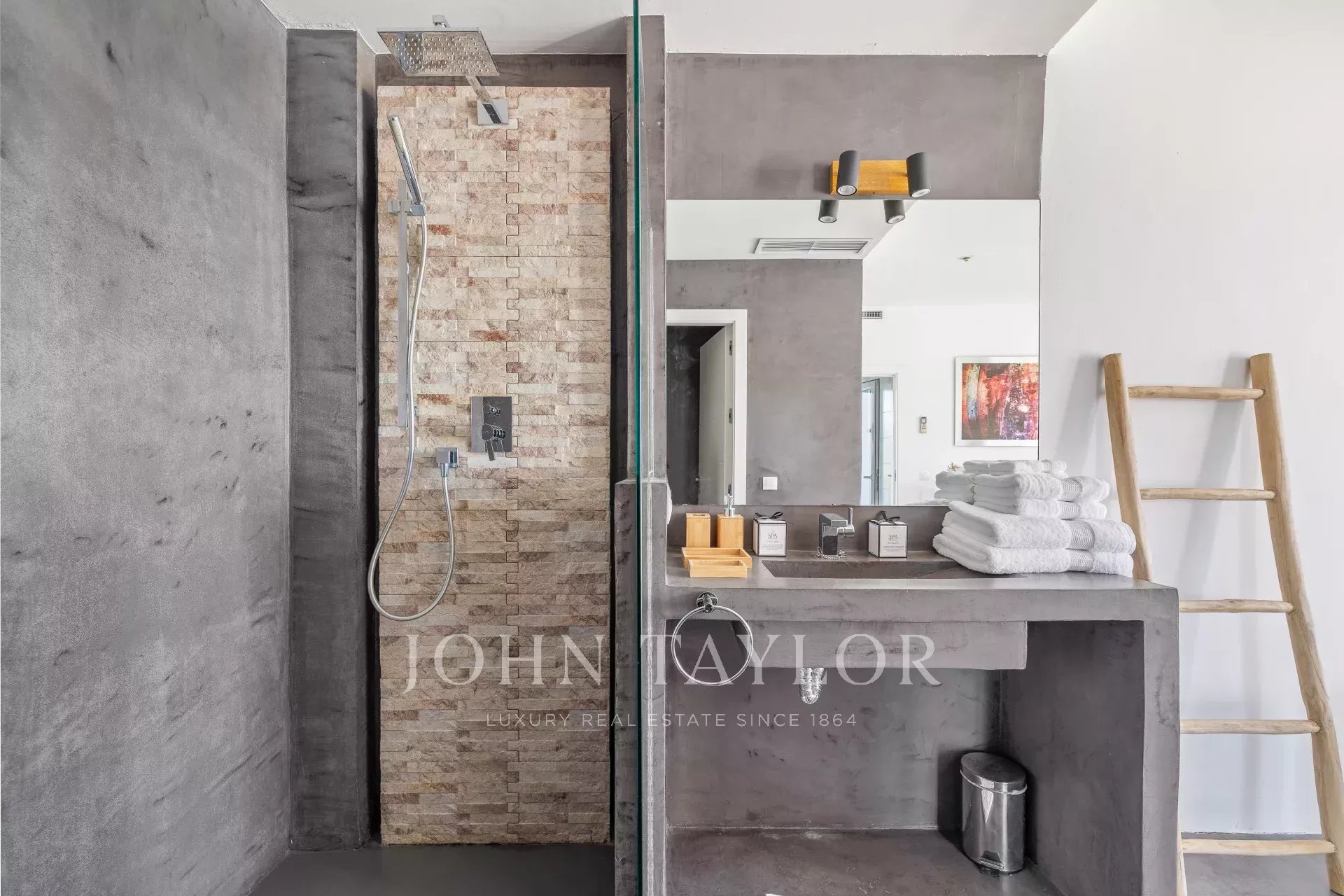 Cette luxueuse résidence comprend quatre chambres, chacune avec sa propre salle de bains, une cuisine spacieuse, de vastes terrasses et un espace extérieur exceptionnellement généreux. Un impressionnant espace sur le toit, agrémenté d'un jacuzzi, crée un espace idéal pour se détendre.