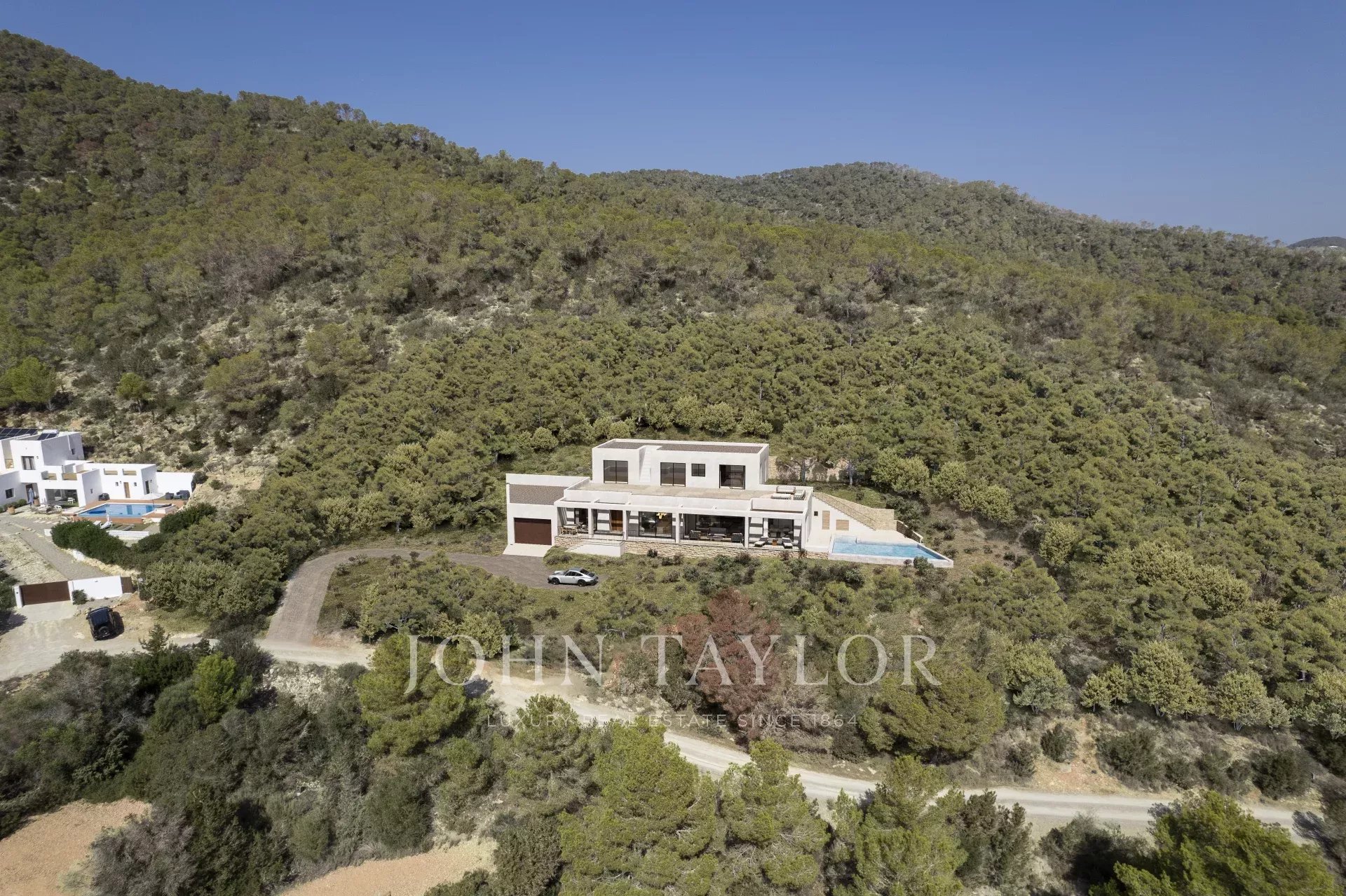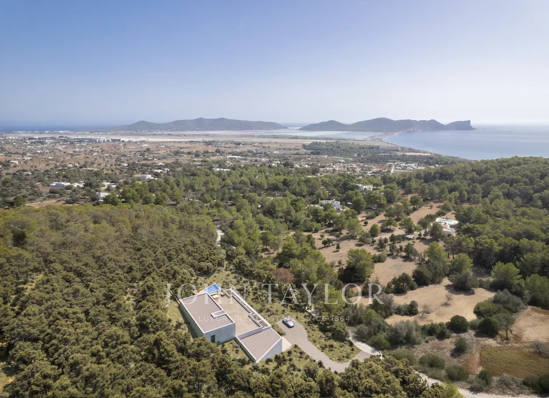 Située au cœur de l’île et à quelques minutes des plages de Sa Caleta et Cala Jondal, cette propriété exceptionnelle bénéficie d’un emplacement privilégié sur le flanc de la montagne, offrant des vues panoramiques à couper le souffle sur Las Salinas et le Cap de Falco. Entourée de forêts de pins luxuriantes, la propriété garantit une intimité, une tranquillité et une exclusivité totales.