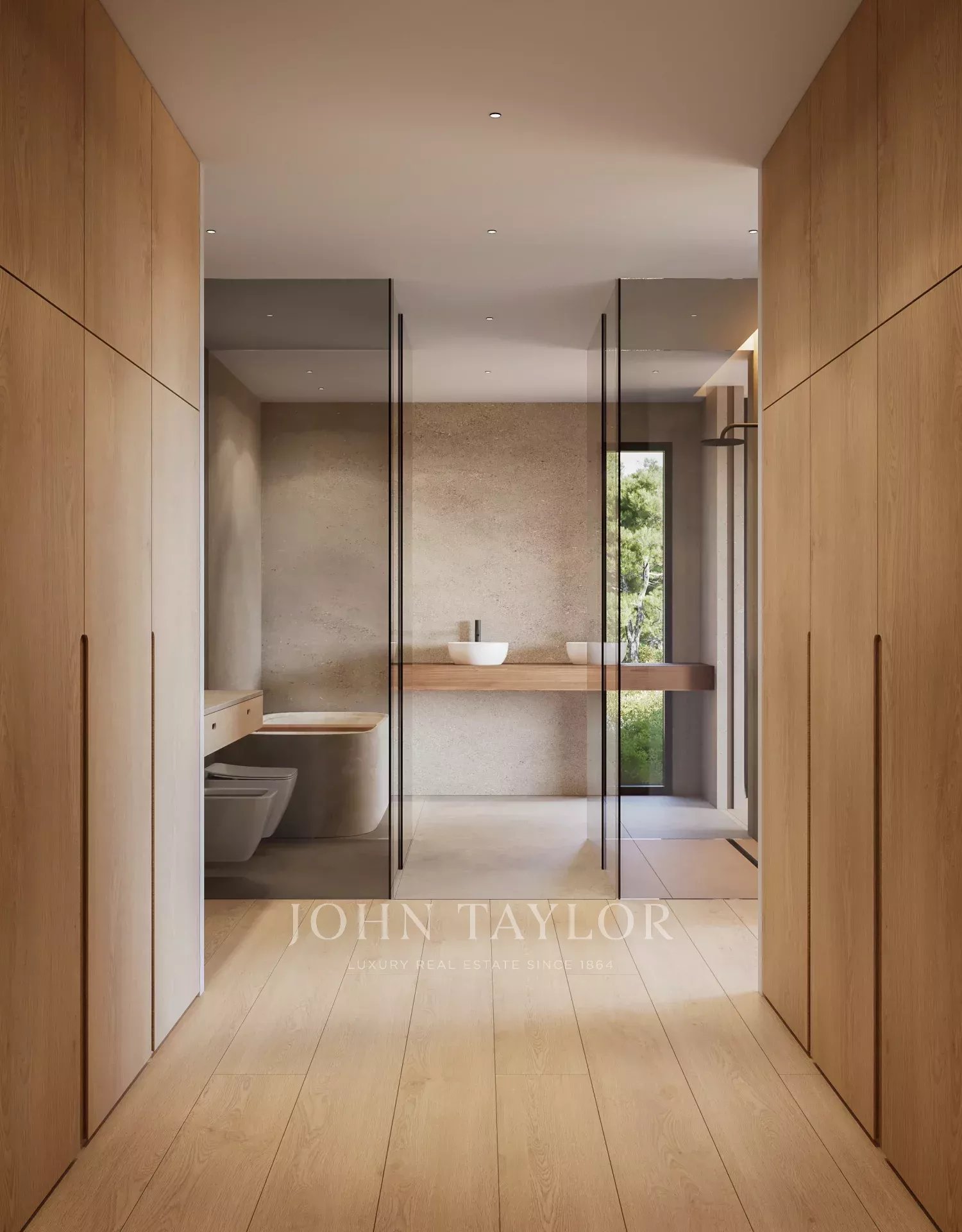 Conçue selon les plus hauts standards de luxe moderne, la villa dispose de fenêtres minimalistes en aluminium, de chauffage au sol et d’un système sophistiqué de climatisation avec fonctions de chauffage, refroidissement, déshumidification et ventilation. Un système domotique KNX entièrement intégré contrôle l’éclairage, le climat et d’autres fonctionnalités de la maison via des écrans élégants dans les pièces ou une application pratique sur smartphone/iPad.