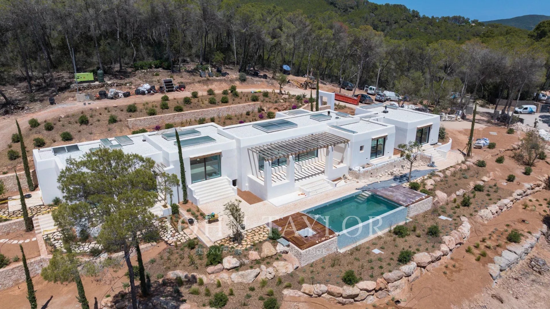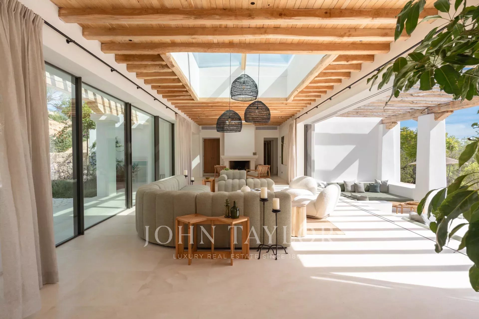 Découvrez le charme incomparable de ce joyau caché au cœur de la vibrante île d'Ibiza. Nous présentons une opportunité unique pour ceux qui recherchent une expérience de vie exceptionnelle : une magnifique propriété Blakstad avec un terrain de 28 000 m², où l'élégance fusionne avec le confort dans tous les coins.